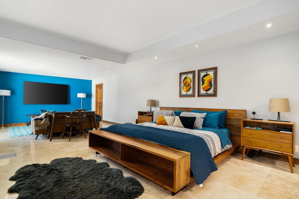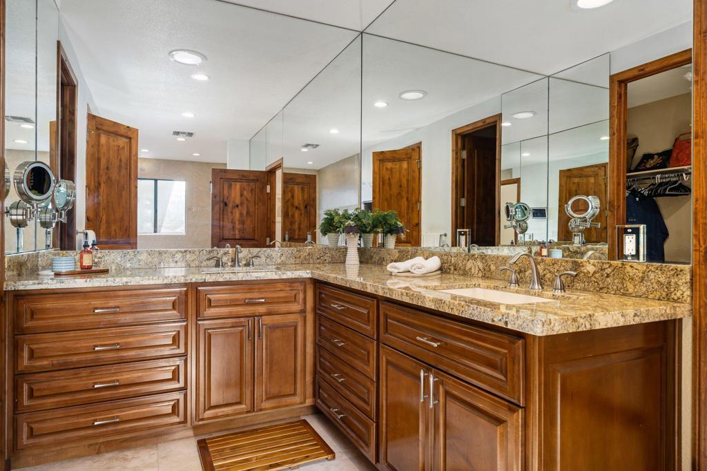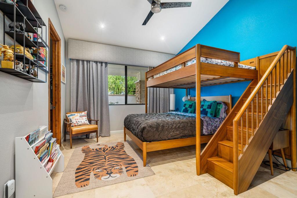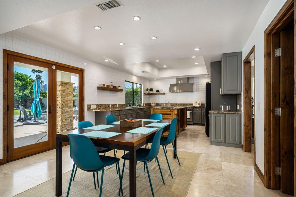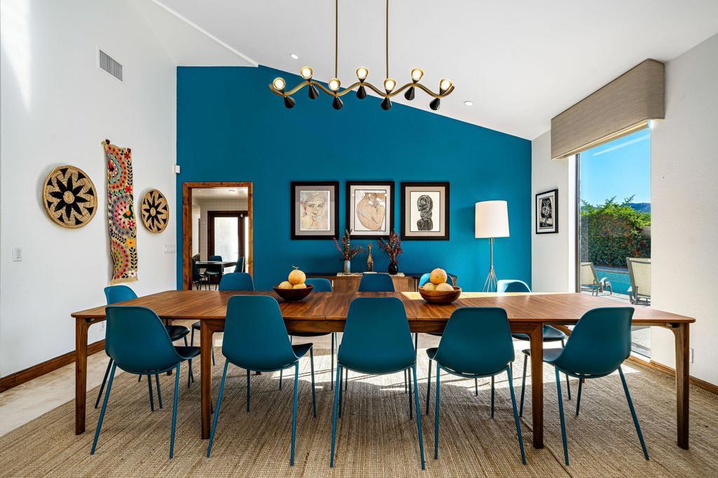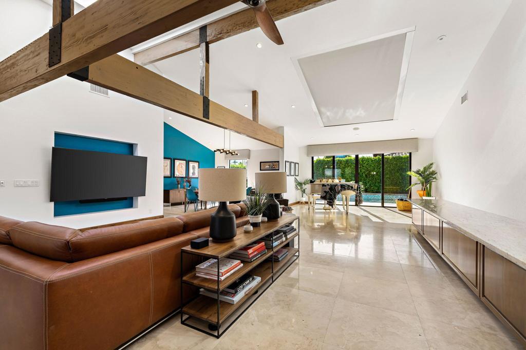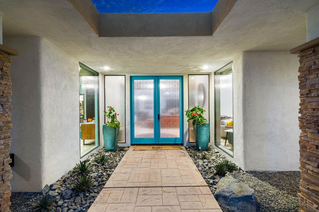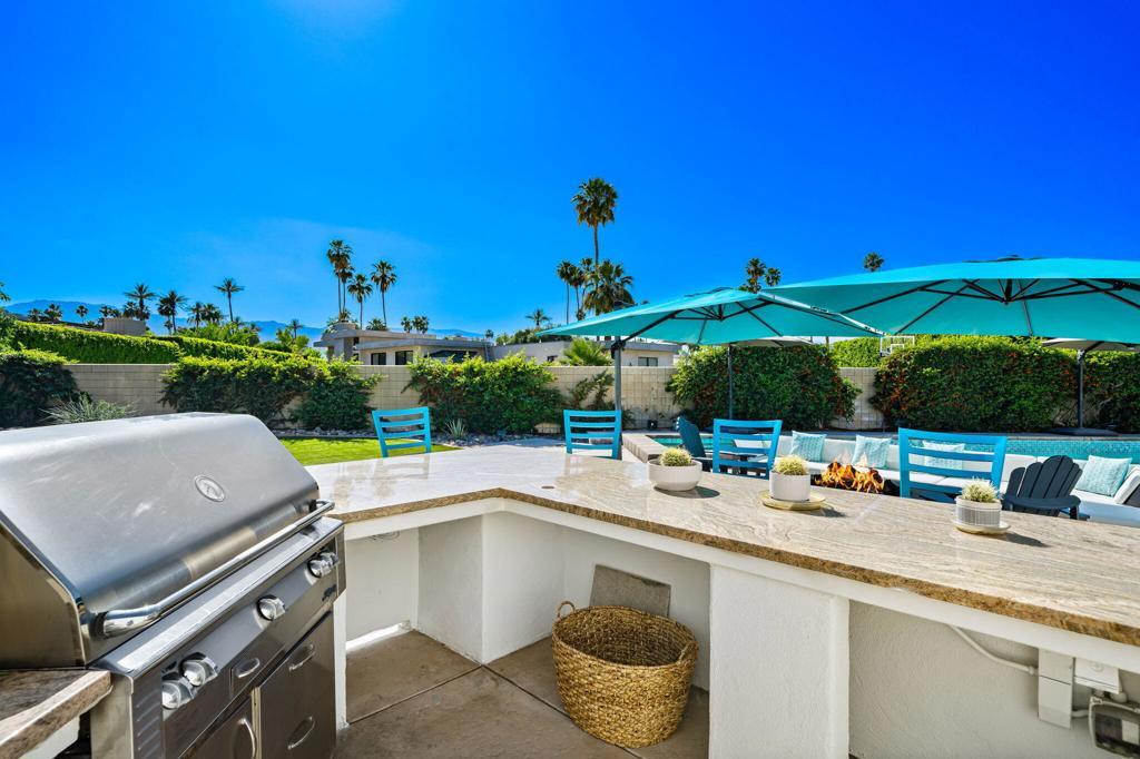 Indian Wells Luxury on .43 Acres | 84 Solar Panels | Lap Pool + Eisenhower Views. Desert modernism doesn't get more authentic than this. Conceived by a celebrated local designer, Vicki McDermott in 1978, this single-story Indian Wells estate carries the architectural DNA of the Palm Springs design tradition. Tasteful contemporary updates make it feel completely at home in 2026. Timeless character, gracious proportions, and a one-of-a-kind provenance that simply cannot be replicated. At 5,323 square feet on nearly a half acre, this is the largest home and lot on the street. A genuinely custom offering at a scale that is increasingly rare in Indian Wells. The soaring great room, with ceilings over 22 feet high, two statement fireplaces, travertine floors, exposed beams, and solid alder wood doors and trim throughout deliver architectural character that no newer construction can touch. Five bedrooms offer flexible configurations, a primary suite and junior suite each with private en-suite baths, two additional bedrooms sharing a Jack-and-Jill bath, a dedicated guest bath off the playroom, and a private walled entry courtyard with a tranquil water feature. Multiple sets of sliding glass doors create seamless indoor-outdoor flow out to your private desert oasis with panoramic mountain views. Outside, the lap pool and spa anchor a true entertainer's paradise. Built-in Alfresco professional grill, outdoor bar with sink, gas fire pit, full mister system, and smart exterior lighting throughout. The fully walled grounds are framed by mature privacy hedges, a towering Washingtonian palm, and a working citrus and fig orchard, tangelo, orange, and fig trees that produce generously in season. The 84-panel owned solar array means energy costs that are a fraction of comparable properties. A Tesla EV charger, epoxy-sealed garage floor, and full permitted natural gas system replacement round out an infrastructure story with zero deferred maintenance questions. No HOA. No gates. No monthly fees. Indian Wells prestige, walking distance to Eldorado Country Club, Indian Wells Country Club, and The Vintage Club, and minutes to the BNP Paribas Open and El Paseo. Whether you are here for tournament season or year-round desert living, this is complete California freedom on your own terms. Furnishings available separately. This home can be turn-key for the right buyer.