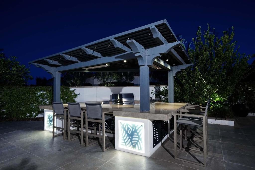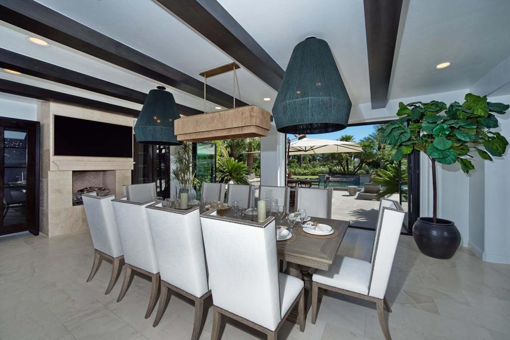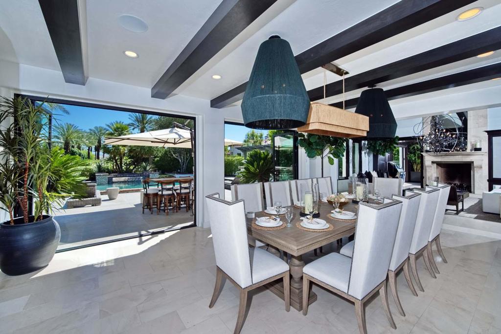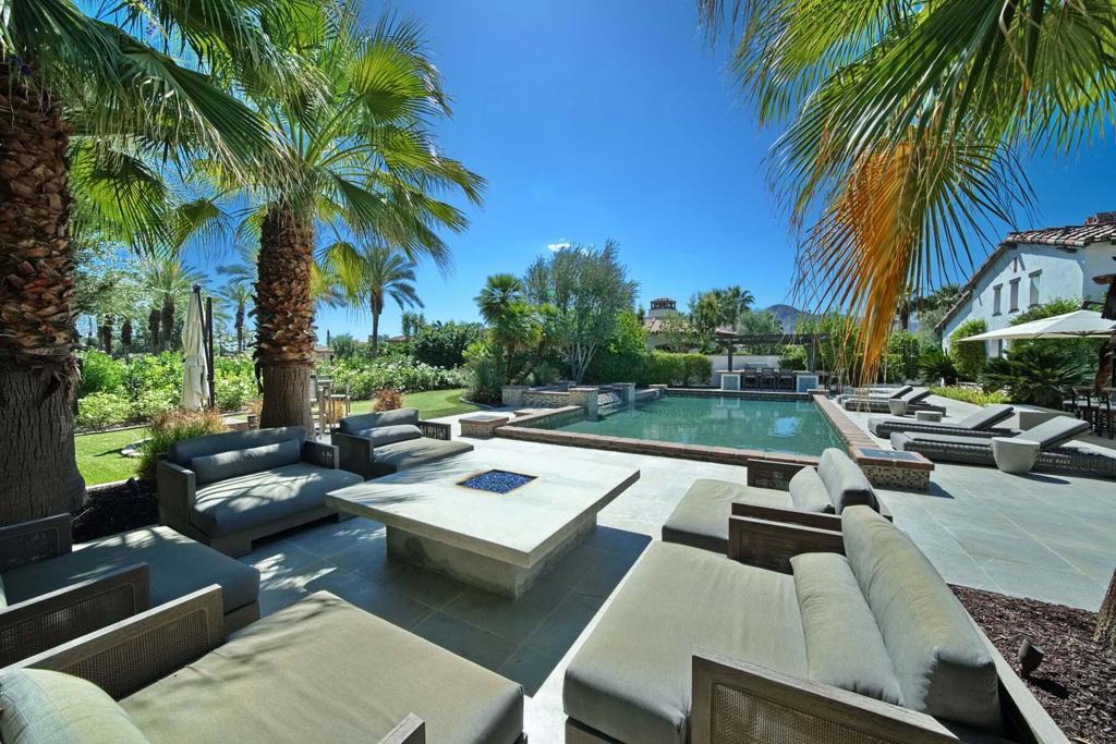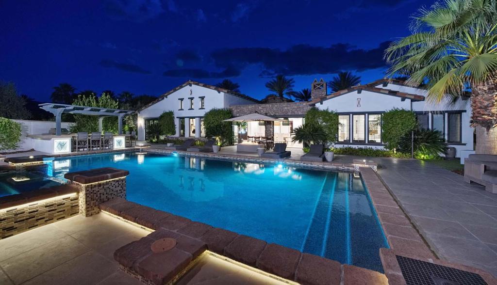Set behind a private gated motor court on an expansive 21,780 sq. ft. homesite, this remarkable custom estate offers refined desert living along the South Course--one of Toscana's two premier courses designed by Jack Nicklaus. Thoughtfully designed for both grand-scale entertaining and comfortable everyday living, the residence includes 6 bedrooms, 5 full baths, and 2 half baths.The outdoor environment is a true showpiece, recently enhanced with a beautifully added dining area and multiple gathering spaces. A resort-style pool and spa with striking water and lighting features anchor the backyard, complemented by fire elements, an outdoor kitchen with bar seating, and generous lounge areas--all set against a spacious, private setting.Inside, the home blends warmth and sophistication with stone flooring, custom wood beam ceilings, and an open-concept layout that seamlessly connects to the outdoors through expansive folding Nano doors. The gourmet kitchen is well-appointed with a large center island, premium appliances, and abundant prep space, flowing effortlessly into casual and formal living areas.Designed with entertainment in mind, the home features a full sports bar, a dedicated movie room, and inviting spaces for hosting family and friends. The primary suite offers a tranquil retreat, while a detached guest house with its own living area provides ideal accommodations for visitors.Extensively furnished and move-in ready, this exceptional property delivers privacy, scale, and a complete lifestyle experience within a premier golf course community.