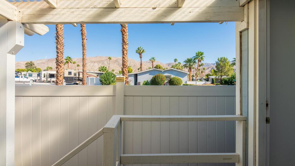 Sky Valley Resort, a gated mineral pool community that is just a 25-minute drive from Palm Springs. Two bedroom and two full bathrooms and covered attached porch. The unbelievable view will make sipping wine while watching the colors from the sunset . The outdoor area and covered porch is ideal for entertaining. This is expected to go fast, so call today to get gate code and chance to see this gem in person. Land is leased and space rent is only $1,203 a month plus utilities, covering maintenance and upkeep of grounds, pools, walking trails, security gate and cameras, fully equipped state-of-the-art gym, lush green grass dog parks annual seeding, community garden, clubhouse, 13 mineral pools and spas, firepit and walking trails, billiards room, sport courtsCall us today for more information.