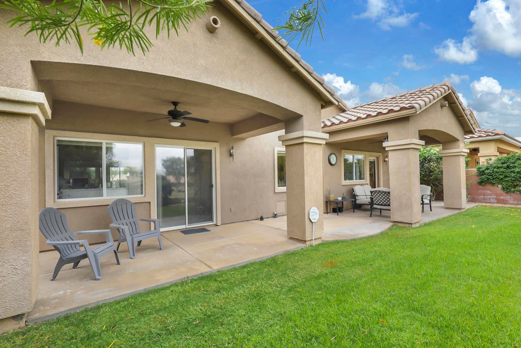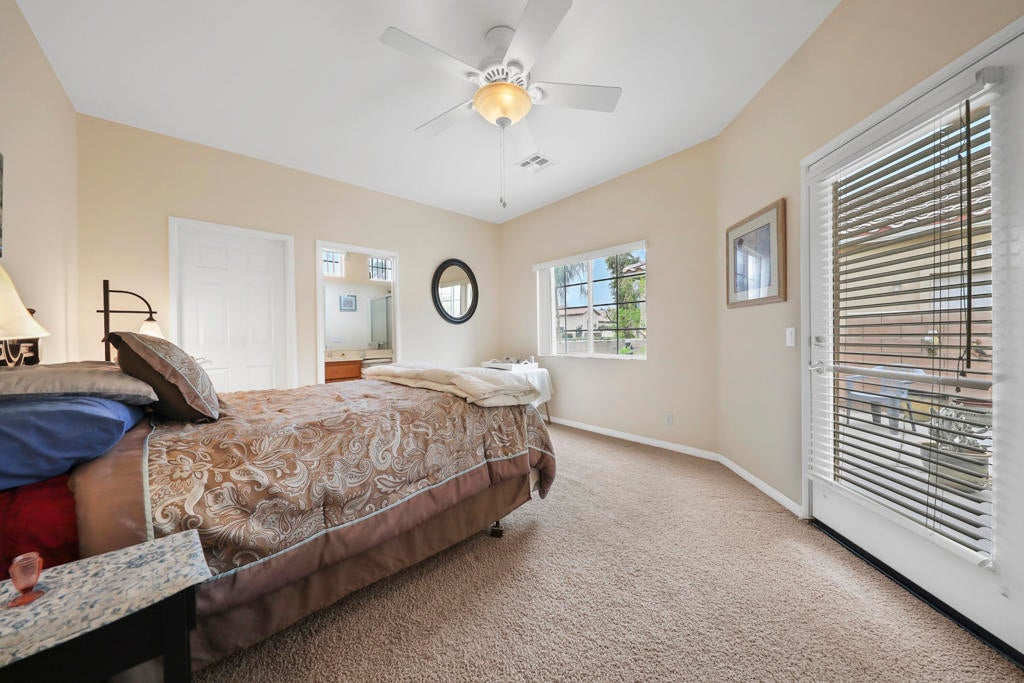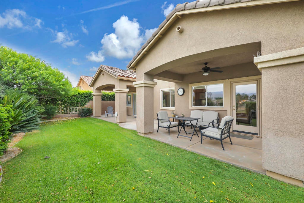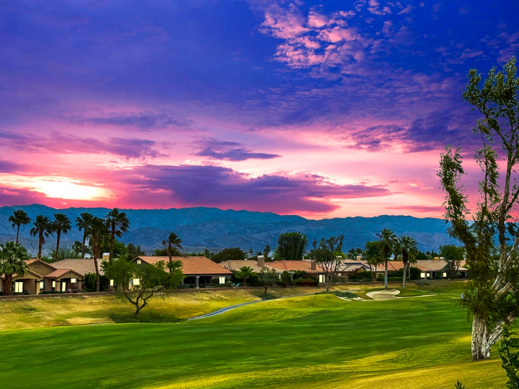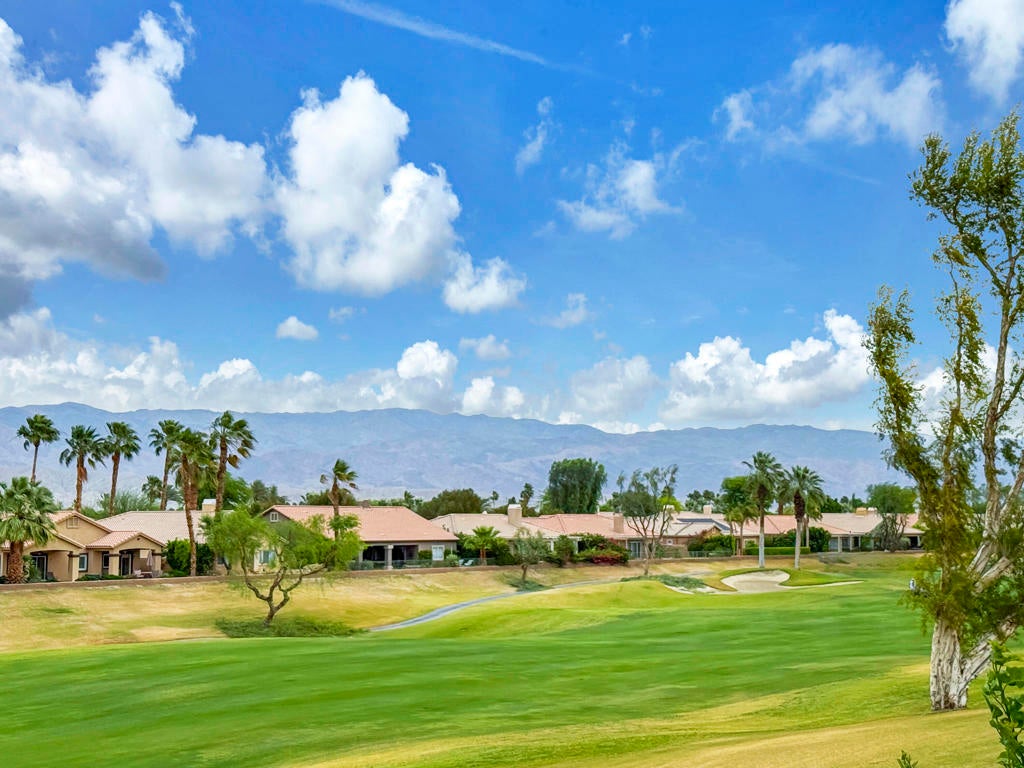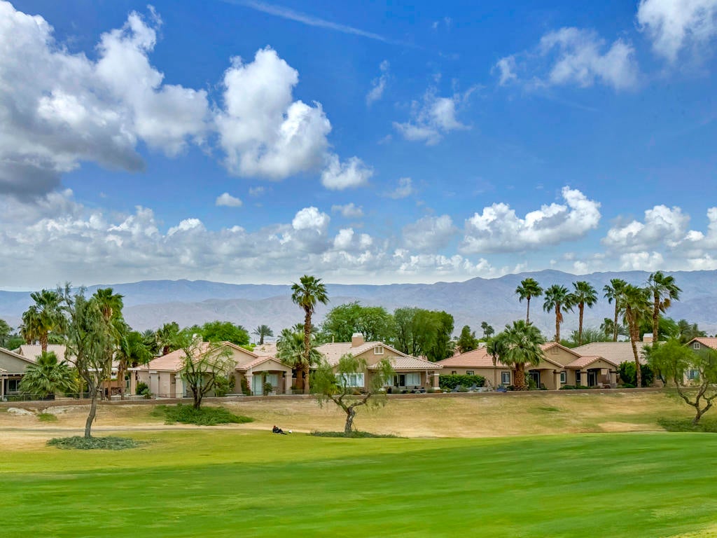 Discover this impeccably maintained, move-in-ready Venice model in the desirable Indian Springs community. Offering 1,898 sq. ft. of comfortable living space, this popular floor plan features 3 spacious bedrooms and 3 bathrooms, including a private attached casita with its own entrance, courtyard views, and ensuite bath--perfect for guests, a home office, or a quiet retreat.Enjoy stunning panoramic mountain and sunset views from your north-facing backyard, ideally positioned along the 4th fairway of the Big Rock at Indian Springs Golf Course. The outdoor living space includes two covered patios and an extended concrete patio area, creating the perfect setting for relaxing or entertaining against a breathtaking desert backdrop.Inside, the home is beautifully maintained and decorated to reflect a relaxed desert lifestyle. The kitchen overlooks the golf course and mountain vistas, making everyday living feel like a getaway.Indian Springs Country Club offers exceptional amenities, including the popular Big Rock Pub & Golf Course @ Indian Springs--known for great food, live music, and quality golf at reasonable rates. The low HOA fee covers front yard landscaping, cable TV/internet, 24/7 staffed entry, and access to two Residents Clubs featuring heated pools, hot tubs, and fitness centers. Rentals must be 30 days or longer; short-term vacation rentals are not permitted.Light, bright, and airy--this is a fantastic opportunity to own a golf course home in the heart of the desert. Don't miss it!