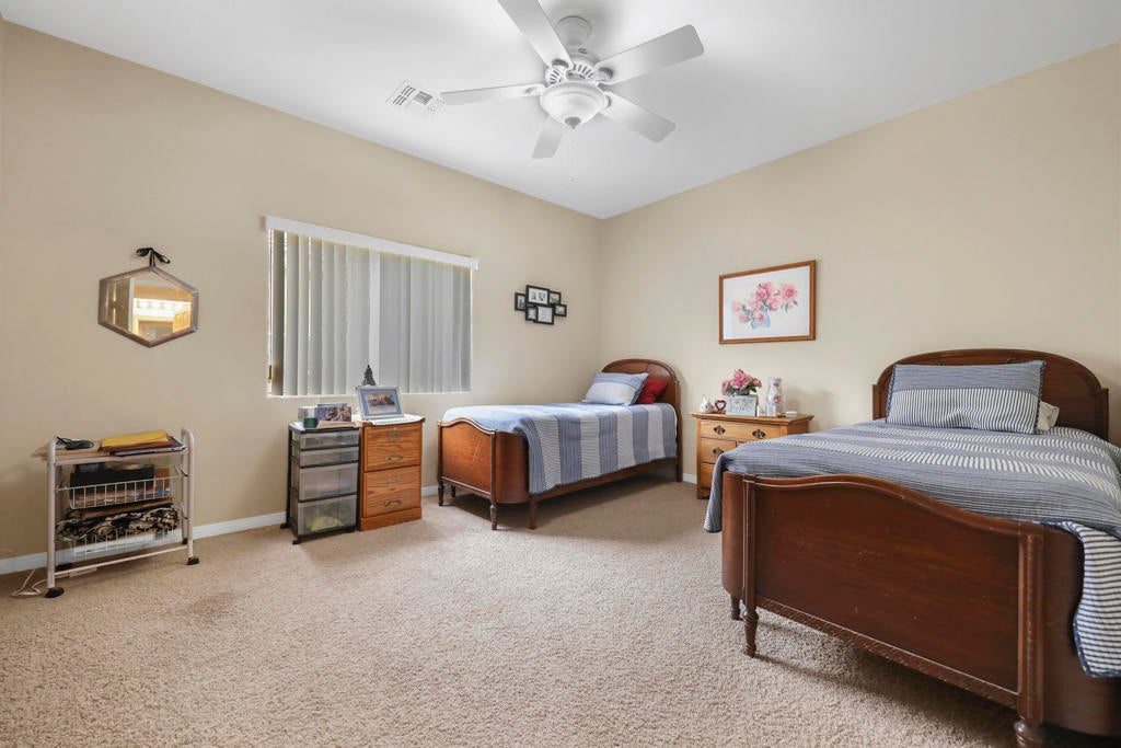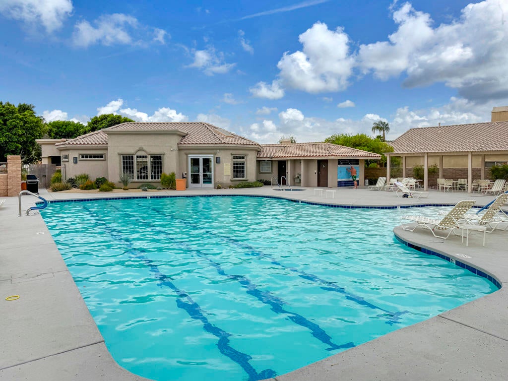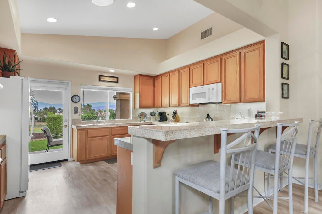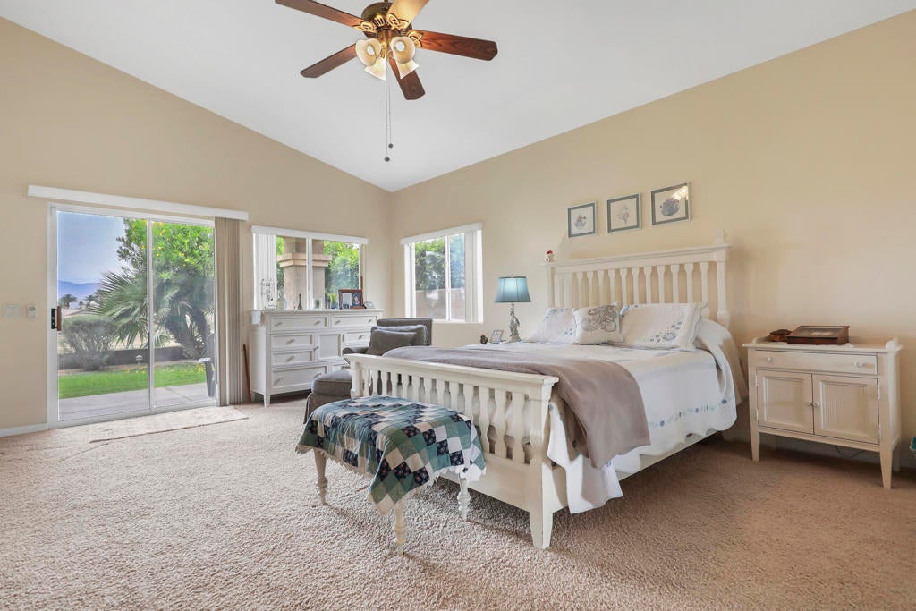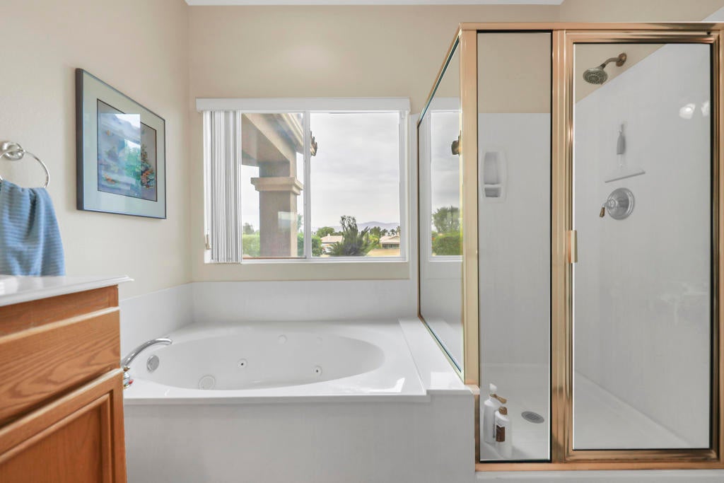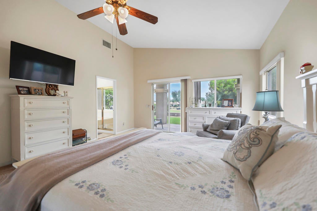 Discover this impeccably maintained, move-in-ready Venice model in the desirable Indian Springs community. Offering 1,898 sq. ft. of comfortable living space, this popular floor plan features 3 spacious bedrooms and 3 bathrooms, including a private attached casita with its own entrance, courtyard views, and ensuite bath--perfect for guests, a home office, or a quiet retreat.Enjoy stunning panoramic mountain and sunset views from your north-facing backyard, ideally positioned along the 4th fairway of the Big Rock at Indian Springs Golf Course. The outdoor living space includes two covered patios and an extended concrete patio area, creating the perfect setting for relaxing or entertaining against a breathtaking desert backdrop.Inside, the home is beautifully maintained and decorated to reflect a relaxed desert lifestyle. The kitchen overlooks the golf course and mountain vistas, making everyday living feel like a getaway.Indian Springs Country Club offers exceptional amenities, including the popular Big Rock Pub & Golf Course @ Indian Springs--known for great food, live music, and quality golf at reasonable rates. The low HOA fee covers front yard landscaping, cable TV/internet, 24/7 staffed entry, and access to two Residents Clubs featuring heated pools, hot tubs, and fitness centers. Rentals must be 30 days or longer; short-term vacation rentals are not permitted.Light, bright, and airy--this is a fantastic opportunity to own a golf course home in the heart of the desert. Don't miss it!