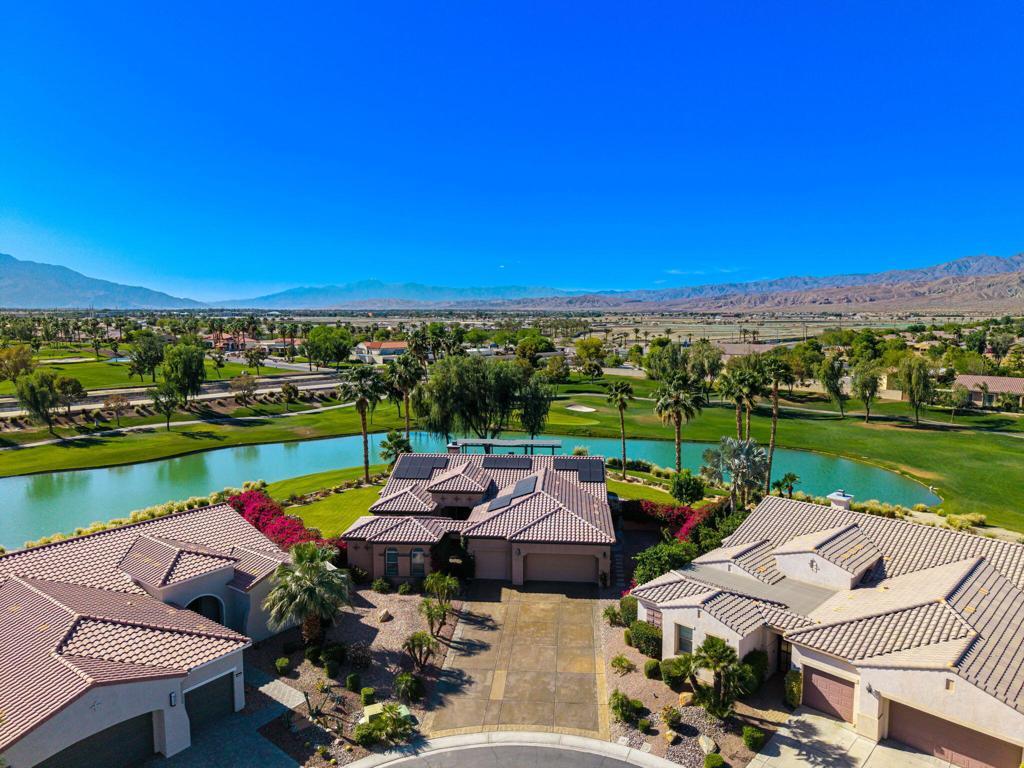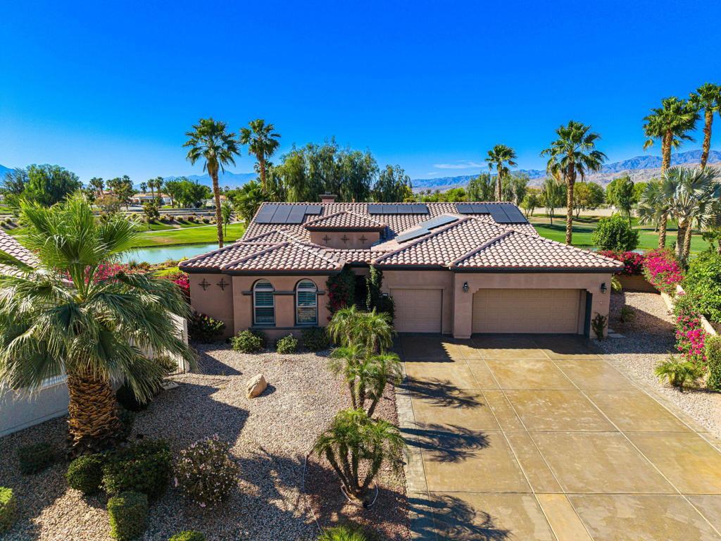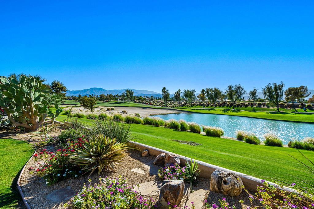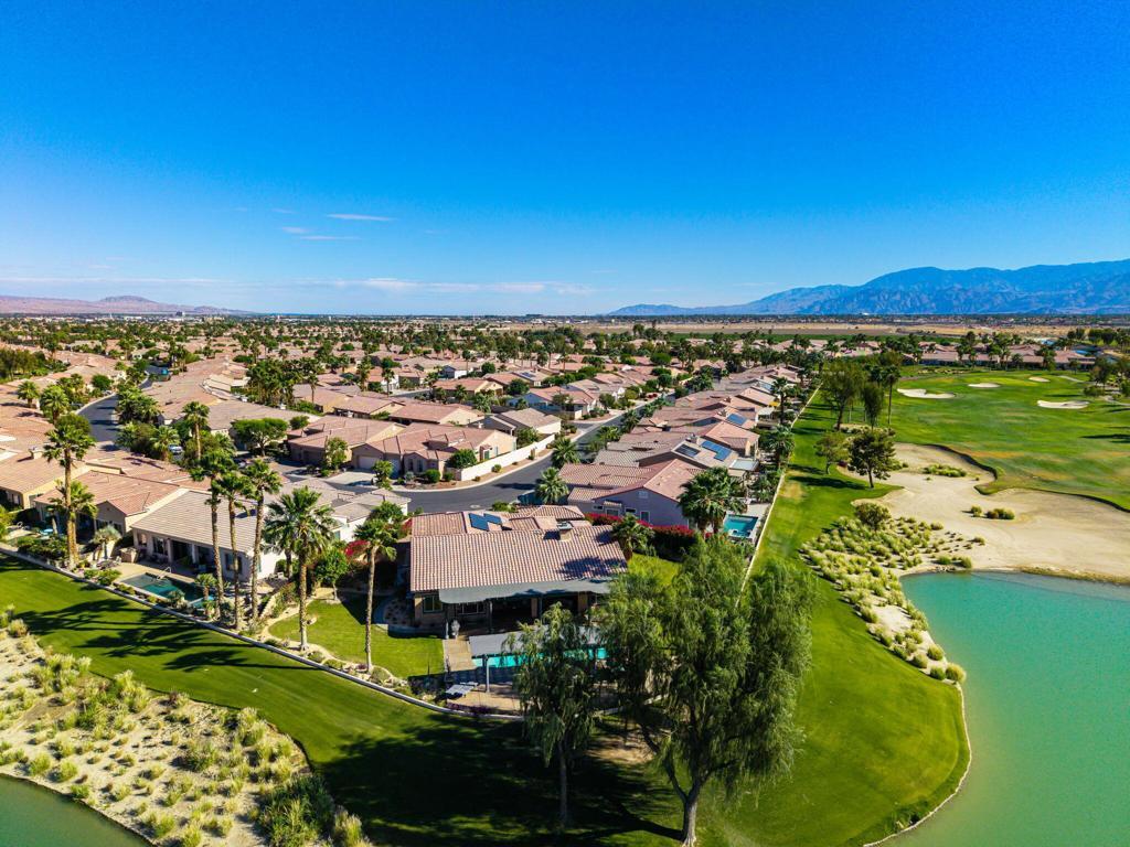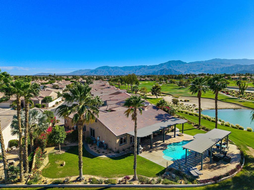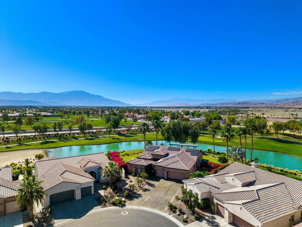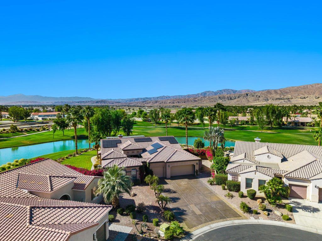 Singular refers to something extraordinary, remarkable, or unique. The Pointe exemplifies these qualities, offering an unparalleled living experience within a community of nearly 3,500 homes. Situated on a 16,553/sf peninsula bordered by a lake and 219 linear feet of golf course; the estate boasts panoramic views of the Santa Rosa, San Gregorio, and Chocolate Mountains. This property has been completely remodeled and updated, featuring three ensuite bedrooms, including a casita, to provide ample accommodation for family and guests with private spaces. The estate enjoys exceptional privacy, with no visible neighbors on either side of the property. The gourmet kitchen is equipped with a butler's pantry, walk-in pantry, quartz countertops, stacked stone finishes, and a suite of new KitchenAid appliances. The owner's suite includes a custom built-in window lounge, soaking tub, and luxury shower, all designed to maximize the scenic vistas.Entertainment options are extensive; residents can enjoy privacy in the pool and spa, relax on the second-level deck beneath a wraparound pergola, observe the golf course, or appreciate stunning desert sunsets. The owned solar panel system and Tesla Powerwall support efficient energy management with an average monthly utility cost of $135. Additional amenities include a three-car garage and driveway parking for six vehicles, facilitating large gatherings and events with ease.Sun City Shadow Hills residents enjoy access to two expansive clubhouses, each equipped with state-of-the-art fitness centers, indoor and outdoor pools, relaxing spas, and a robust calendar of classes and events. The community features two meticulously maintained championship golf courses, one recently ranked #4 in the Nation, as well as courts for tennis and pickleball and resident participation in over 50 different social clubs. A list of all upgrades and features is available. No open houses held for this listing. To view the property in person an appointment is required.