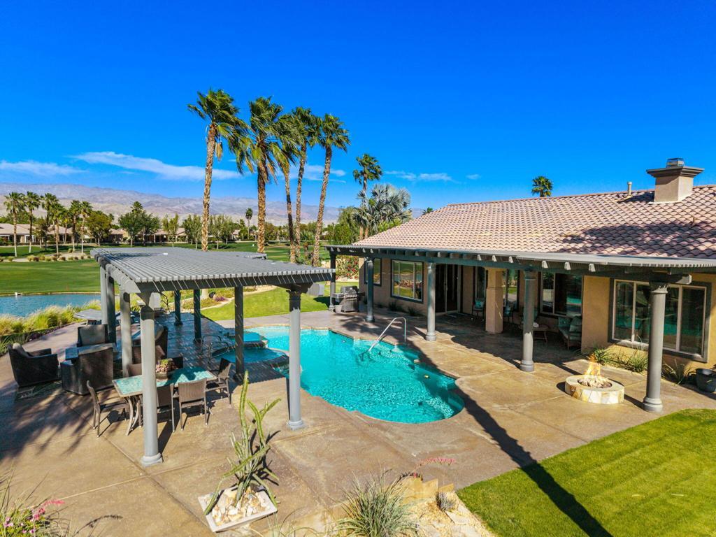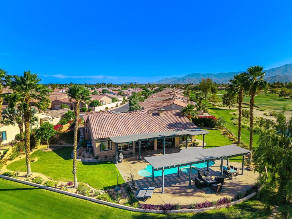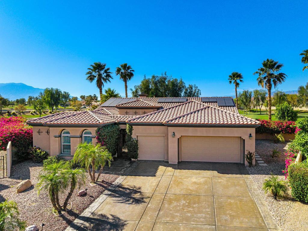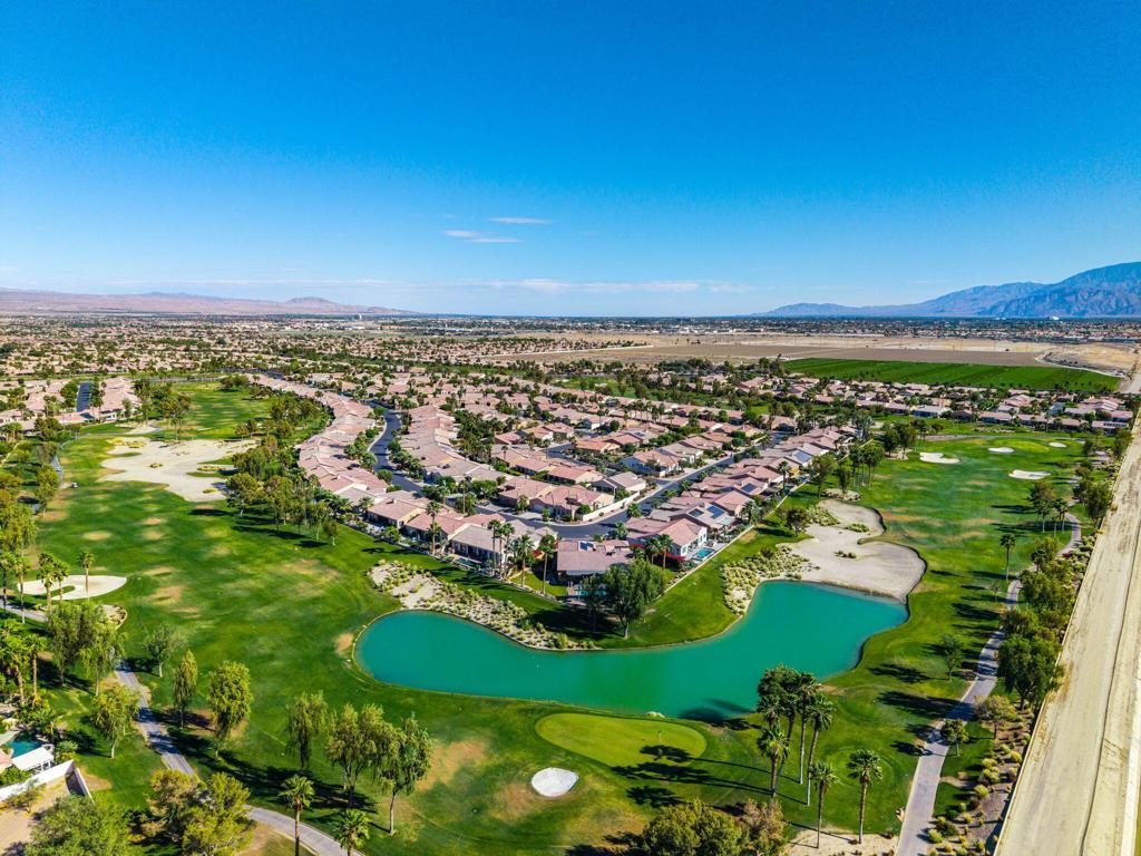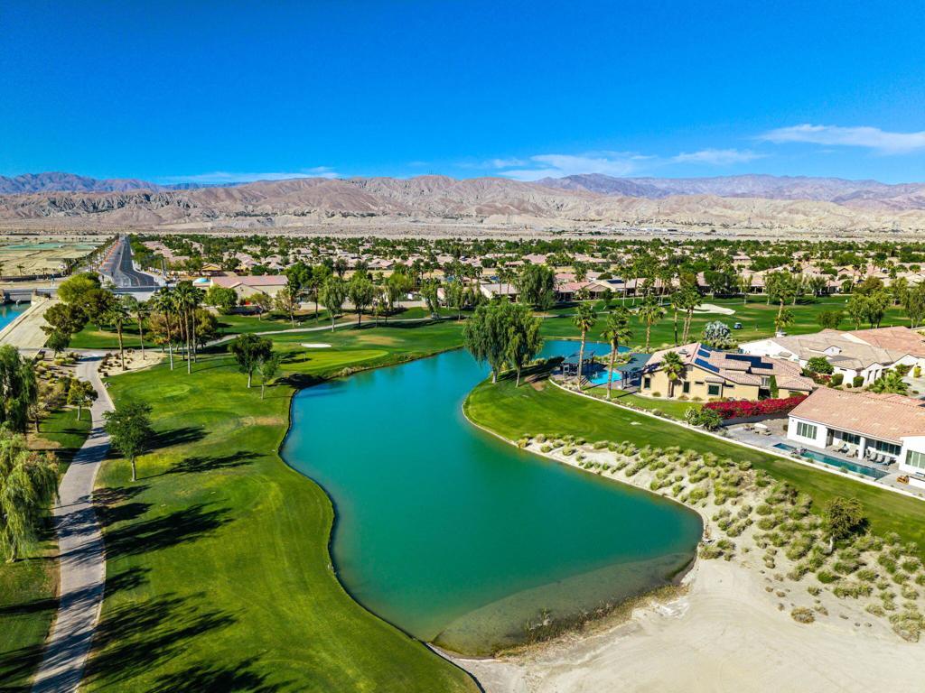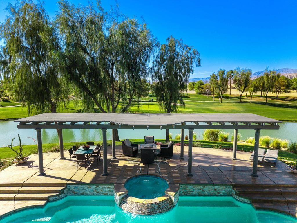 Singular refers to something extraordinary, remarkable, or unique. The Pointe exemplifies these qualities, offering an unparalleled living experience within a community of nearly 3,500 homes. Situated on a 16,553/sf peninsula bordered by a lake and 219 linear feet of golf course; the estate boasts panoramic views of the Santa Rosa, San Gregorio, and Chocolate Mountains. This property has been completely remodeled and updated, featuring three ensuite bedrooms, including a casita, to provide ample accommodation for family and guests with private spaces. The estate enjoys exceptional privacy, with no visible neighbors on either side of the property. The gourmet kitchen is equipped with a butler's pantry, walk-in pantry, quartz countertops, stacked stone finishes, and a suite of new KitchenAid appliances. The owner's suite includes a custom built-in window lounge, soaking tub, and luxury shower, all designed to maximize the scenic vistas.Entertainment options are extensive; residents can enjoy privacy in the pool and spa, relax on the second-level deck beneath a wraparound pergola, observe the golf course, or appreciate stunning desert sunsets. The owned solar panel system and Tesla Powerwall support efficient energy management with an average monthly utility cost of $135. Additional amenities include a three-car garage and driveway parking for six vehicles, facilitating large gatherings and events with ease.Sun City Shadow Hills residents enjoy access to two expansive clubhouses, each equipped with state-of-the-art fitness centers, indoor and outdoor pools, relaxing spas, and a robust calendar of classes and events. The community features two meticulously maintained championship golf courses, one recently ranked #4 in the Nation, as well as courts for tennis and pickleball and resident participation in over 50 different social clubs. A list of all upgrades and features is available. No open houses held for this listing. To view the property in person an appointment is required.