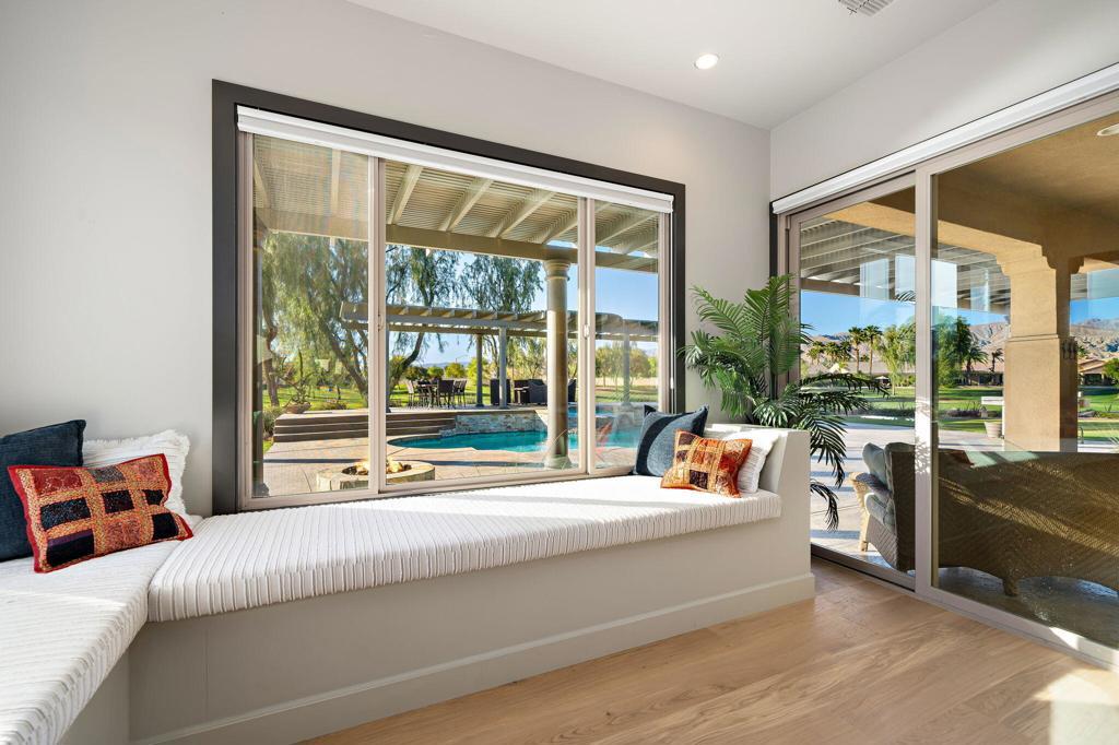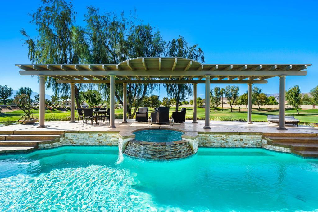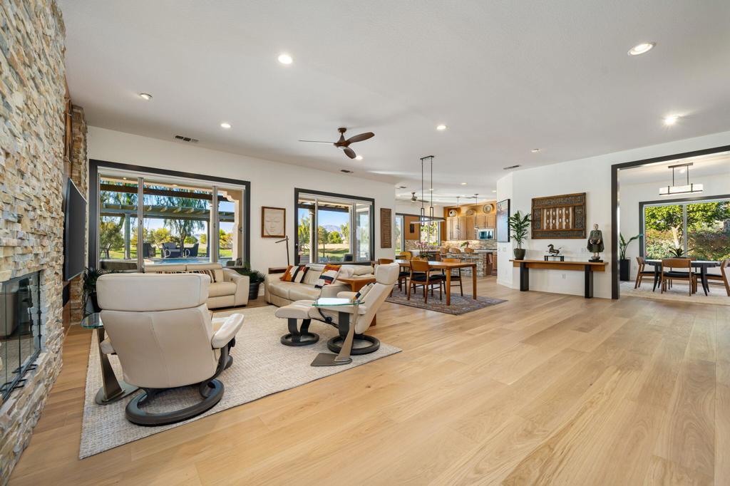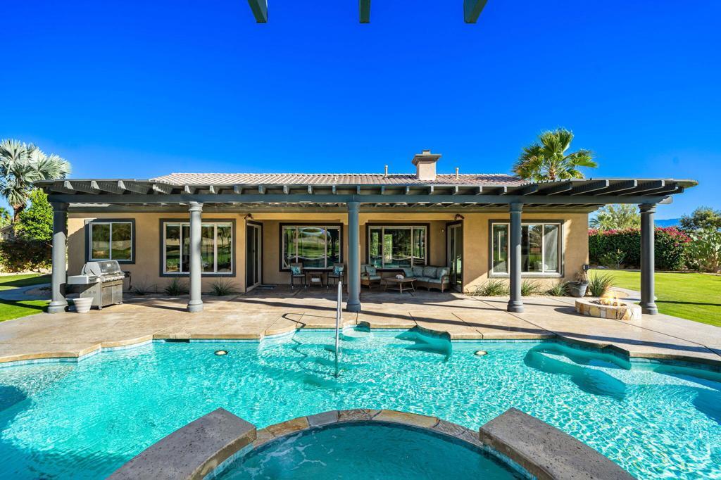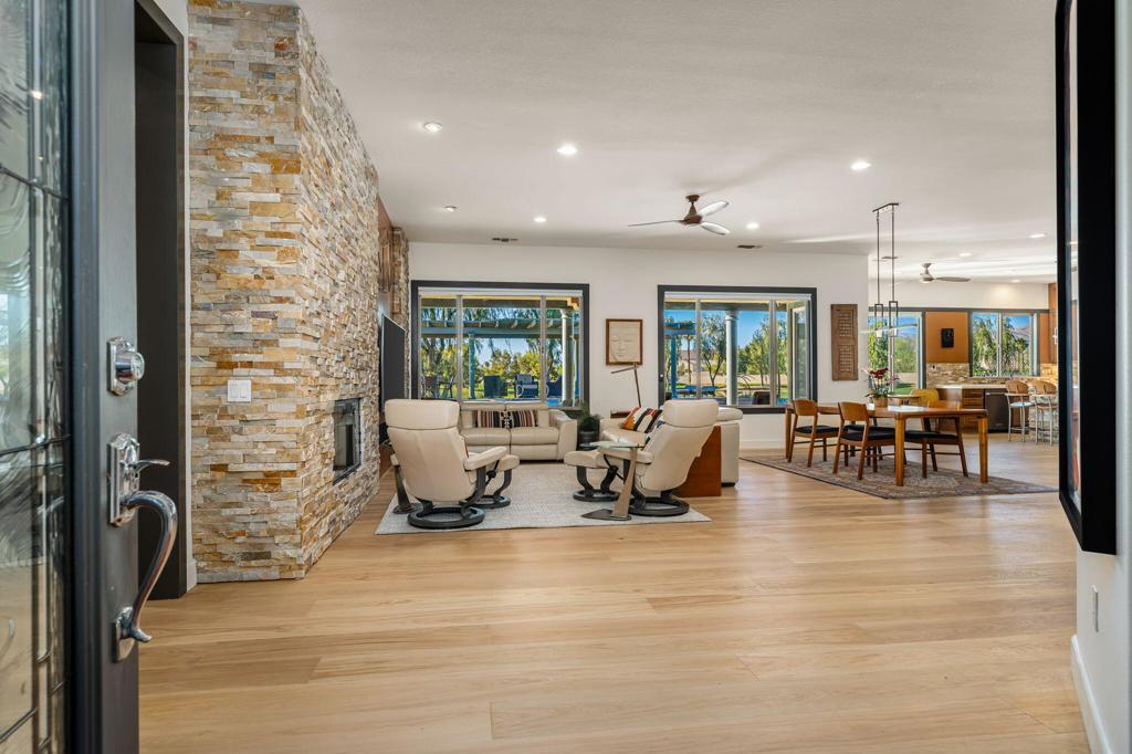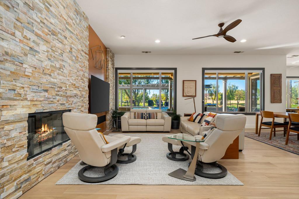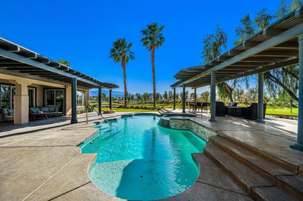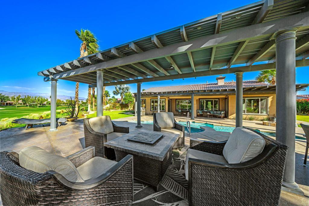 Singular refers to something extraordinary, remarkable, or unique. The Pointe exemplifies these qualities, offering an unparalleled living experience within a community of nearly 3,500 homes. Situated on a 16,553/sf peninsula bordered by a lake and 219 linear feet of golf course; the estate boasts panoramic views of the Santa Rosa, San Gregorio, and Chocolate Mountains. This property has been completely remodeled and updated, featuring three ensuite bedrooms, including a casita, to provide ample accommodation for family and guests with private spaces. The estate enjoys exceptional privacy, with no visible neighbors on either side of the property. The gourmet kitchen is equipped with a butler's pantry, walk-in pantry, quartz countertops, stacked stone finishes, and a suite of new KitchenAid appliances. The owner's suite includes a custom built-in window lounge, soaking tub, and luxury shower, all designed to maximize the scenic vistas.Entertainment options are extensive; residents can enjoy privacy in the pool and spa, relax on the second-level deck beneath a wraparound pergola, observe the golf course, or appreciate stunning desert sunsets. The owned solar panel system and Tesla Powerwall support efficient energy management with an average monthly utility cost of $135. Additional amenities include a three-car garage and driveway parking for six vehicles, facilitating large gatherings and events with ease.Sun City Shadow Hills residents enjoy access to two expansive clubhouses, each equipped with state-of-the-art fitness centers, indoor and outdoor pools, relaxing spas, and a robust calendar of classes and events. The community features two meticulously maintained championship golf courses, one recently ranked #4 in the Nation, as well as courts for tennis and pickleball and resident participation in over 50 different social clubs. A list of all upgrades and features is available. No open houses held for this listing. To view the property in person an appointment is required.