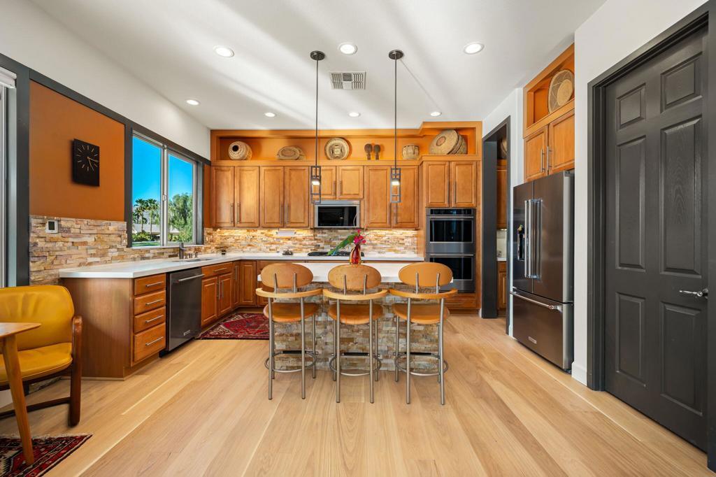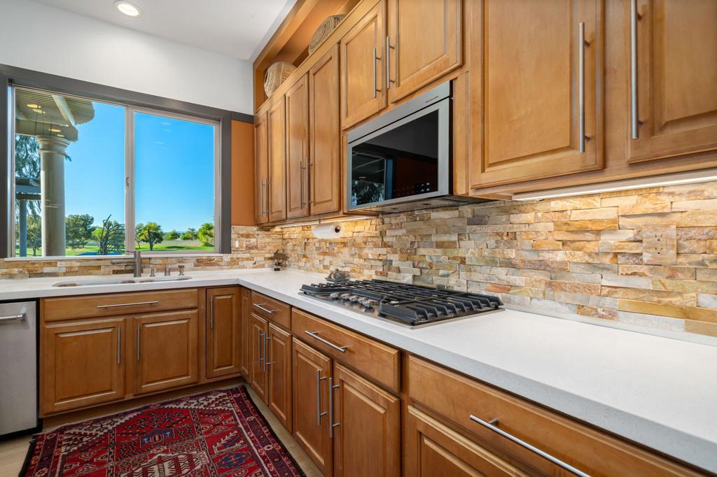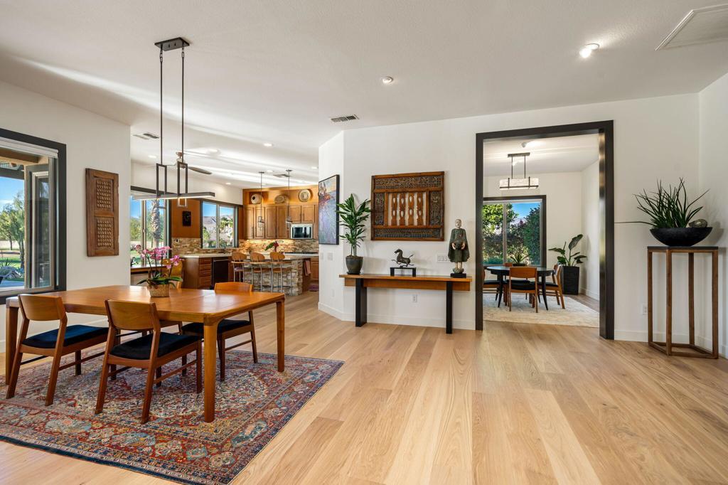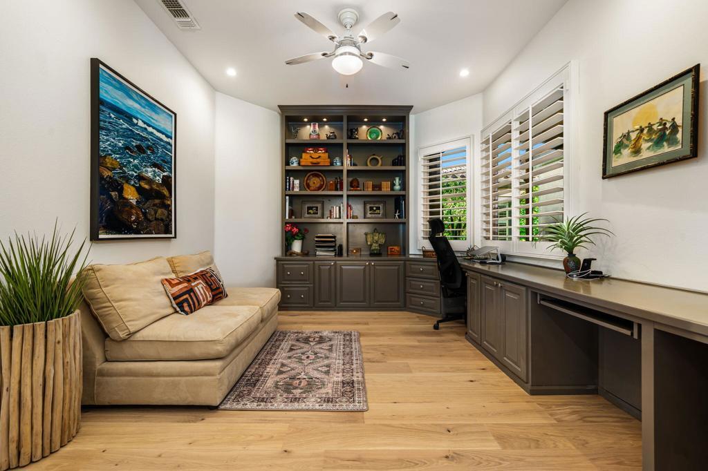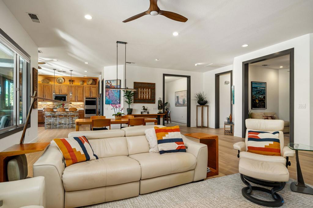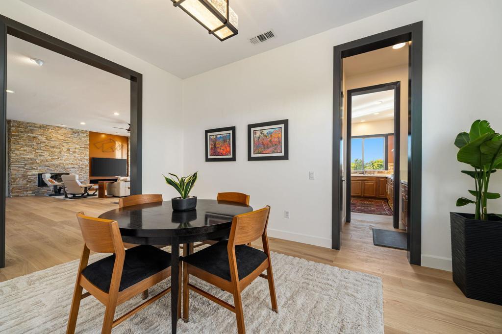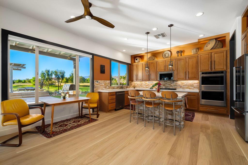 Singular refers to something extraordinary, remarkable, or unique. The Pointe exemplifies these qualities, offering an unparalleled living experience within a community of nearly 3,500 homes. Situated on a 16,553/sf peninsula bordered by a lake and 219 linear feet of golf course; the estate boasts panoramic views of the Santa Rosa, San Gregorio, and Chocolate Mountains. This property has been completely remodeled and updated, featuring three ensuite bedrooms, including a casita, to provide ample accommodation for family and guests with private spaces. The estate enjoys exceptional privacy, with no visible neighbors on either side of the property. The gourmet kitchen is equipped with a butler's pantry, walk-in pantry, quartz countertops, stacked stone finishes, and a suite of new KitchenAid appliances. The owner's suite includes a custom built-in window lounge, soaking tub, and luxury shower, all designed to maximize the scenic vistas.Entertainment options are extensive; residents can enjoy privacy in the pool and spa, relax on the second-level deck beneath a wraparound pergola, observe the golf course, or appreciate stunning desert sunsets. The owned solar panel system and Tesla Powerwall support efficient energy management with an average monthly utility cost of $135. Additional amenities include a three-car garage and driveway parking for six vehicles, facilitating large gatherings and events with ease.Sun City Shadow Hills residents enjoy access to two expansive clubhouses, each equipped with state-of-the-art fitness centers, indoor and outdoor pools, relaxing spas, and a robust calendar of classes and events. The community features two meticulously maintained championship golf courses, one recently ranked #4 in the Nation, as well as courts for tennis and pickleball and resident participation in over 50 different social clubs. A list of all upgrades and features is available. No open houses held for this listing. To view the property in person an appointment is required.