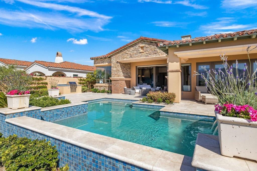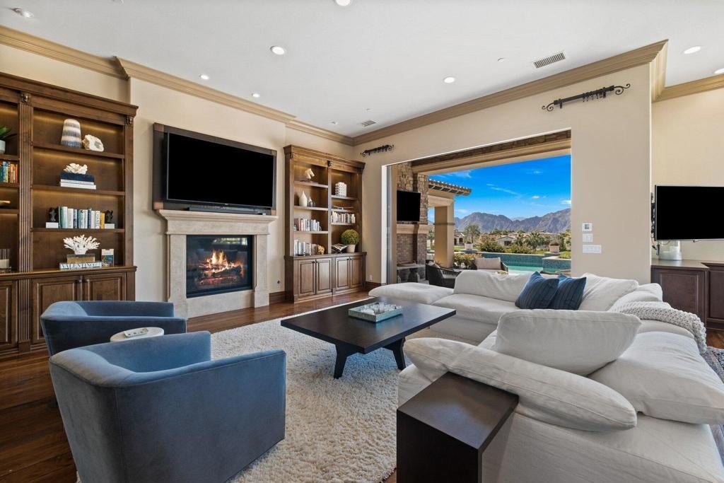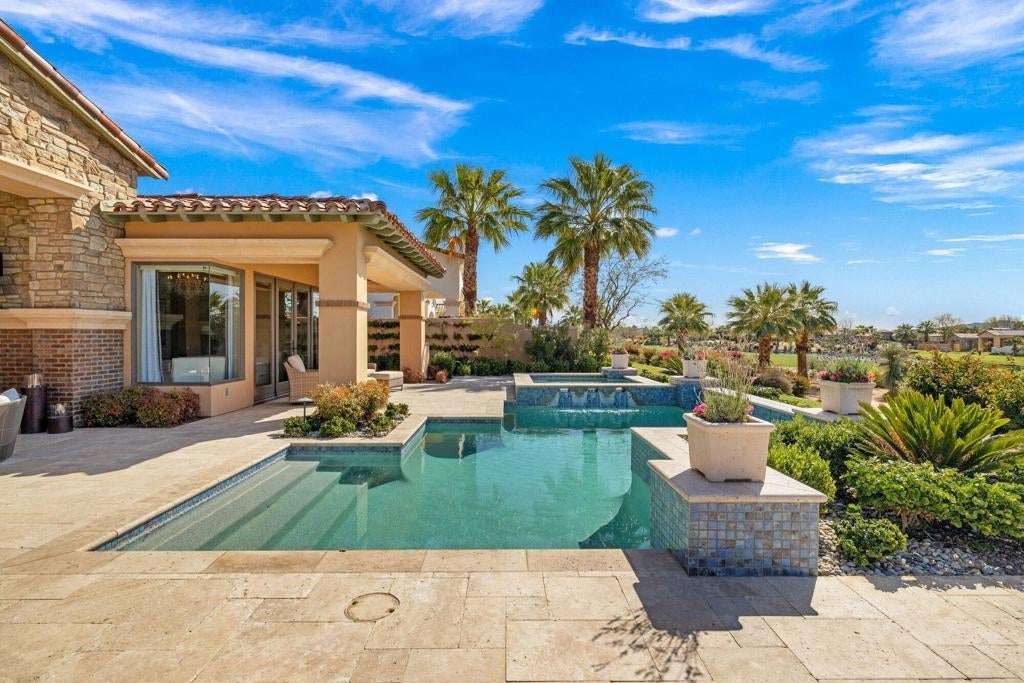 Please call for availability, flexible lease terms available. Seasonal rates apply. Escape to the desert and enjoy relaxed luxury living in this beautifully furnished Tuscan-style home, ideally set within the guard-gated Toscana Country Club. Perched on an elevated lot, the home offers stunning south-facing mountain and golf course views from the main living areas, bedrooms, and outdoor patio, creating the perfect backdrop for your stay.Designed for comfort and easy living, the home features four en-suite bedrooms, including a private detached casita, ideal for hosting family and guests. The spacious great room, formal dining area, and fully equipped chef's kitchen with Wolf appliances and an oversized island make it easy to entertain or simply unwind at home.The primary suite is a peaceful retreat with a sitting area, beautiful views, and direct access to the pool and patio. The spa-like bathroom includes dual vanities, a soaking tub, walk-in shower, and generous closet space.Seamless indoor-outdoor living is at the heart of the home, with large sliding glass doors opening to a resort-style patio. Spend your days enjoying the pool and spa, dining outdoors, or relaxing in the lounge area with unobstructed fairway views. A private interior courtyard offers an additional quiet space with a fireplace, perfect for morning coffee or evening relaxation.Located in one of the desert's premier communities, this home provides a private and serene setting while still being close to shopping, dining, and entertainment.Please note: Toscana Country Club amenities are not included with the lease.