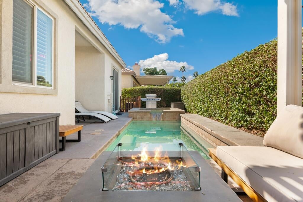 Exceptional short-term rental opportunity in Indian Palms Country Club, where refined desert living meets resort-style luxury in this beautifully upgraded pool home. Designed in quintessential Palm Springs style, this residence blends comfort, style, and functionality--ideal as a private retreat or income-producing Airbnb. The bright, open interior features slab granite countertops in the kitchen and baths, stainless steel appliances, plantation shutters, and ceiling fans throughout. A built-in surround sound system enhances the living experience, creating an inviting space for both relaxing and entertaining. Step outside to your private backyard oasis, where a sparkling pool and spa are framed by lush, mature bougainvillea--offering a serene, picturesque setting with exceptional privacy. Located within the guard-gated Indian Palms Country Club, residents and guests enjoy access to a 27-hole golf course, tennis, pickleball, bocce ball, fitness center, and multiple community pools. Just a short walk to the Empire Polo Club, this home is perfectly positioned for Coachella and Stagecoach, with close proximity to the Indian Wells Tennis Garden and PGA West. Dining, shopping, and entertainment are all minutes away. A rare opportunity to own a high-demand short-term rental in one of the desert's most sought-after resort communities.