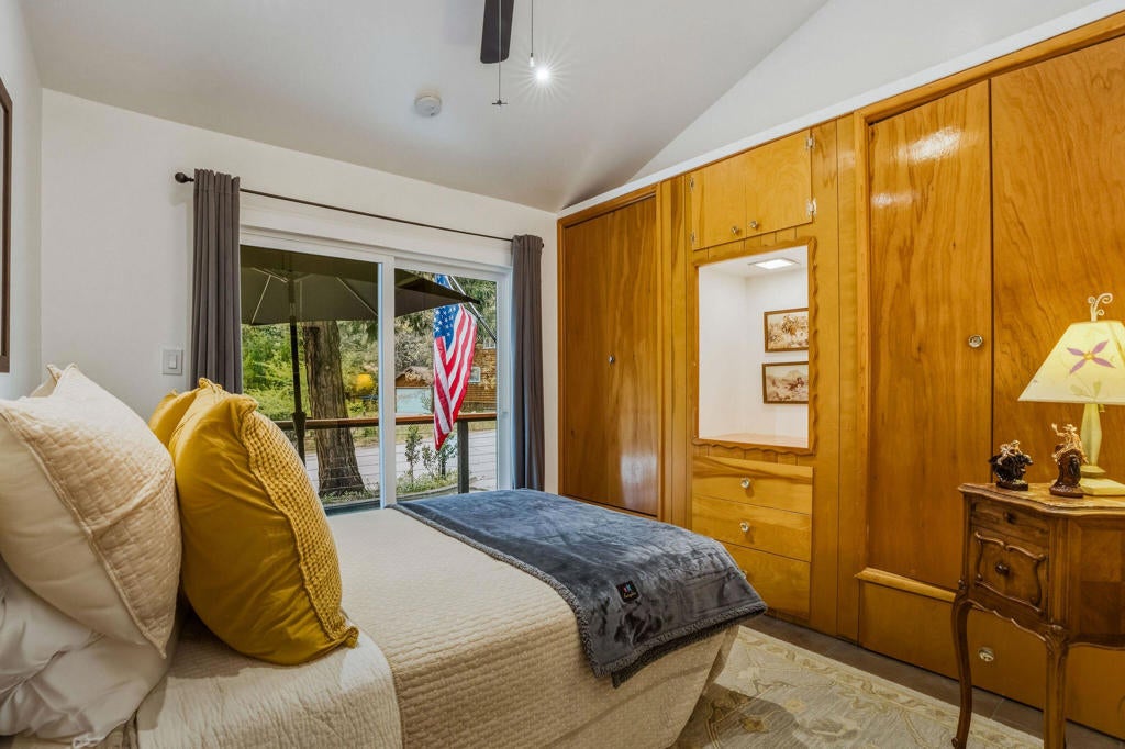 Welcome to an extraordinary multi-generational mountain estate in the coveted Fern Valley enclave of Idyllwild. Situated on a rare and private .42-acre lot, this property presents a one-of-a-kind opportunity featuring 2 fully remodeled, rustic-modern cabins, ideal for dual living, luxury vacation rental income, or a private family compound.The primary residence is a stunning 3-bedroom, 1.75-bath cabin retreat defined by soaring vaulted and beamed ceilings, abundant natural light, and an open-concept design. The inviting living room centers around a classic brick fireplace, seamlessly connecting to the dining area and a beautifully upgraded chef's kitchen appointed with waterfall-edge countertops, custom cabinetry, and modern finishes. Each bedroom offers direct outdoor access, blending indoor comfort with the surrounding natural beauty.The secondary residence is a truly magical guest cabin designed for flexibility and elevated living, featuring 1 bedroom + Loft, & 2 baths. A dramatic sunlit atrium creates a striking architectural focal point, while the expansive outdoor space opens to an oversized backyard complete with a whimsical play structure and multiple areas for entertaining, relaxation, or stargazing under pristine mountain skies.This exceptional property is perfectly suited for multi-family living, Rental, or a luxurious retreat compound offering both privacy and connection. Enjoy breathtaking views of iconic Suicide Rock and Lily Rock, enhancing the serene alpine setting.Extensive upgrades ensure a move-in-ready investment, including new 40-year roofs, updated electrical panels, dual septic systems (one for each residence), air conditioning, tankless water heater, and newly constructed decks and railings. Additional features include a detached outbuilding, a 1-car garage, and ample space for outdoor enjoyment.Rarely does a property combine luxury, versatility, and income potential in such a picturesque setting. This is a premier opportunity to own a legacy property in the heart of Idyllwild.