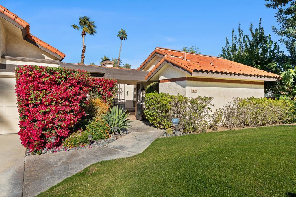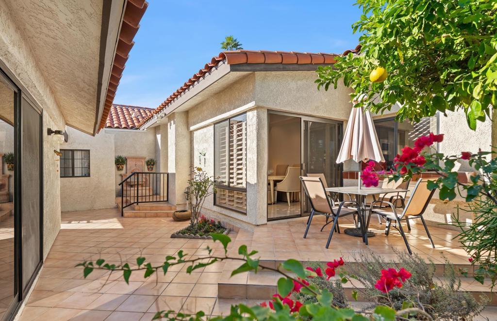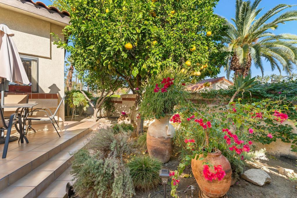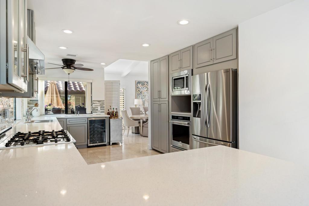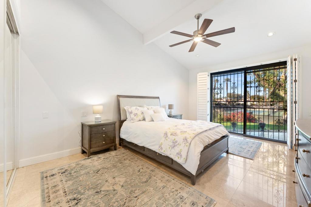 Nestled at the end of a quiet cul-de-sac inside the prestigious gated Los Lagos community in Indian Wells, this FULLY REMODELED residence is a true showpiece of refined luxury, thoughtful design, and one of the most desirable floor plans in the community. This exceptional home offers 4 bedrooms, including 3 bedrooms in the main residence and a DETACHED CASITA with its own private entrance and ensuite bath--perfect for guests, multigenerational living, or a private executive office. The reimagined primary suite is a standout, featuring a custom walk-in closet--a rare luxury in Los Lagos--alongside a stunning spa-inspired bathroom with custom cabinetry and a built-in makeup vanity. Inside, elegant marble flooring flows seamlessly throughout the entire home, including all bedrooms, creating a sophisticated and cohesive feel. The living room impresses with soaring vaulted ceilings, a custom marble fireplace, and Lutron recessed dimmable lighting, setting the perfect ambiance for both relaxation and entertaining. The home features three fully remodeled spa-style bathrooms with walk-in showers and built-in seating, plus a beautifully designed powder room for guests. At the heart of the home is a true chef's kitchen, completely redesigned with custom cabinetry, an expanded island, and premium stainless steel appliances, including a Bertazzoni gas range with matching hood, dual ovens, wine cooler, and dual sinks with a dedicated wet bar--ideal for entertaining in style. Step outside and experience breathtaking, unobstructed views of tranquil streams, ponds, lush greenbelts, and rows of swaying palm trees--with no rear neighbors, offering ultimate privacy and serenity. Outdoor living is elevated with two patios, including a private garden retreat with citrus trees and desert landscaping, all complemented by the soothing sound of flowing water--your own peaceful desert oasis. Additional highlights include an attached two-car garage and access to resort-style amenities, including pools, spas, tennis courts, scenic waterways, and beautifully maintained grounds. Ideally located just minutes from world-class shopping and dining on El Paseo, this home also offers exclusive Indian Wells resident perks, including discounted golf, resort dining privileges, and complimentary access to the Grand Hyatt fitness center. This is a rare opportunity to own a truly turnkey luxury residence in one of the desert's most sought-after communities.