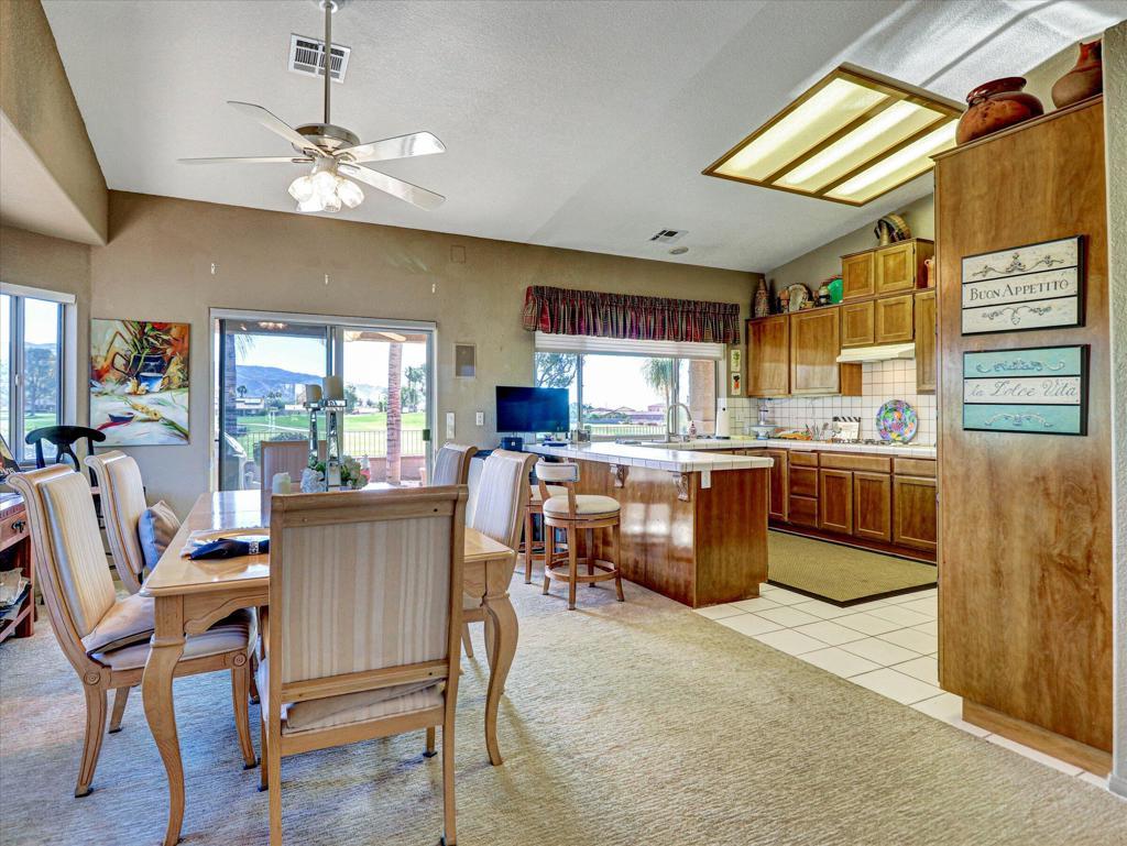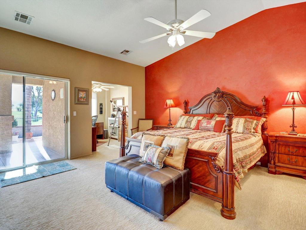 Mission Lakes 3 bedroom two bath home on the golf course with beautiful views of the mountains. This home offers great location on the 16 tee box! Enjoy watching golfers or just relaxing with beautiful fairway views. Home is well maintained inside and out. There are three bedrooms and two bathrooms and an office off the master bedroom. Back yard has covered patio and it has a cart garage for your golf cart. Mission lakes offers golfing on a Ted Robinson designed championship golf course. This gives two on title full privileges for only 507 a month. Amenities include golf, tennis courts, fitness room, swimming pools, spas, clubhouse pro shop and much more. Not many homes on the golf course and this one is priced perfect.
