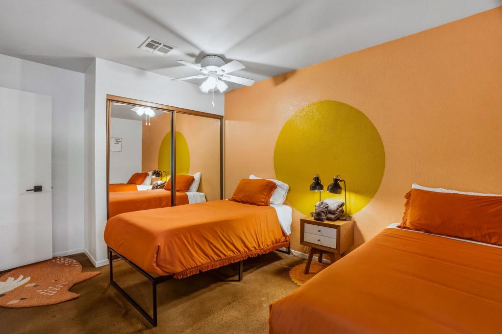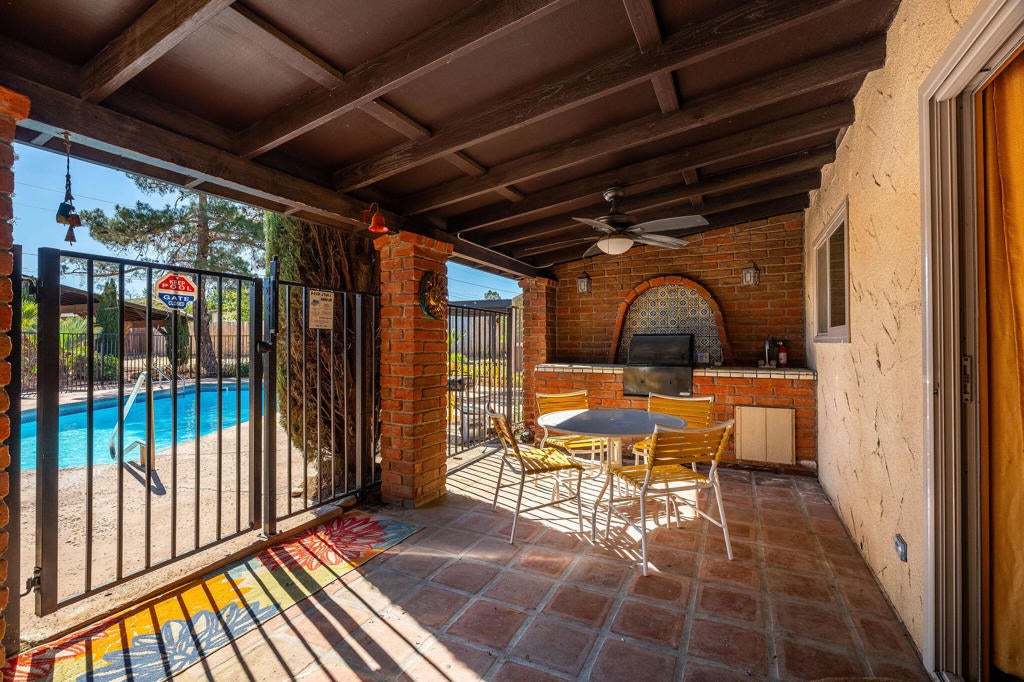 Step into a one-of-a-kind retro retreat where distinctive design meets modern comfort. The expansive corner lot--nearly half an acre--offers a circular driveway, full privacy, and generous outdoor space, creating a setting perfect for relaxed living and effortless entertaining. An in-ground pool paired with two spas invites year-round enjoyment, while the covered patio with outdoor kitchen and pavilion sets the stage for memorable evenings under the stars.Inside, three fireplaces warm the kitchen, living, and family rooms, adding character and ambiance throughout. A wet bar enhances hosting, while the detached two-car garage, currently styled as a game room, provides flexible space for recreation or hobbies.The primary suite delivers a private escape with a Roman tub framed by a window box and an enclosed patio featuring its own in-ground spa--offering a spa-like experience at home. A 36-panel solar system with Tesla PowerWalls brings energy efficiency and peace of mind.Designed for versatility, this property suits a primary residence, vacation getaway, or income-producing opportunity, blending lifestyle, comfort, and long-term value. Priced to sell, this unique home will go quickly. Schedule your private showing today!