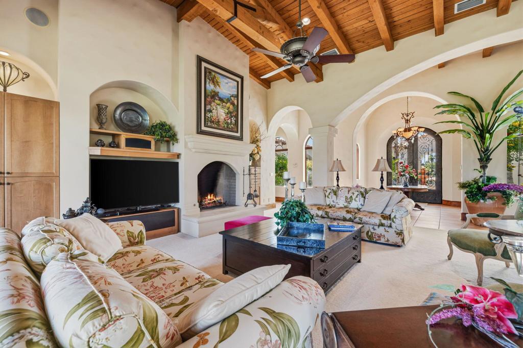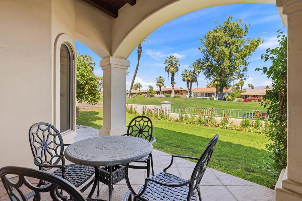 Incredible Castle Harbour Estate - First Time on the Market Since built in 2003Welcome to one of the most exceptional properties in Bermuda Dunes Country Club, ideally situated on one of the largest and most elevated lots in the community. This stunning 5,400 sq. ft. estate offers breathtaking views overlooking the 4th hole of the Classic one Course, with sweeping golf course and mountain vistas.Designed in timeless Mediterranean style, this estate was built with remarkable craftsmanship and intention. As you enter the private courtyard, you're welcomed by tranquil fountains and a resort-style pool and spa, creating a true retreat atmosphere between the main residence and detached casita.The main home features 2 spacious bedrooms, while the separate casita offers an additional 2-bedroom layout- each with en-suite bathrooms-providing ultimate comfort and privacy for guests.Inside, the great room is an entertainer's dream, showcasing soaring vaulted ceilings, a full bar, and expansive views. The gourmet kitchen is equally impressive, complete with upgraded appliances and a generous dining area perfect for hosting.The luxurious primary suite offers a private sanctuary with a spa-like en-suite bathroom, attached gym/utility room, and a large walk-in closet. The second bedroom in the main home is a retreat of its own, while an adjacent den provides flexibility as a media room, office, or easily converted third bedroom.Additional highlights include a spacious 3-car garage with a dedicated golf cart bay.Located within the exclusive Castle Harbour enclave, this home benefits from a separate gated entrance. HOA amenities include 24-hour security, plus internet and cable services.From its striking curb appeal to its thoughtful design and premier location, this is a rare opportunity to own a legacy property built to last.