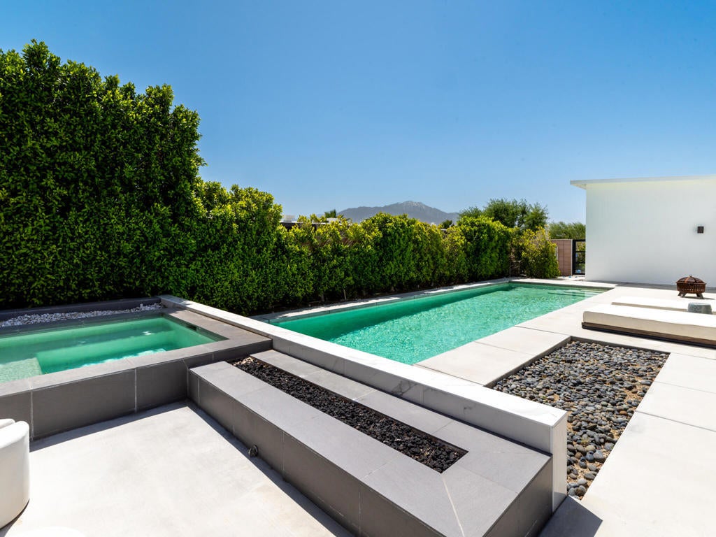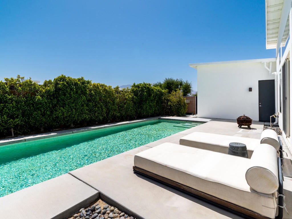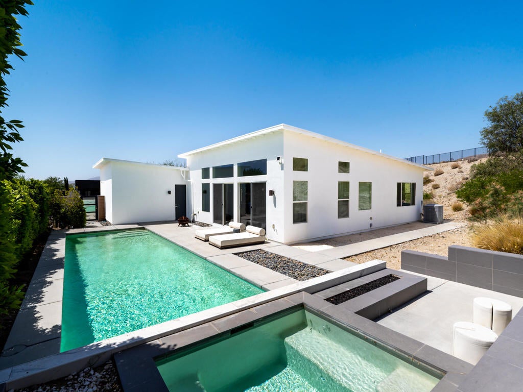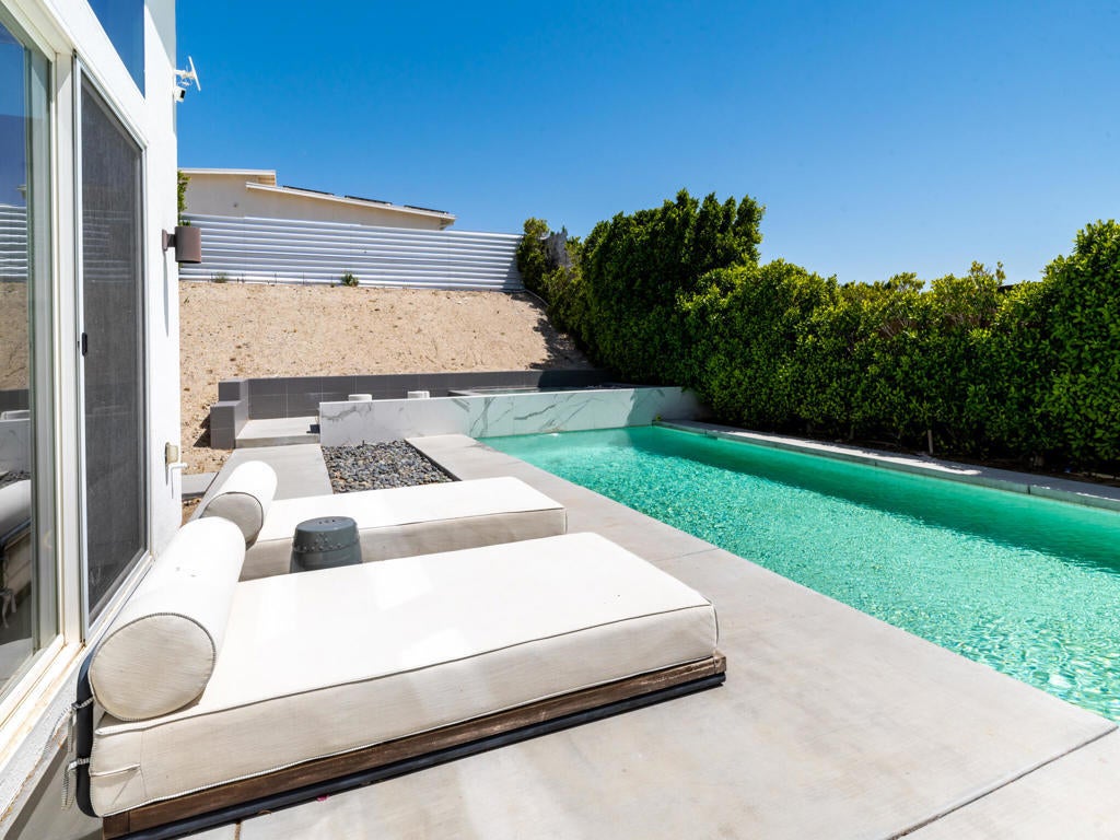 Welcome to 13910 Valley View Court--one of the finest offerings in Vista Haciendas. Perched at the end of a peaceful cul-de-sac, this Mid-Century Modern home blends sleek design with the beauty and serenity of desert living. Inside, the thoughtfully designed open floor plan showcases soaring 9'-12' ceilings, clerestory windows, and abundant natural light. Modern lighting and clean architectural lines create a bright, airy atmosphere throughout. The spacious primary suite offers a luxurious retreat with a spa-inspired bath and walk-in closet. The gourmet kitchen is ideal for both everyday living and entertaining, featuring generous storage, a large pantry, and an oversized island perfect for gathering. Step outside to your private backyard oasis, complete with a sparkling pool, spa, and fire pit--perfect for relaxing evenings under the stars. The expansive lot offers endless possibilities, whether you envision a lush garden, an ADU, or a custom casita. Enjoy stunning mountain views from the home, yard, and even the garage, enhanced by an upgraded garage door. Located just minutes from world-renowned hot mineral springs and the vibrant dining, shopping, and entertainment of Palm Springs, this property offers the perfect balance of tranquility and convenience. Experience the best of modern desert living--style, space, and value all in one exceptional home. Furnishings available for purchase. Call now for your private showing.