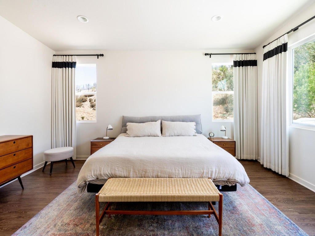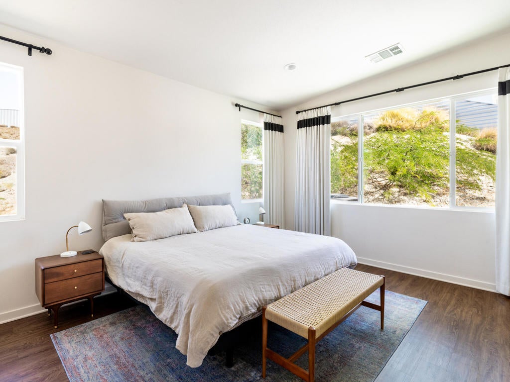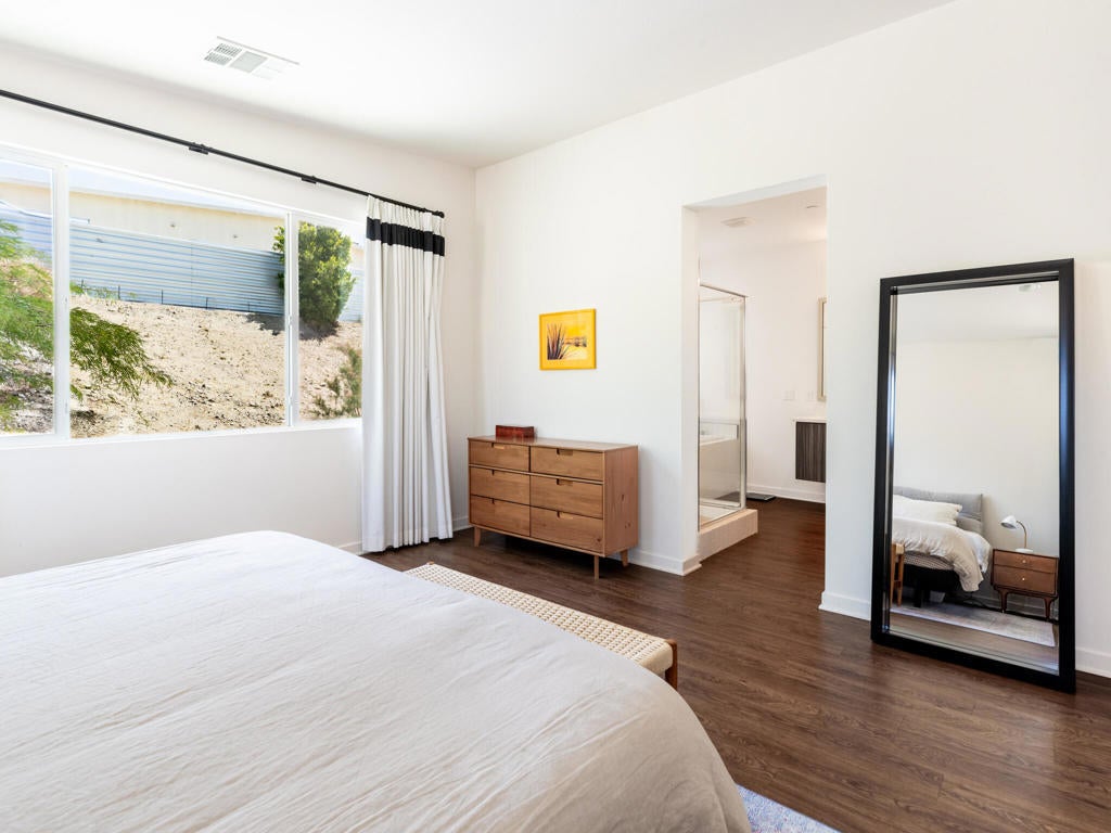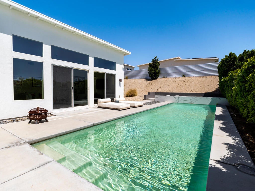 Welcome to 13910 Valley View Court--one of the finest offerings in Vista Haciendas. Perched at the end of a peaceful cul-de-sac, this Mid-Century Modern home blends sleek design with the beauty and serenity of desert living. Inside, the thoughtfully designed open floor plan showcases soaring 9'-12' ceilings, clerestory windows, and abundant natural light. Modern lighting and clean architectural lines create a bright, airy atmosphere throughout. The spacious primary suite offers a luxurious retreat with a spa-inspired bath and walk-in closet. The gourmet kitchen is ideal for both everyday living and entertaining, featuring generous storage, a large pantry, and an oversized island perfect for gathering. Step outside to your private backyard oasis, complete with a sparkling pool, spa, and fire pit--perfect for relaxing evenings under the stars. The expansive lot offers endless possibilities, whether you envision a lush garden, an ADU, or a custom casita. Enjoy stunning mountain views from the home, yard, and even the garage, enhanced by an upgraded garage door. Located just minutes from world-renowned hot mineral springs and the vibrant dining, shopping, and entertainment of Palm Springs, this property offers the perfect balance of tranquility and convenience. Experience the best of modern desert living--style, space, and value all in one exceptional home. Furnishings available for purchase. Call now for your private showing.