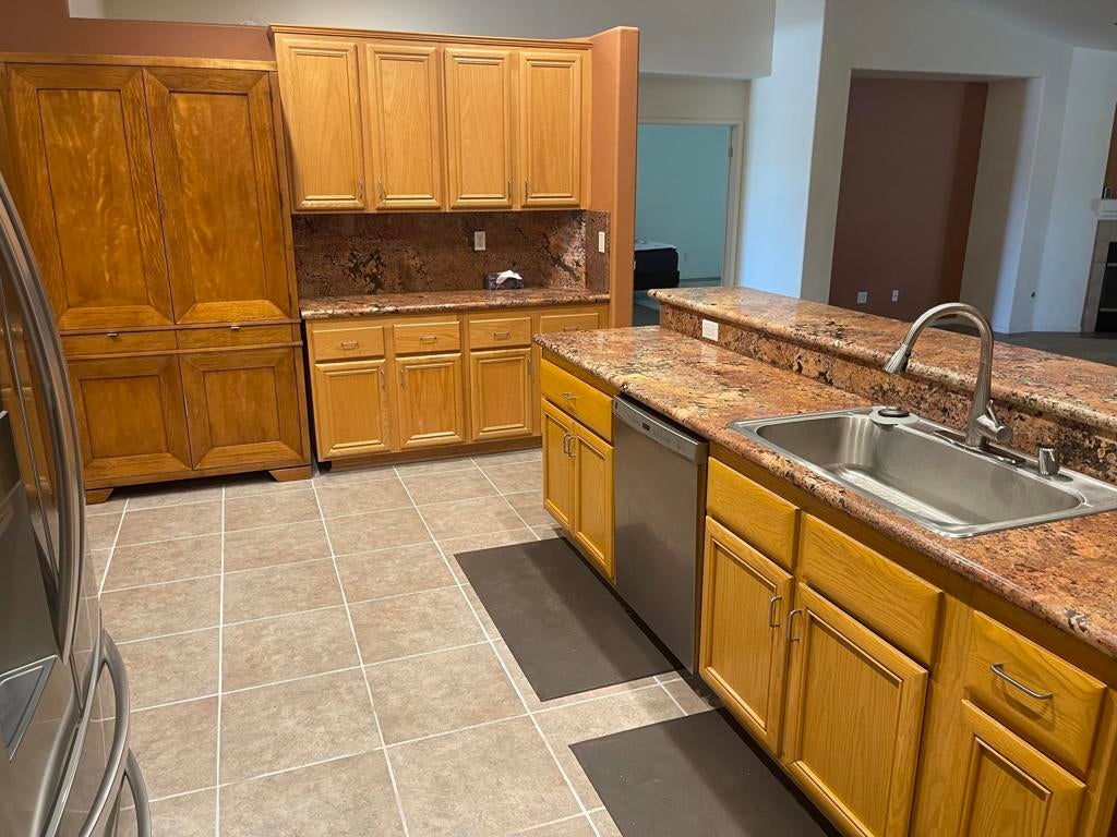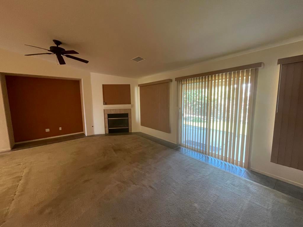 Wow: This is 4-bedroom 3-bath home located in very desirable Las Brisas I, a gated family community. The mountain views and spectacular. Inside, the great room has a fireplace. The home has an upgraded two-zone Heat Pump HVAC System that keeps it energy efficient. The primary suite is a private retreat with double door entry and direct access to the rear leisure area. It features an expansive bedroom, a spa-like bathroom, and dual walk-in closets. The 2nd bedroom has a window to the rear leisure area, with direct door to the hall-bathroom, making it ideal for guests. The 3rd bedroom is versatile as an office/den, has a built-in desk. The kitchen has granite counters, with a large island, perfect for home chefs and entertainers alike. Laundry Room is access to the 3-vehical garage with built-in storage cabinets, attic storage access, a workbench, an EV charging outlet, and a Navien tankless hot water system. Ther rear yard has a 10X10 shed with paved access; the side yard has gated RV Storage.
