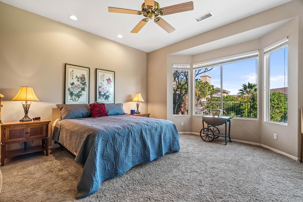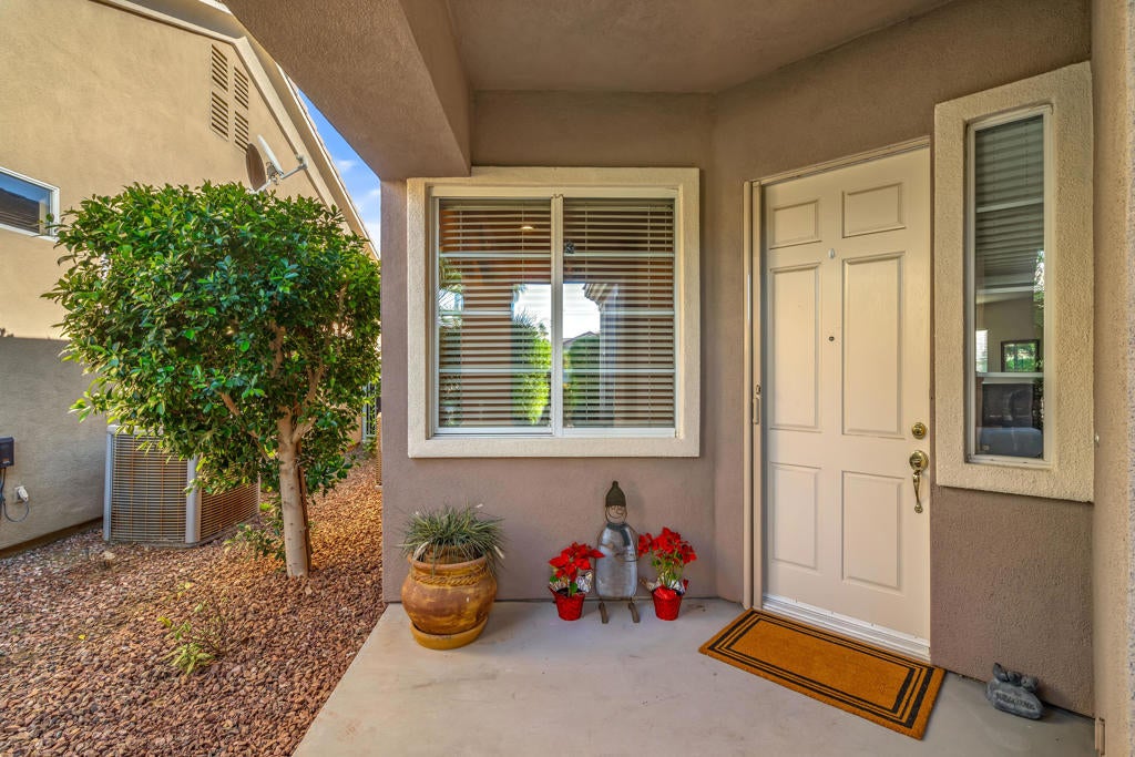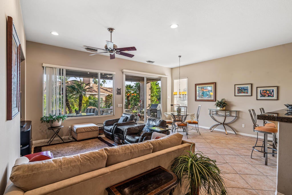 Modern Comfort Meets Active Resort Living.This Newport III model offers 1,917 sq. ft. of thoughtfully designed living space, perfectly situated on a peaceful, interior cul-de-sac. Combining modern upgrades with a spacious, open-concept layout, this home is the ultimate desert retreat.The InteriorOpen-Concept Design: Seamless flow between the gourmet kitchen, dining area, and a bright Great Room--perfect for entertaining.Chef's Kitchen: Features granite tile countertops, premium stainless steel appliances, and sleek recessed lighting.Primary Suite: A private sanctuary with French door patio access, a large walk-in closet, and a spa-like bath featuring a separate soaking tub and shower.Flexible Space: Includes a versatile den/office and a private guest bedroom with an ensuite bath for maximum privacy.Finishes: Cool tile flooring throughout main areas with cozy carpet in the bedrooms.Outdoor OasisStep outside to your own private resort. Relax by the pebble-tec POOL / SPA surrounded by lush, mature landscaping and productive citrus trees. The exterior has been freshly painted, and professional landscaping gives the home incredible curb appeal.Bonus FeaturesUpdated Mechanics: Peace of mind with a NEWER HVAC system.Ample Storage: 2-car garage plus a dedicated golf cart garage.Negotiables: Select furnishings and a golf cart are available for negotiation outside of escrow.The Heritage Palms LifestyleWelcome to the Coachella Valley's premier 55+ gated community, where you own the golf course with no initiation fees.World-Class Amenities: 18-hole championship golf, a newly updated clubhouse, and a full-service restaurant and lounge.Stay Active: Fitness center, lighted tennis and pickleball courts, plus indoor/outdoor pools and spas.Unbeatable Value: Benefit from low HOA dues ($600) and significantly lower utility costs through IID electric rates.Experience the best of Heritage Palms--schedule your tour today!
