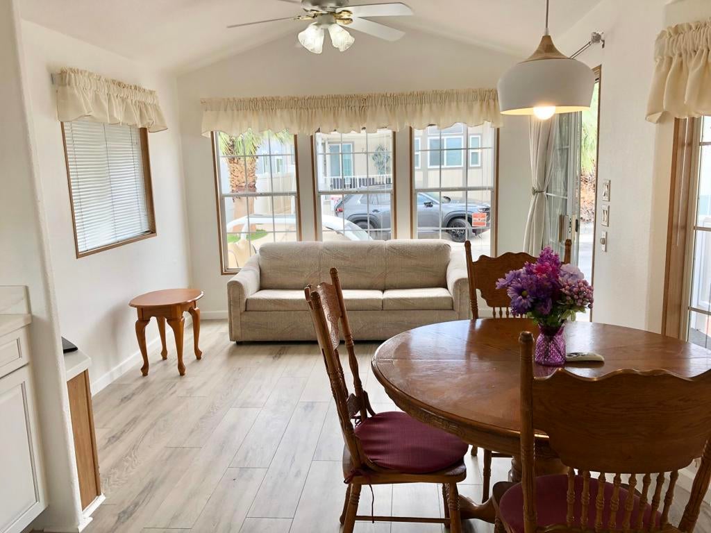 Beautiful new flooring, paint, countertops and kitchen cabinets in this park model with California room set up a second bedroom., 2 parking spaces, included a covered carport. Extra storage available in shed.Sky Valley Resort is an ALL AGED family park, featuring 13 hot spring mineral pools, pickleball, tennis, walking trails, fitness center with events and activities during high season.Call for an appointment today!