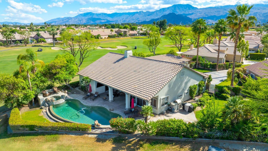 Coming soon! Showings start Friday 4/17! Yes--you're looking at one of the most spectacular homesites in all of Indian Springs. Originally reserved by the developer for a personal residence, 80282 Golden Horseshoe is truly a one-of-a-kind property, combining a premier lot with one of the community's most sought-after floor plans.This highly desirable Coronado plan--rarely available--sits at the point of an expansive 15,682 sq. ft. lot, offering more than panoramic views across the lake and the 7th and 8th holes of the Big Rock Golf Course. The sense of arrival is immediate, as you enter down a long private driveway that sets the tone for the exceptional experience that follows.Inside, the home delivers everything buyers love about the Coronado. A grand double-door entry opens to an impressive great room with an open-concept kitchen and a centrally located wet/juice bar--perfect for entertaining. The space flows seamlessly to the backyard, where you'll find one of the most spectacular outdoor settings in the neighborhood.The oversized covered patio--one of the largest offered by the developer--overlooks a stunning custom infinity-edge pool and spa, all set against a peaceful, serene golf course backdrop. It's the perfect setting for relaxing or hosting unforgettable gatherings.Offering 2,612 sq. ft. of living space, the home features a luxurious primary suite, a private guest suite, and a versatile third bedroom ideal for a den, office, or additional sleeping area. The 3-car garage is equipped with its own dedicated A/C unit to keep vehicles and your golf cart cool year-round.The property also includes an oversized side yard with lush a lawn & landscaping--ideal for outdoor games like croquet or bocce ball--and offers excellent potential for expansion, whether adding onto the home or building a detached casita.Simply put, this is one of the finest homes and homesites in Indian Springs--an opportunity that must be seen in person to be fully appreciated. Showings start Friday April 17th!