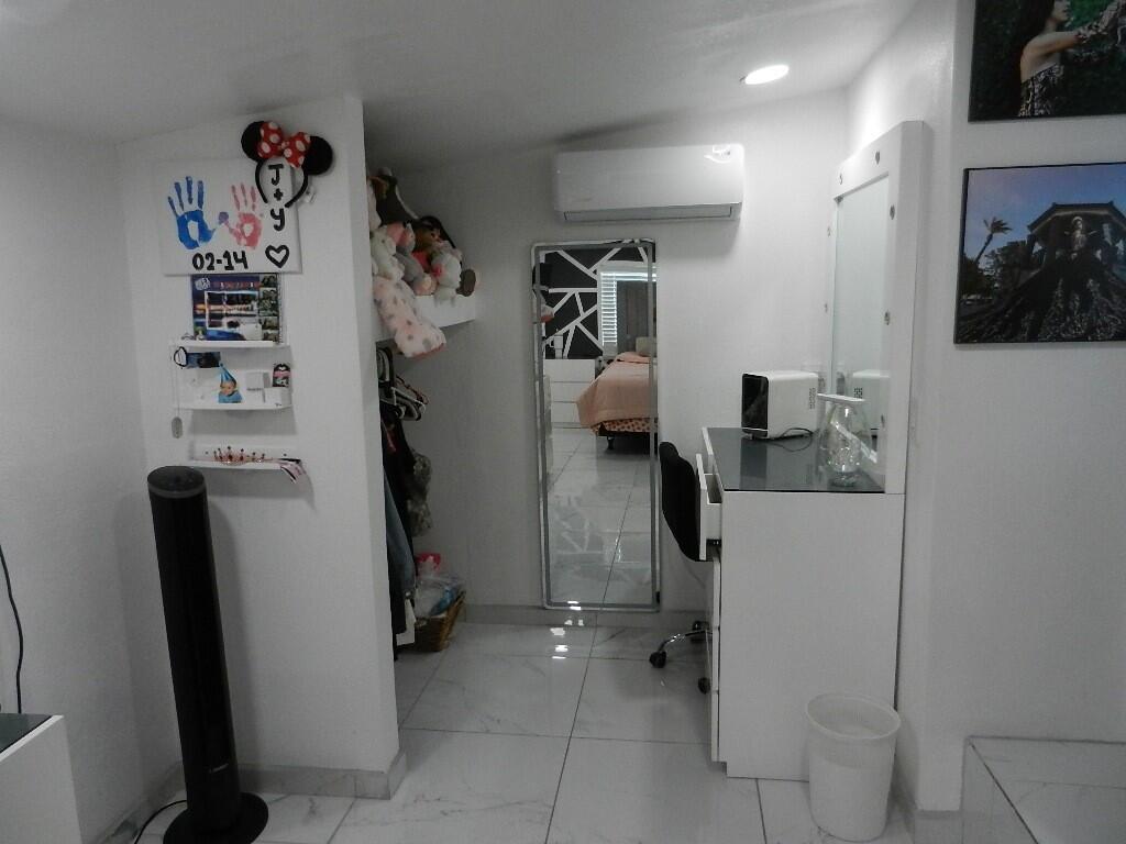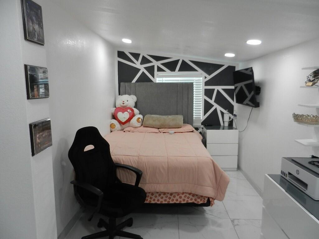 Completely remodeled, with beautiful white tile flooring throughout; updated kitchen cabinetry, and lighting as well as independent oven; upgraded and updated bathrooms; new paint in and outside. Outside: a separate and individual climate controlled laundry area; two car garage, detached, and another detached one car garage/storage or multiple use room; built in BBQ, a 56' concrete floor covered patio/car-port for either keep your car/s out of the sun or guest those family and friends gatherings, also a paved driveway and front uncovered patio , brand new wood fencing and chain link gate makes this a very desirable, and functional first time home or second home with plenty of room for outdoor meetings/parties, you name it. Wait no more and make it yours now.