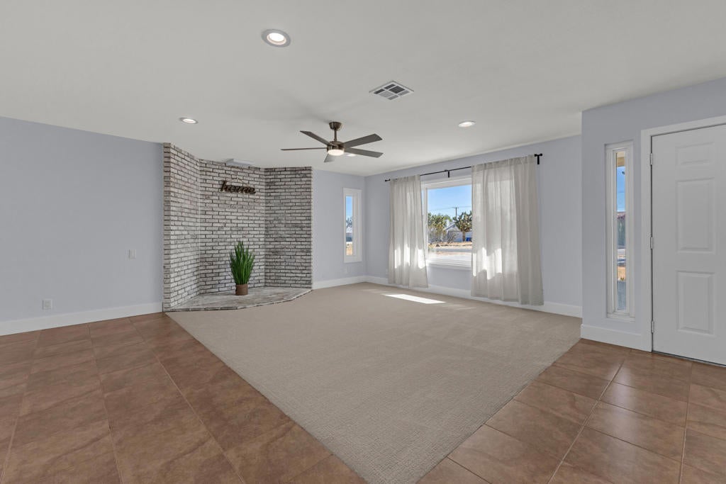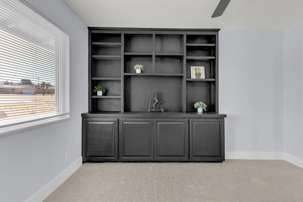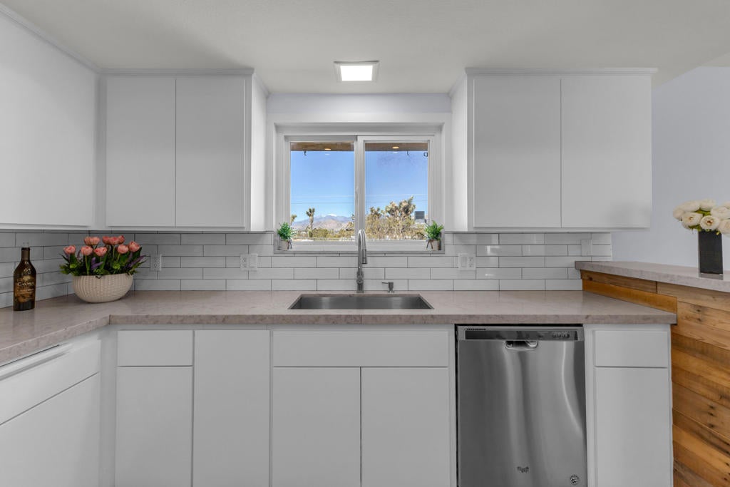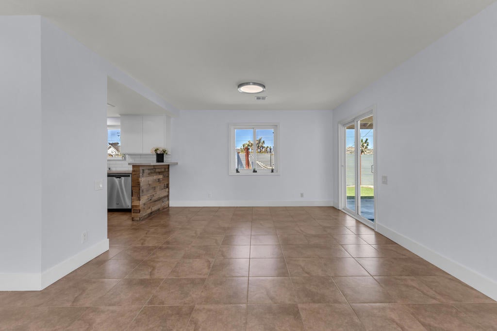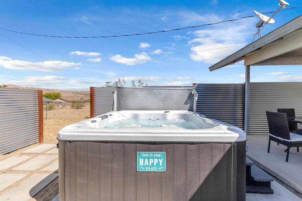 Welcome to this beautiful home in the picturesque High Desert town of Yucca Valley. Situated on a spacious lot, the property features stunning mountain views, a two-car garage, ample front parking, and a convenient circular driveway. Inside, you'll find a bright and spacious living room with brand-new carpet and fresh paint throughout the home. There is also an option for a wood-burning fireplace setup. The kitchen is generously sized and updated with freshly painted cabinets, new cabinet doors, and brand-new drawers.This home offers 3 bedrooms and 2 bathrooms, providing comfortable living space. The backyard includes luxurious jacuzzi with its own fenced area, along with partial fencing across the property for added flexibility. Conveniently located just minutes from shopping and dining, including Walmart Supercenter and The Home Depot, and a short drive to Joshua Tree National Park, this home offers both convenience and scenic desert living.
