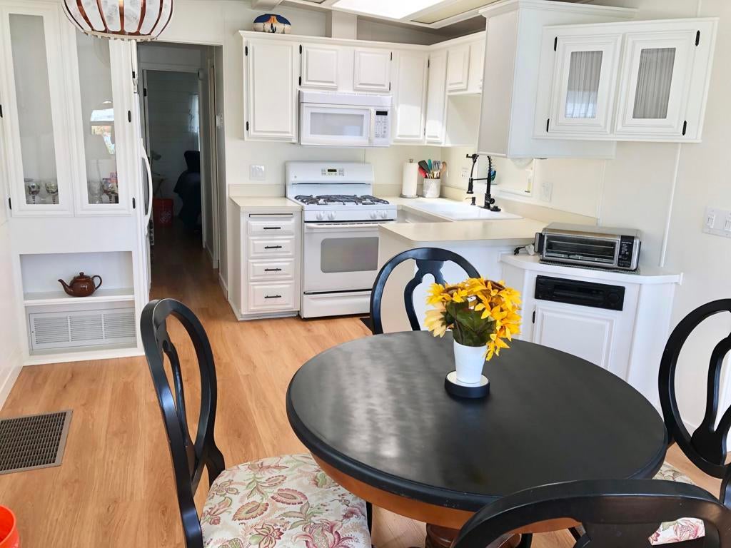 Stunning water view with pergola and deck, great for outdoor living!Convenient laundryoom and brand new central HVAC with many upgrades!Sky Valley Resort is an ALL AGED family park with many amenities. 13 hot spring mineral pools, pickleball, tennis, fitness center, walking trails, activities and events in high season and so much more! Space rent is $1020 per month and NO HOAs.