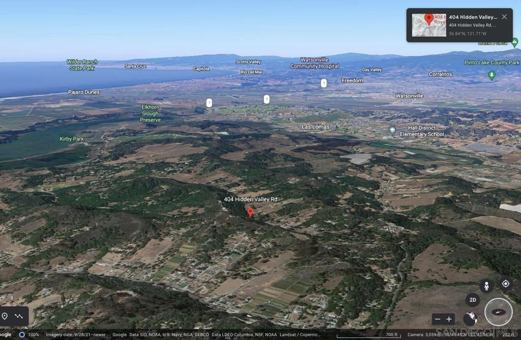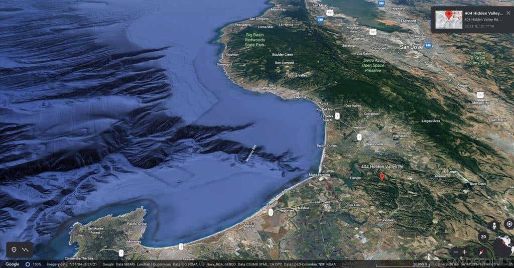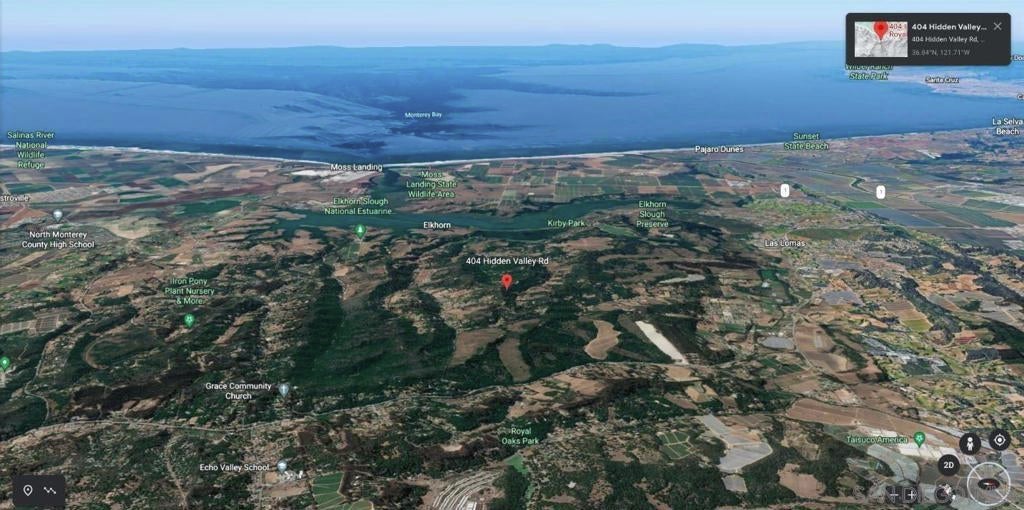 Hilltop panoramic view every direction including the entire Monterey Bay. Fully furnished 6 month lease minimum. Located bull's-eye in just about the dead center between Santa Cruz and Monterey and sits in a beautiful 3.45-acres of oak studded land at the hilltop with an aerie 360-degree view setting. It has a private driveway, soaring ceilings in the living areas and, lots of large windows that flood the rooms with light and optimal views, perfectly positioned to offer unobstructed views of Monterey Bay, the surrounding mountains, the big agricultural valleys, and distant lights that suggest a shore vacation. Commute to Silicon Valley via HWY 101 or HWY 17 with or without hybrid work schedules! It’s on top of the world at an elevation of over 550 feet-nobody’s looking down on you as it sits on one of the highest points in the area. Set less than 5 miles inland the views extend to the entire Monterey Bay and includes the Elkhorn National Estuarine Reserve, Monterey, Santa Cruz, the surrounding hills/mountains and the Salinas Valley, which lights up at night and where John Steinbeck lived, the properties living spaces take in the spectacular, everchanging ocean and skyline in its entirety. Breathtaking panoramic nighttime views Monterey, Seaside/Marina, Capitola, and Santa Cruz all suggesting a shore vacation and shimmering lights of the Salinas Valley, Watsonville, & Moss Landing too. Perhaps you'll see a Cruise Ship. Monterey is a tendering port, meaning it has no docking facilities. Six months or more lease. Vacation or telecommute hybrid work-blend of office/remote work! House was designed to take advantage of the panoramic view! Vacation or telecommute hybrid work-blend of office and remote work! Panoramic view to the east is of Monterey framed by the lush Salinas Valley with the Santa Lucia Mountains beyond and Monterey Bay to the right. At the far end of Cannery Row just after the tip of Monterey at Lovers Point be sure to visit the Monterey Bay Aquarium. Later perhaps dine at one of the restaurants like the Chart House on Cannery Row, putting the best possible face on the property, the roof angle, wood siding/color and large amount of glass provide a similar look. Monterey is a tendering port, meaning it has no docking facilities (wharf or quay) for large vessels. Cruise ships anchor in front of the harbor and their passengers are transported / ferried to the town via tender boats! You will certainly see research, pleasure and fishing boats and farming activity. Salinas is known as the "Salad Bowl of the World" for its large, vibrant agriculture industry. It was the hometown of writer and Nobel laureate John Steinbeck (1902–68), who set many of his stories in the Salinas Valley and Monterey. Watsonville is famous for strawberries and Castroville for artichokes! Carmel and Pebble Beach for beautiful beaches and golf and Big Sur beyond! The panoramic view to the west is of Monterey Bay and in the distance beautiful beaches at Capitola with colorful buildings right next to the ocean, Pleasure Point and LIghthouse Point. Lighthouse Point features a surfing museum in a lighthouse & is the location of the famous surfing spot Steamer Lane, Santa Cruz. San Jose Airport is approximately 55 mins and 1 hr 20 mins to San Francisco Airport SFO both North on HWY 101! Six months or more lease. Panoramic Monterey Bay and surrounding mountain views and, at night the glittering distant lights from the towns along the shore all, suggesting a shore vacation! Elkhorn Slough lies in the middle of the crescent shaped Monterey Bay near Moss Landing Harbor.With counts exceeding 100 animals, Elkhorn Slough has the highest concentration of southern sea otters on the California coast. It is in this estuary habitat that researchers have observed sea otter behavior not seen in other sea otter populations. Hilltop panoramic view in every direction including the entire Monterey Bay. Fully furnished 6 month lease minimum. Located bull's-eye in just ...