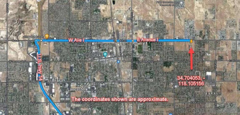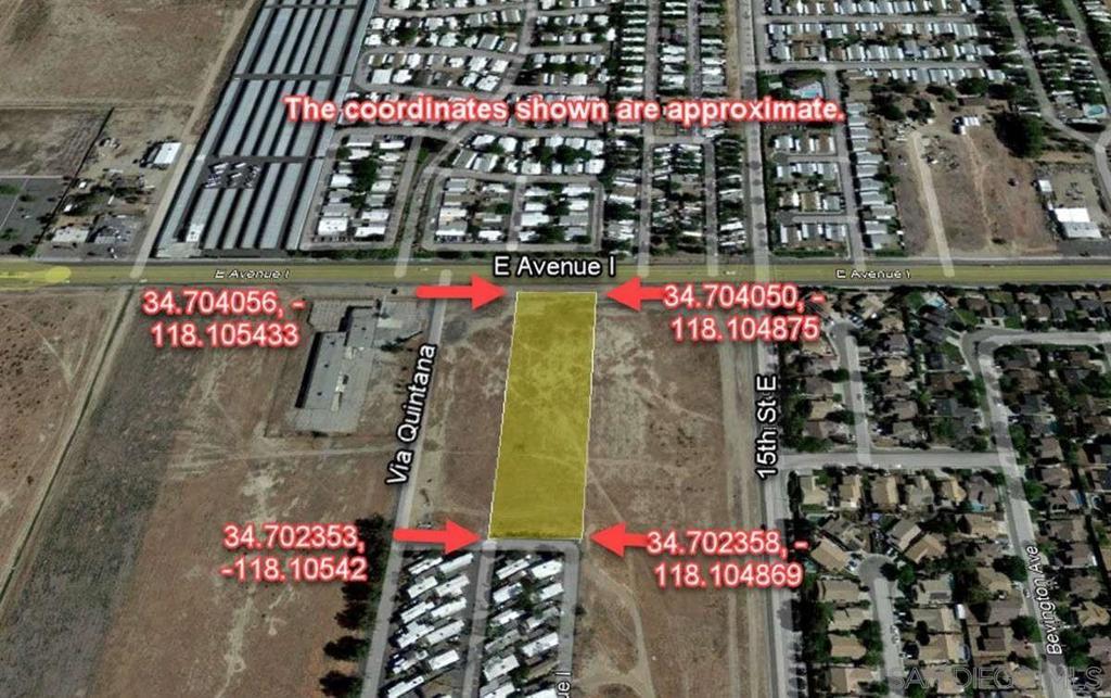 Very attractive 2.4 acres MDR zoned land available in Lancaster, surrounded by significant development potential. Lancaster Planning zoned this lot MDR (Medium Density Residential) for 6-15 units per acre (more units may be allowed). Not many MDR lots are available in Lancaster, making this lot a desirable investment/develop. asset. This area of Lancaster underwent significant development. APN 3147-001-039, located right on E Avenue I (paved), and between Via Quintana & 15th St E. The nearest HWYs are 14 and 138. Lancaster is in the Antelope Valley, 70 miles North of LA.