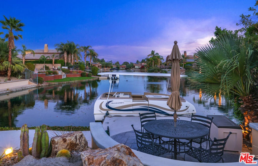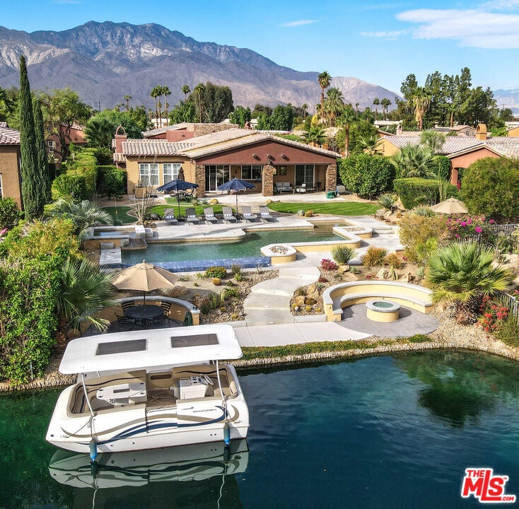 Celebrate holidays in Luxury on the Lake in exclusive gated community of Santo Tomas in Rancho Mirage. This lakefront private resort luxury home offers unobstructed lake and mountain Views. The home is recently upgraded with no detail overlooked. A new kitchen with quartz countertops, a farmhouse sink, stainless steel gas cooktop, and a large island, plus a breakfast/living area all overlooking the Lake & backyard. All bedrooms have new wall mounted flatscreen TV's, new porcelain tile wood floors, new furniture and LR with gas fireplace. Lakefront entertainment area with a dining area, gas firepit with built-in seating, and a cantilevered concrete dock to launch your paddleboard, canoe, or kayak. A covered Lakeview porch to eat or relax as there is an island stainless steel barbeque next to a 3-hole putting green. Swim in a newer Pebble-Tec pool with a stacked stone waterfall spa and beach entry. Close to all great shopping, restaurants, Agua Caliente Casino, The River, and El Paseo.
