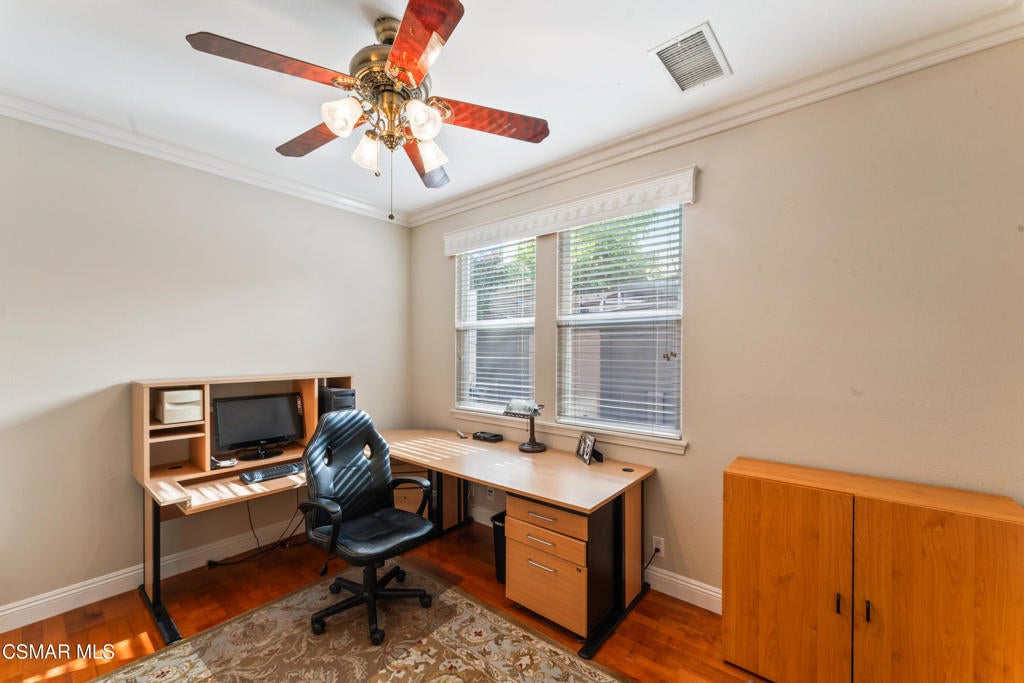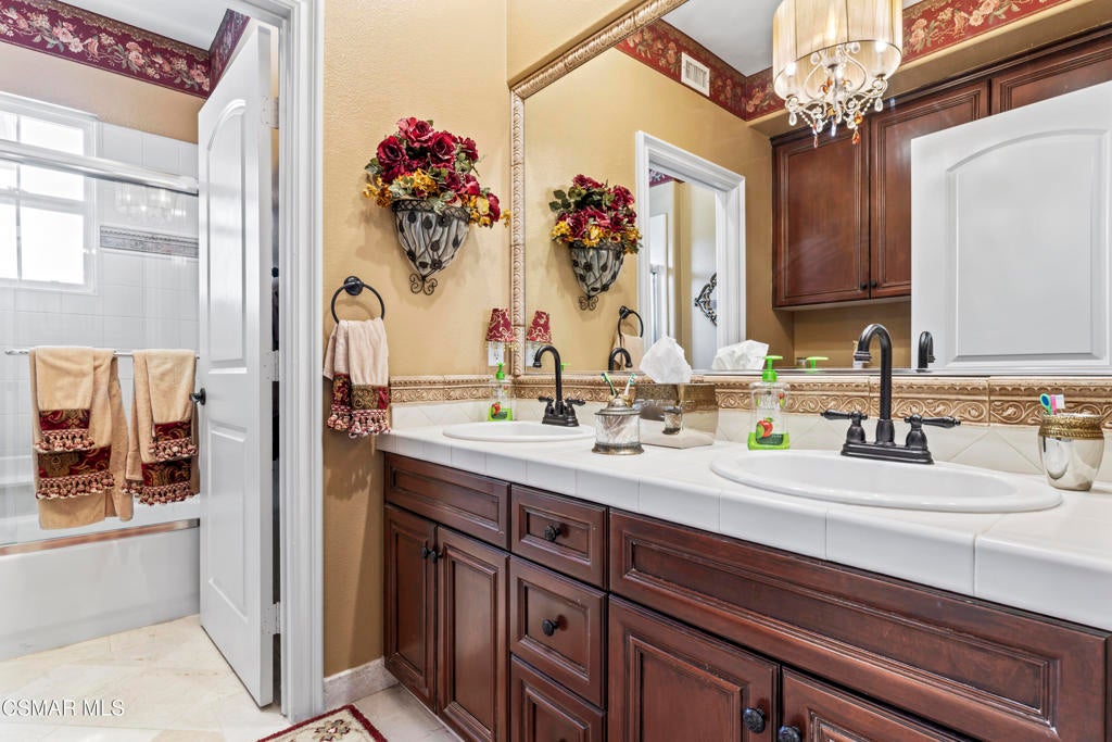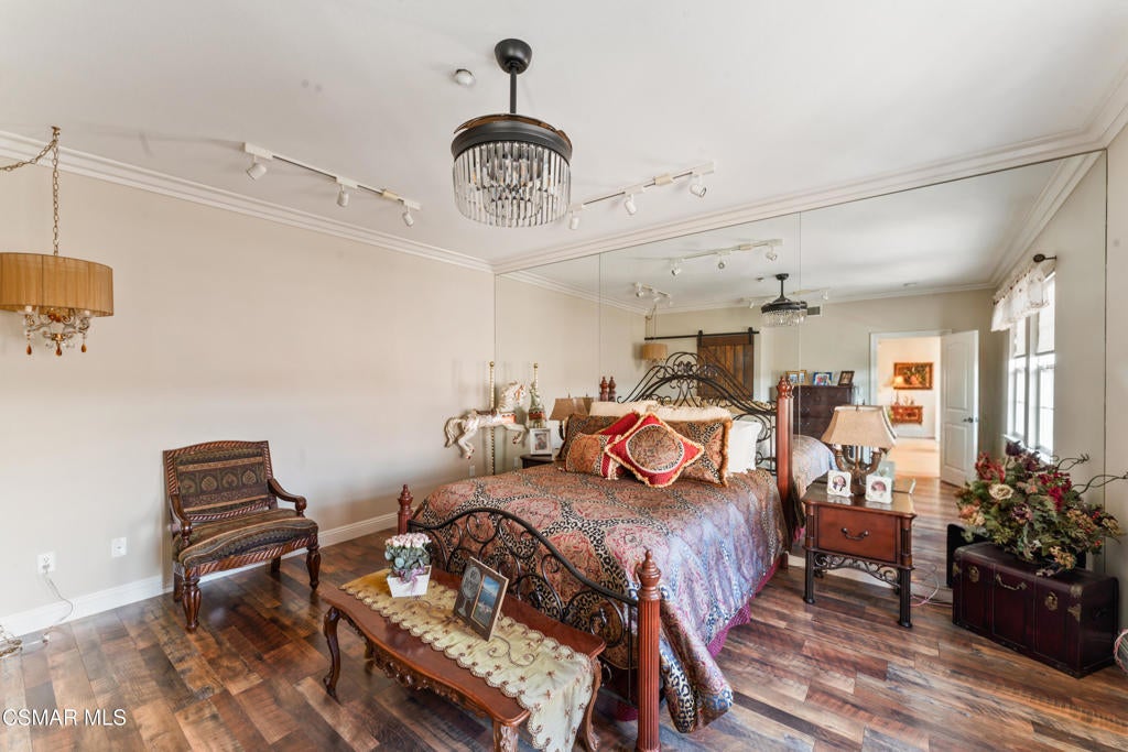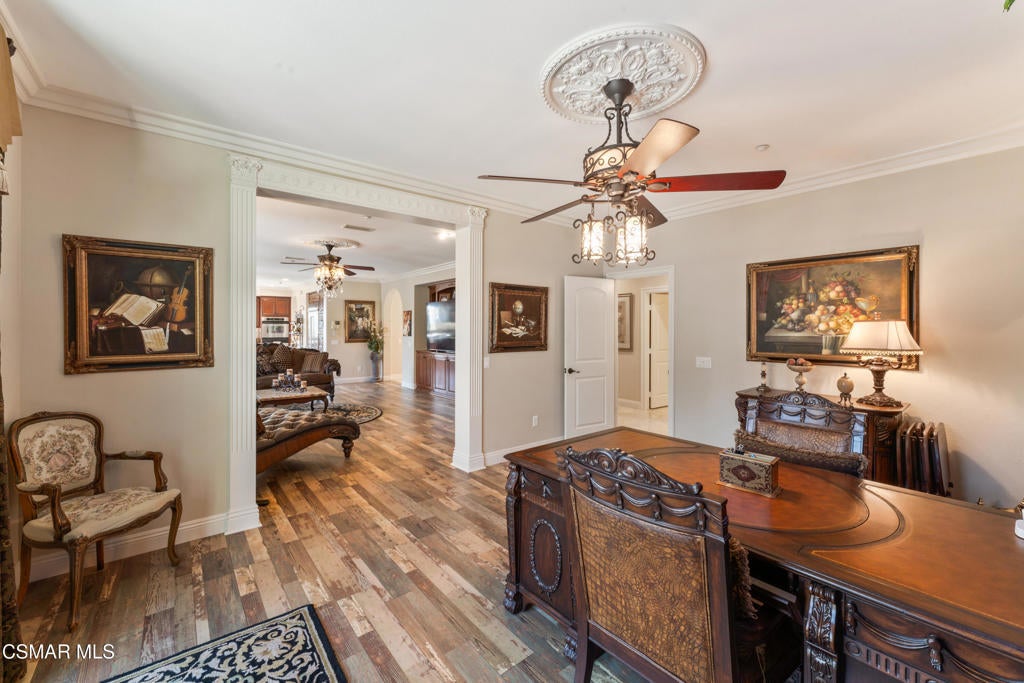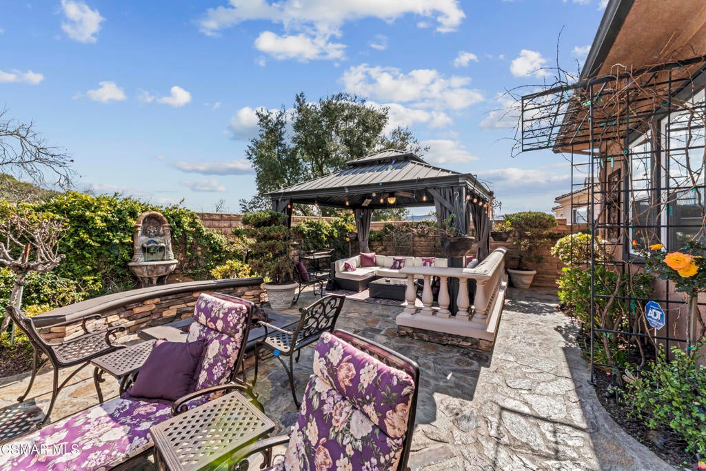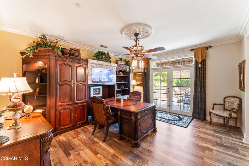Freshly painted interior move-in ready with a $126,000 price reduction. From the moment you enter this prestigious gated community of Serenata / Trieste tract. and step through a custom iron front door into the dramatic foyer. You will be dazzled by the detailed craftmanship with no expenses spared. You are greeted with 2 formal sitting areas, one with a built-in wet bar for hosting the best parties. The other, a living room has a cozy fireplace surround. The arched hallway opens up to a vaulted ceiling with an adjacent walk-in temperature-controlled wine cellar, powder bathroom for guests, and a view of a private water featured courtyard. As you flow into the formal dining room, perfect setting for your special events it's as elegant as it gets. A large butler's pantry connects into the chef's gourmet kitchen which features a massive, hooded center island, breakfast bar with all stainless-steel high-end appliances, granite countertops and a large eat-in area. The family room is an open concept where you can entertain your guest and gather around the fireplace. In front of a built-in theater entertainment center with 2 large adjoining rooms. The laundry room has a countertop and plenty of cabinets for storage. From there you can walk out into the two-car finished garage with built in cabinetry and a third car tandem space 123 Sq Ft ''not included'' in total square footage of home This has been converted into office/maid quarters. The second level features a large landing with 5 spacious bedrooms, including a magnificent primary suite breathtaking view of the Regan Library across rolling hills. The ensuite bathroom includes a jacuzzi soak tub and step-in shower with 2 resting benches. There are also His and Hers walk-in cedar lined closets with custom cabinet units. The back yard is breathtaking, stunning and perfect for entertaining. It has all to offer including an auxiliary solar heated pool/spa, built- in barbeque, fire pit, Pizza oven. Koi pond with waterfall, a cabana with fans misters, heat lamps, and lastly, a retractable awning for outside dinning and shade. That's right it has it all! This home offers approximately 4,777 square feet. five bedrooms, five bathrooms and the luxurious open floor plan feature high 9-12-foot ceilings with crown moldings. There is also custom millwork throughout including solid interior doors, custom cabinetry, window coverings, natural stone, marble, wood flooring throughout and extensive hard scape. With immediate and future savings in mind, there's an owned Solar System with back up battery This is magnificent well-maintained home with low HOA dues, easy access to freeways. convenient shopping, beautiful parks and walking trails.