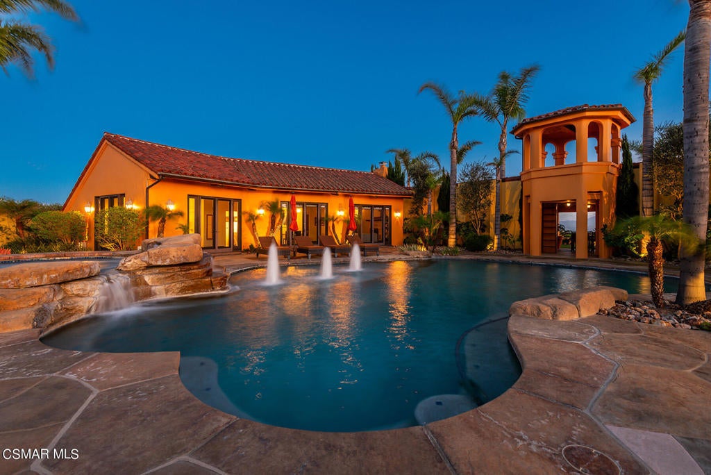An absolutely awe inspiring masterpiece estate sitting atop over 46 private acres in the highly desirable small gated community of La Loma Ranch. Ideally set behind a private gate and up a long driveway sits this remarkable one of a kind Mediterranean villa boasting the most incredible 360 degree jet liner views in Ventura county. The unobstructed panoramic views of the ocean, mountains and valley below are truly second to none! The primary residence spans 5448 square feet and there is also a 1000 square foot detached guest house, ranchers quarters with kitchen and bathroom, barn and garages for approximately 26 cars. The primary home is graced with an impressive two story entry with curved wrought iron staircase. There is also a theater, office, beautiful center island kitchen and a tremendous primary suite with two balconies, vaulted ceilings, hardwood floors, fireplace and a spa like bathroom with jetted tub, steam shower and fireplace. There are also 3 additional bedrooms in the main home. The detached guest house has one bedroom, living room, kitchen, fireplace, eating area and beautiful bathroom. The resort quality yard provides a pebble tech pool and spa with water features, lush mature landscape and explosive views from everywhere! This true compound villa is a one of one! There is a new approximately 1/2 acre graded pad plus prime lower level grounds ideal for tennis court or go kart tracks, epic massive garages including one with a second story expansive office space and so much more! This is absolutely the premier view ranch estate in highly desirable Somis! A very special offering!