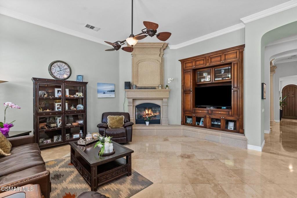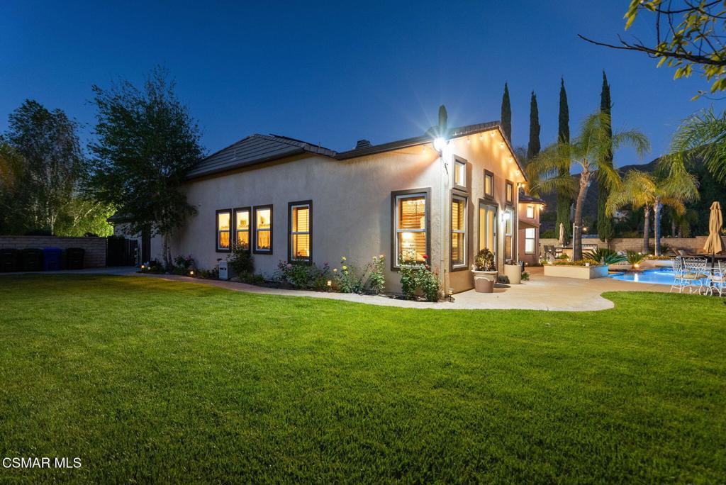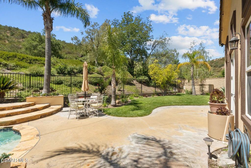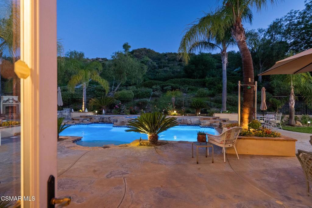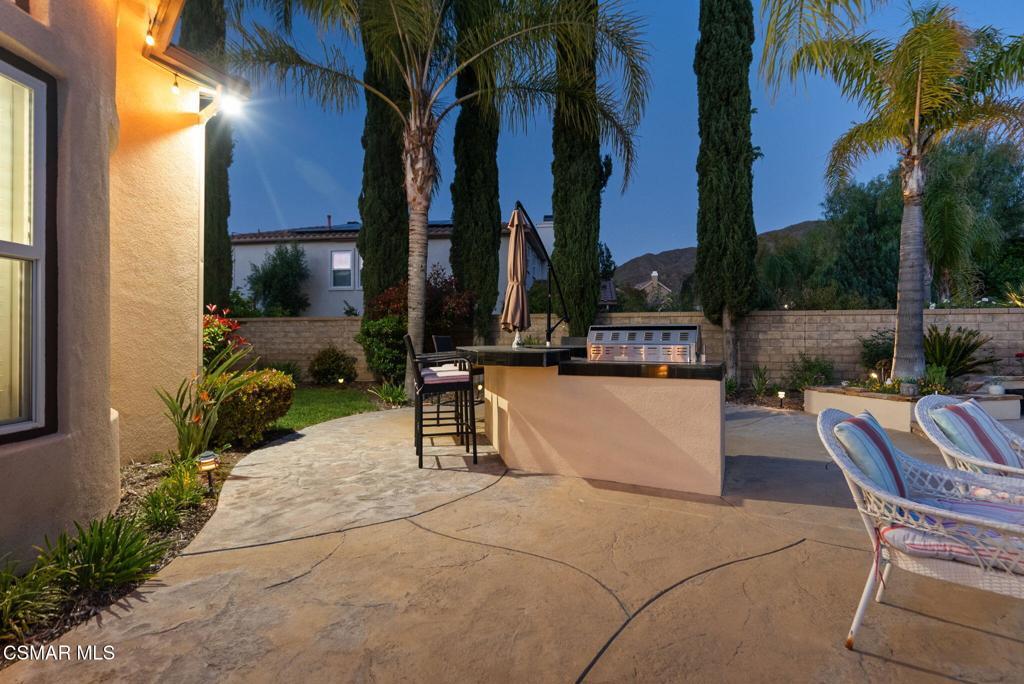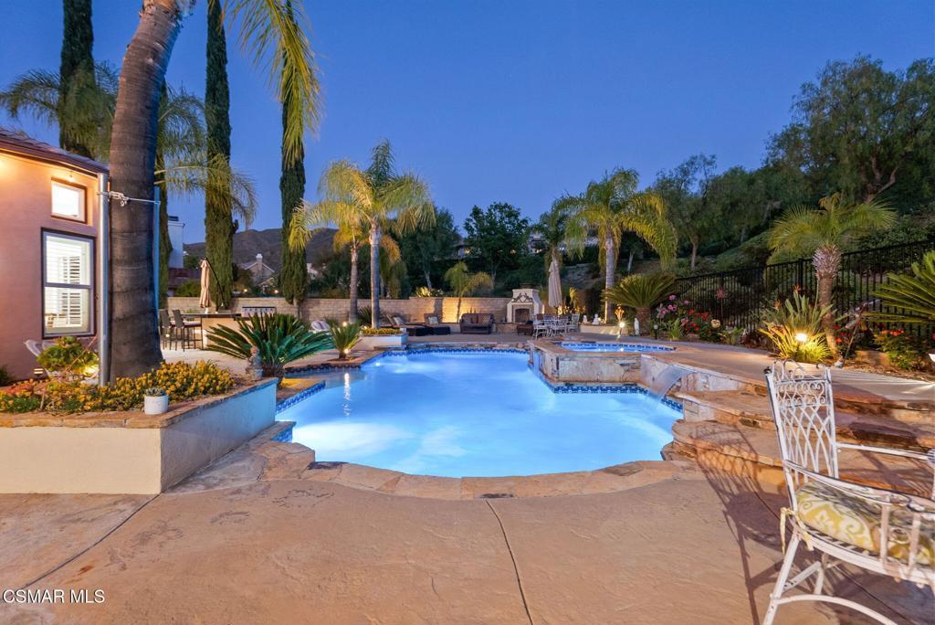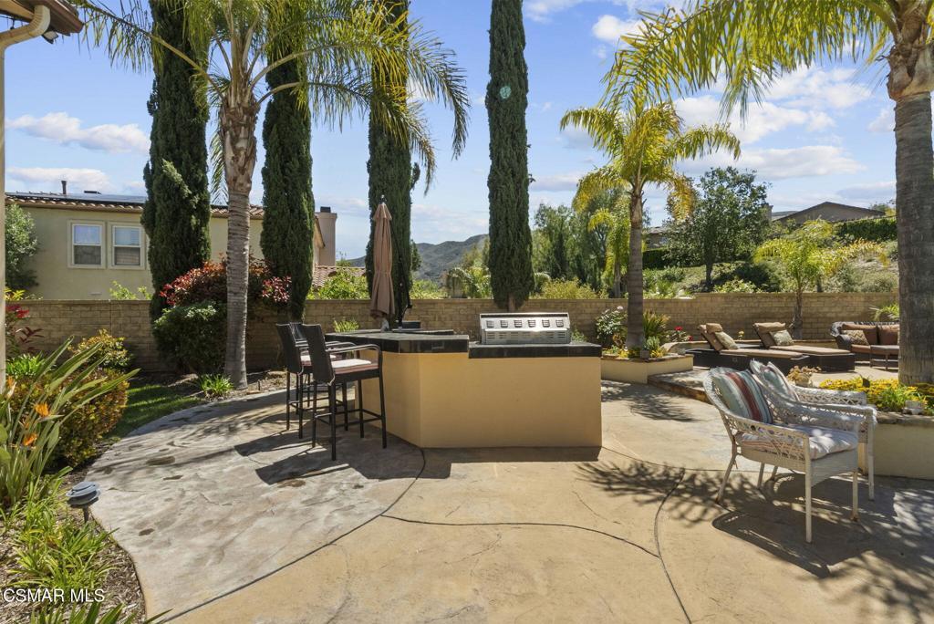 Rare Single-Story Estate with Casita in Prestigious Robinson RanchNestled on a quiet cul-de-sac in the highly sought-after Robinson Ranch Community, this rare single-story home offers luxurious living, elegant design, and exceptional outdoor amenities. Featuring 3 spacious bedrooms, 3 full bathrooms, and a private detached casita, this property is an entertainer's dream and a true sanctuary.Step through a gated courtyard with a tranquil fountain into a home rich with high-end finishes, including travertine and hardwood flooring, crown molding, and stately architectural stone columns. The gourmet chef's kitchen is beautifully appointed with granite countertops, stainless steel appliances, double ovens, a walk-in butler's pantry, and a large center island--perfect for culinary enthusiasts and entertainers alike.The open-concept layout is adorned with plantation shutters and filled with natural light. The expansive master suite features a built-in fireplace, French doors leading to the backyard, a generous walk-in closet, and a luxurious en-suite bathroom complete with a jetted tub and a spacious walk-in shower. The secondary bedrooms with a Jack & Jill bathroom, ideal for families or guests.Outside, enjoy a resort-style backyard with a stunning heated saltwater pool and spa with cascading waterfalls, an outdoor fireplace and seating area, a built-in BBQ island with refrigerator, and no rear neighbors--offering unmatched privacy and plenty of space for gatherings.Additional highlights include a 3-car garage with custom storage, a tankless water heater, leased solar system, and beautifully maintained landscaping. The detached casita provides endless possibilities for guest accommodations, an office, or creative space.Located close to award-winning schools, shopping, dining, and with easy access to the freeway, this exceptional home truly has it all. Come experience the perfect blend of comfort, elegance, and California outdoor living.
