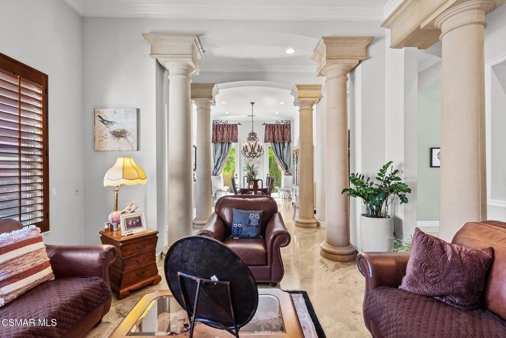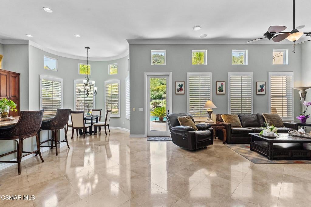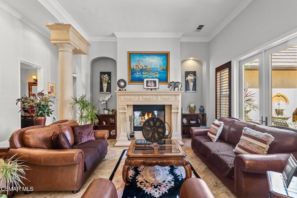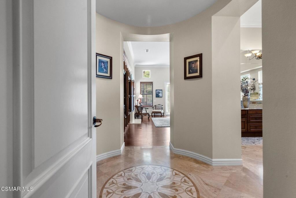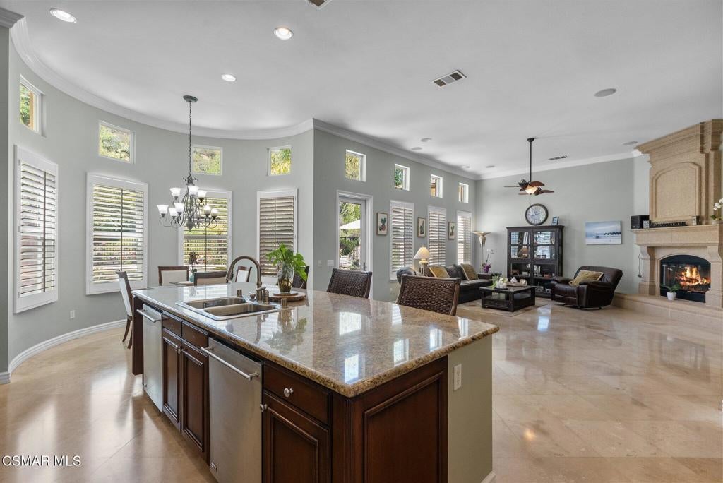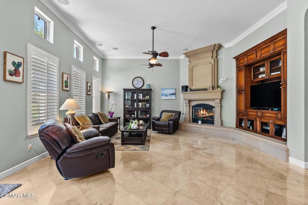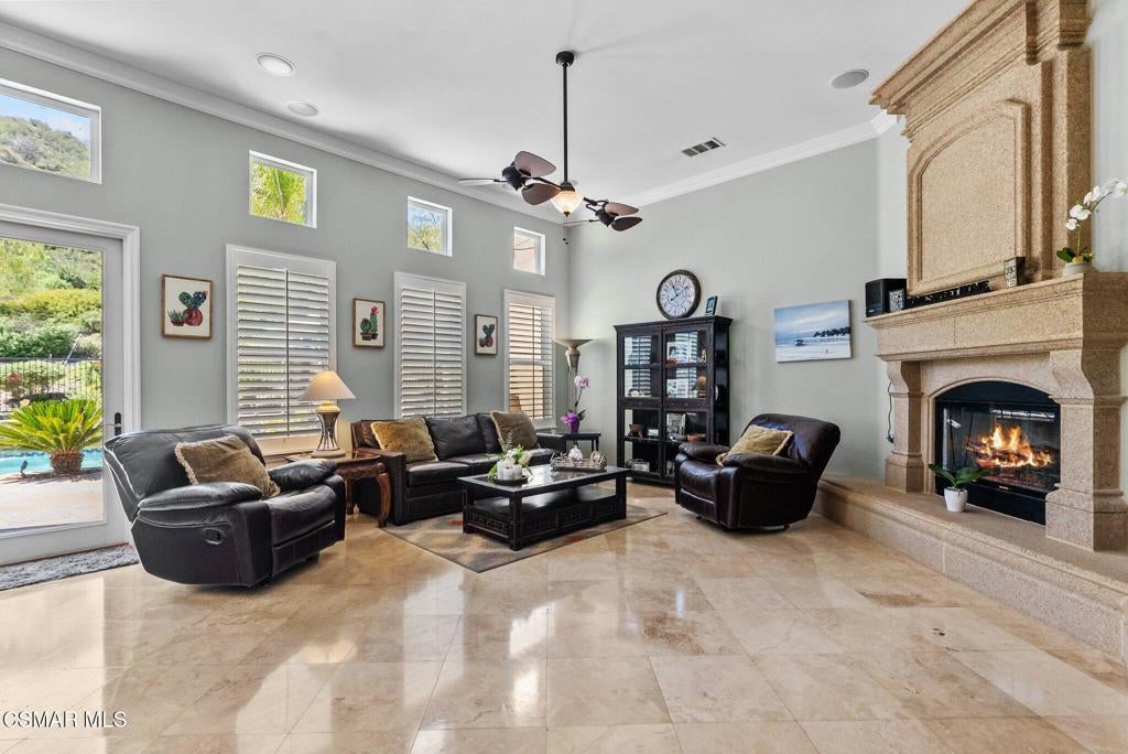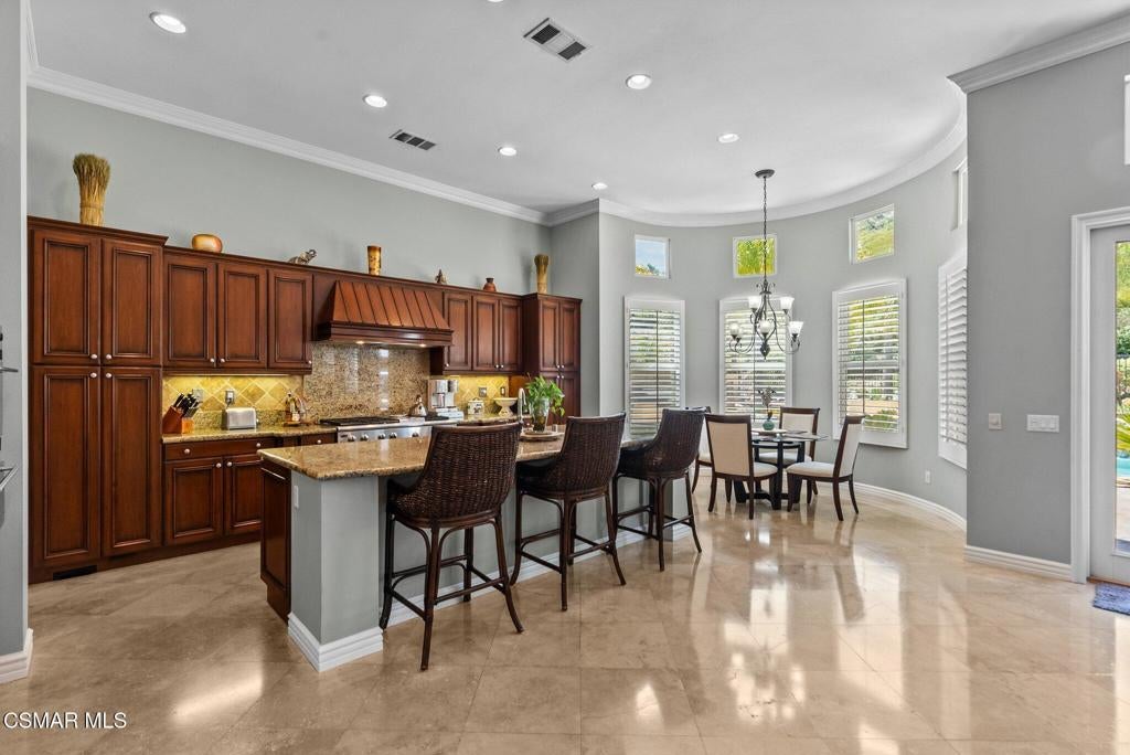 Rare Single-Story Estate with Casita in Prestigious Robinson RanchNestled on a quiet cul-de-sac in the highly sought-after Robinson Ranch Community, this rare single-story home offers luxurious living, elegant design, and exceptional outdoor amenities. Featuring 3 spacious bedrooms, 3 full bathrooms, and a private detached casita, this property is an entertainer's dream and a true sanctuary.Step through a gated courtyard with a tranquil fountain into a home rich with high-end finishes, including travertine and hardwood flooring, crown molding, and stately architectural stone columns. The gourmet chef's kitchen is beautifully appointed with granite countertops, stainless steel appliances, double ovens, a walk-in butler's pantry, and a large center island--perfect for culinary enthusiasts and entertainers alike.The open-concept layout is adorned with plantation shutters and filled with natural light. The expansive master suite features a built-in fireplace, French doors leading to the backyard, a generous walk-in closet, and a luxurious en-suite bathroom complete with a jetted tub and a spacious walk-in shower. The secondary bedrooms with a Jack & Jill bathroom, ideal for families or guests.Outside, enjoy a resort-style backyard with a stunning heated saltwater pool and spa with cascading waterfalls, an outdoor fireplace and seating area, a built-in BBQ island with refrigerator, and no rear neighbors--offering unmatched privacy and plenty of space for gatherings.Additional highlights include a 3-car garage with custom storage, a tankless water heater, leased solar system, and beautifully maintained landscaping. The detached casita provides endless possibilities for guest accommodations, an office, or creative space.Located close to award-winning schools, shopping, dining, and with easy access to the freeway, this exceptional home truly has it all. Come experience the perfect blend of comfort, elegance, and California outdoor living.