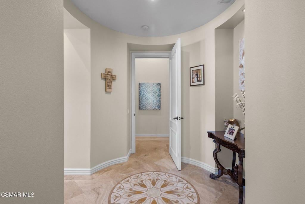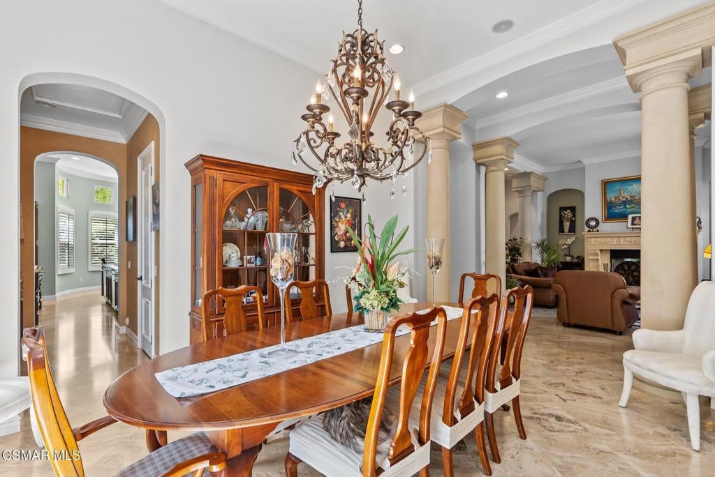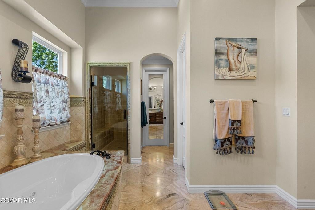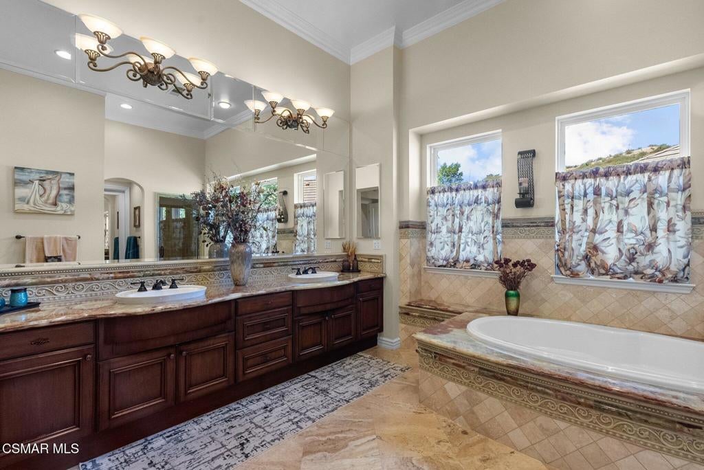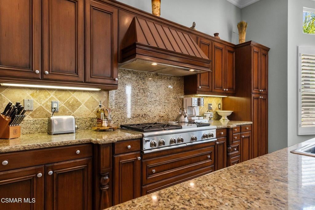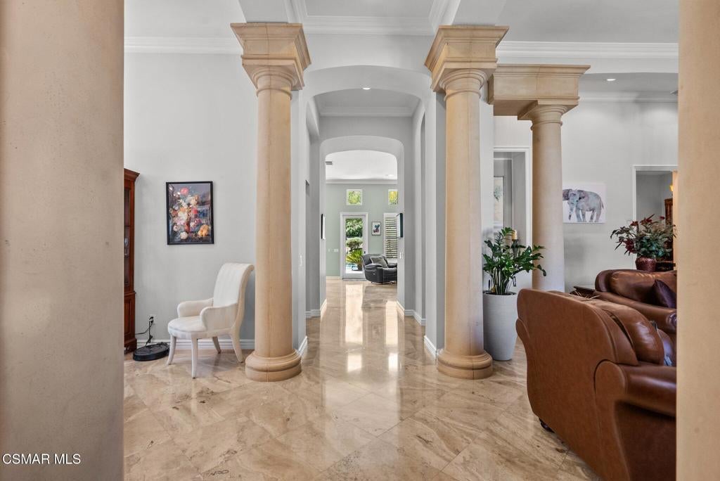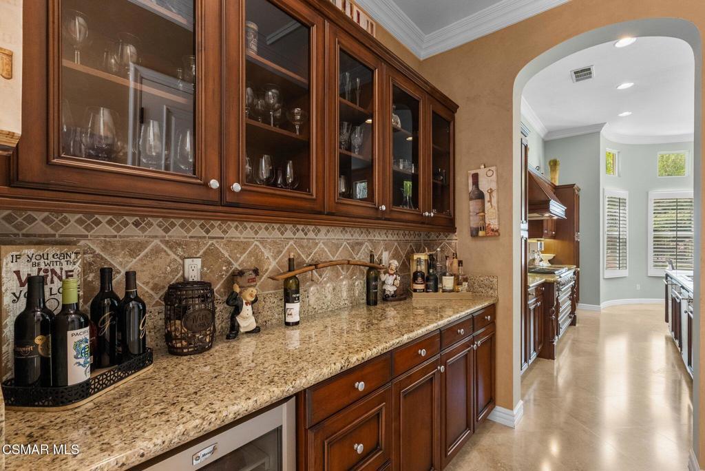 Rare Single-Story Estate with Casita in Prestigious Robinson RanchNestled on a quiet cul-de-sac in the highly sought-after Robinson Ranch Community, this rare single-story home offers luxurious living, elegant design, and exceptional outdoor amenities. Featuring 3 spacious bedrooms, 3 full bathrooms, and a private detached casita, this property is an entertainer's dream and a true sanctuary.Step through a gated courtyard with a tranquil fountain into a home rich with high-end finishes, including travertine and hardwood flooring, crown molding, and stately architectural stone columns. The gourmet chef's kitchen is beautifully appointed with granite countertops, stainless steel appliances, double ovens, a walk-in butler's pantry, and a large center island--perfect for culinary enthusiasts and entertainers alike.The open-concept layout is adorned with plantation shutters and filled with natural light. The expansive master suite features a built-in fireplace, French doors leading to the backyard, a generous walk-in closet, and a luxurious en-suite bathroom complete with a jetted tub and a spacious walk-in shower. The secondary bedrooms with a Jack & Jill bathroom, ideal for families or guests.Outside, enjoy a resort-style backyard with a stunning heated saltwater pool and spa with cascading waterfalls, an outdoor fireplace and seating area, a built-in BBQ island with refrigerator, and no rear neighbors--offering unmatched privacy and plenty of space for gatherings.Additional highlights include a 3-car garage with custom storage, a tankless water heater, leased solar system, and beautifully maintained landscaping. The detached casita provides endless possibilities for guest accommodations, an office, or creative space.Located close to award-winning schools, shopping, dining, and with easy access to the freeway, this exceptional home truly has it all. Come experience the perfect blend of comfort, elegance, and California outdoor living.