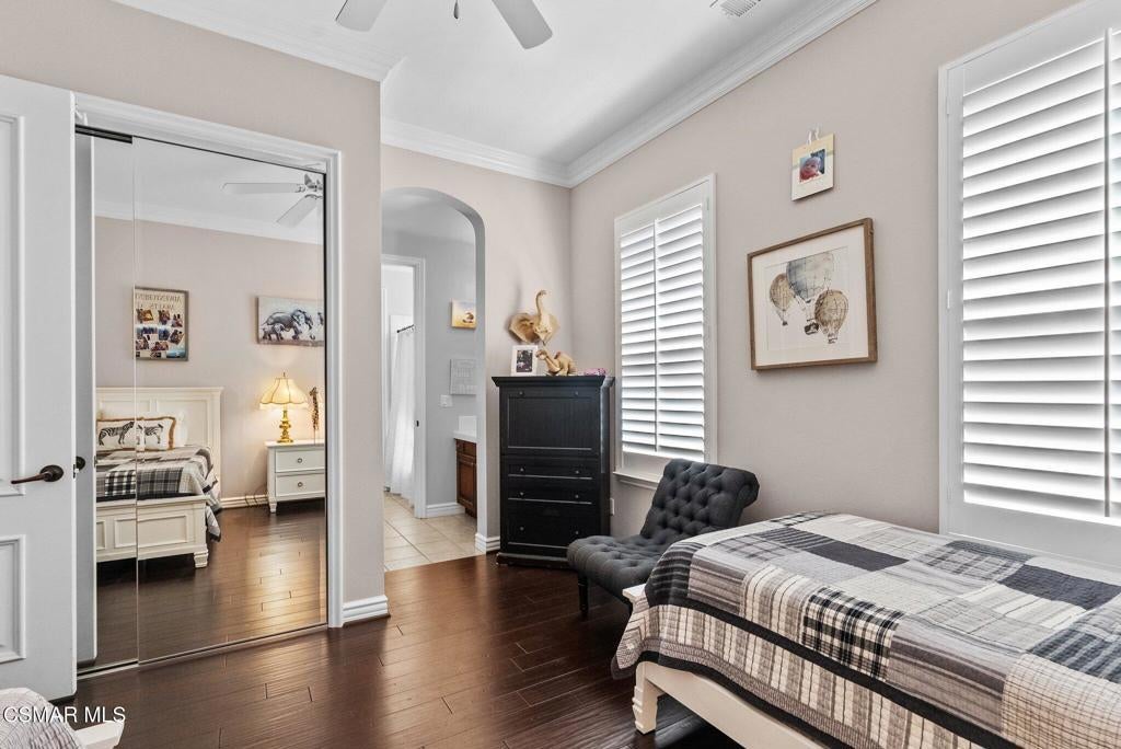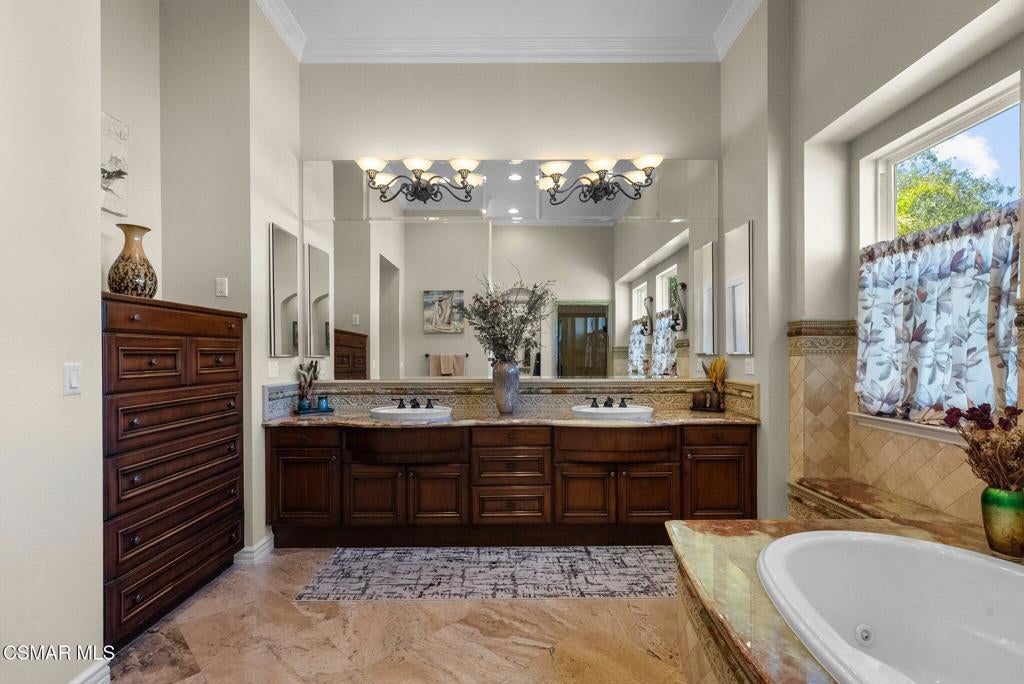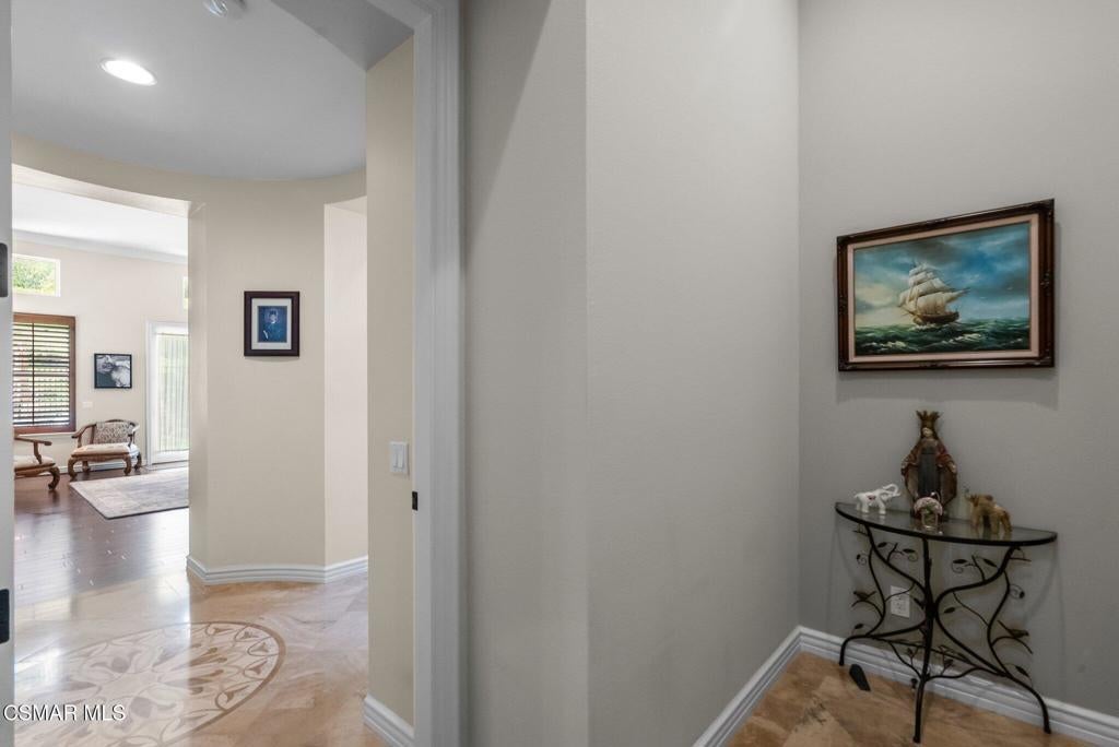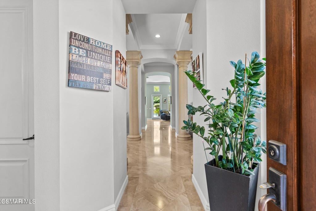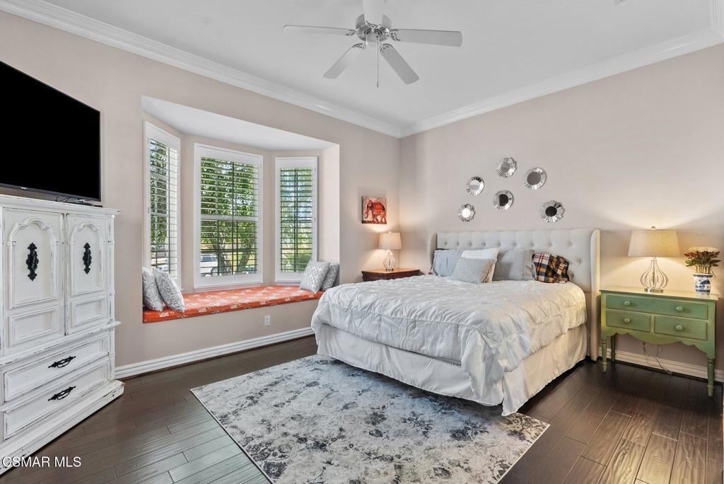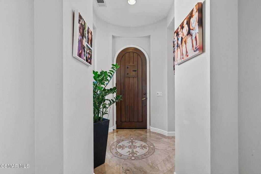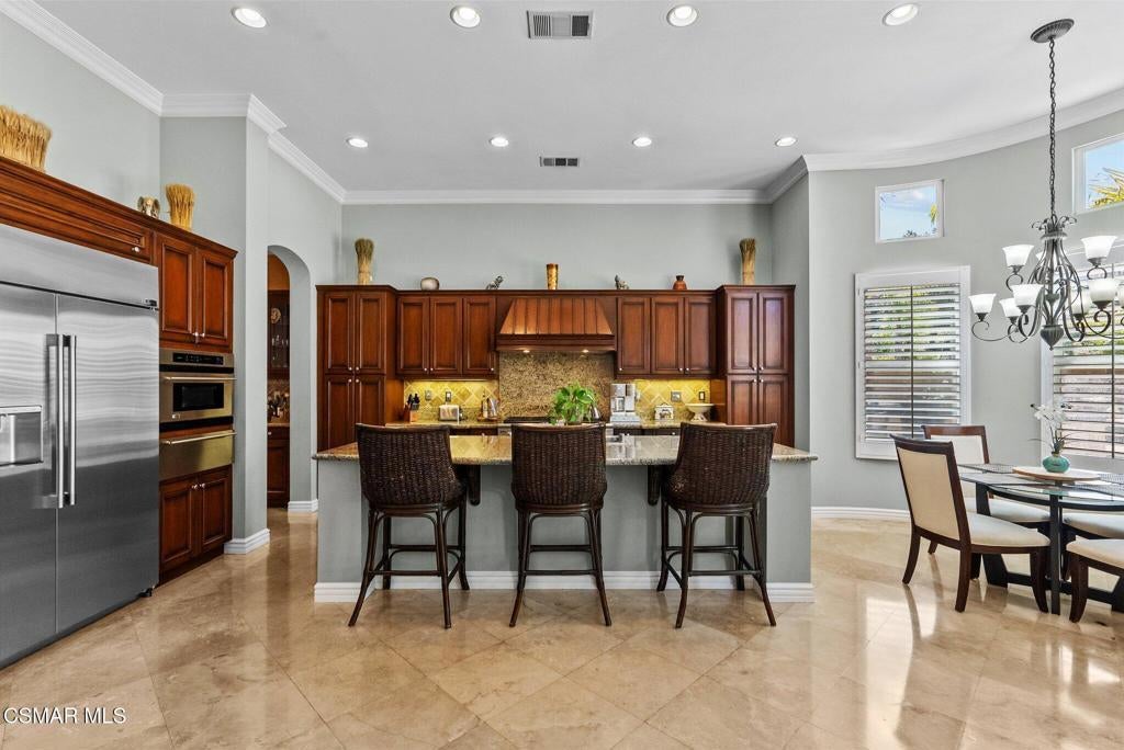 Rare Single-Story Estate with Casita in Prestigious Robinson RanchNestled on a quiet cul-de-sac in the highly sought-after Robinson Ranch Community, this rare single-story home offers luxurious living, elegant design, and exceptional outdoor amenities. Featuring 3 spacious bedrooms, 3 full bathrooms, and a private detached casita, this property is an entertainer's dream and a true sanctuary.Step through a gated courtyard with a tranquil fountain into a home rich with high-end finishes, including travertine and hardwood flooring, crown molding, and stately architectural stone columns. The gourmet chef's kitchen is beautifully appointed with granite countertops, stainless steel appliances, double ovens, a walk-in butler's pantry, and a large center island--perfect for culinary enthusiasts and entertainers alike.The open-concept layout is adorned with plantation shutters and filled with natural light. The expansive master suite features a built-in fireplace, French doors leading to the backyard, a generous walk-in closet, and a luxurious en-suite bathroom complete with a jetted tub and a spacious walk-in shower. The secondary bedrooms with a Jack & Jill bathroom, ideal for families or guests.Outside, enjoy a resort-style backyard with a stunning heated saltwater pool and spa with cascading waterfalls, an outdoor fireplace and seating area, a built-in BBQ island with refrigerator, and no rear neighbors--offering unmatched privacy and plenty of space for gatherings.Additional highlights include a 3-car garage with custom storage, a tankless water heater, leased solar system, and beautifully maintained landscaping. The detached casita provides endless possibilities for guest accommodations, an office, or creative space.Located close to award-winning schools, shopping, dining, and with easy access to the freeway, this exceptional home truly has it all. Come experience the perfect blend of comfort, elegance, and California outdoor living.