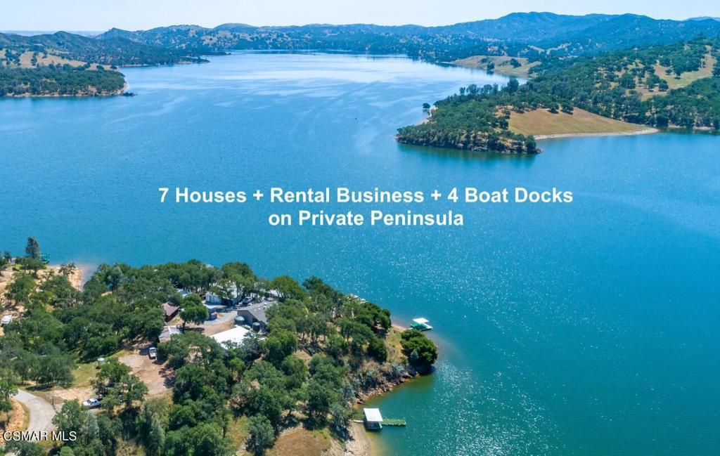 LAKEFRONT PENINSULA! 1 Property with 7 Houses, 5 Boat Docks on Lake Nacimiento in the beautiful Paso Robles Wine Country - If you dream of owning lake front property where you can vacation or spend time with all of your friends at one property, this is the place! Property sleeps 50+ people and comes furnished. If you want the huge benefit of income as well, the current owners will pass along the highly successful Turnkey Rental Business (Lakefront at Lands End) - Automated Proprietary Website @ Naci7.Com generates 90%+ of the rentals. Property has an experienced onsite manager. This private gated property is arguably the best location on the lake!SPECTACULAR one-of-a kind LAKE FRONT property! This 5 acre property, nestled behind a private gate, feels secluded and peaceful, yet is located on an ideal central location of Lake Nacimiento. In total, the homes have 18 bedrooms and 11.5 bathrooms. All homes have been updated, have spacious decks and beautiful lake views. Enjoy the convenience of having a private launch ramp on your property along with 5 covered boat parking spaces, and additional storage facilities. This property is truly a hidden gem and the details are far too numerous to list. The current owners have built a successful vacation rental business, which allows them to enjoy the property for personal use, as well as earn income. This property allows for immediate use, immediate operating income, and is currently operated with onsite caretakers. Owners have the flexibility to use one home or all, if they want to get away with a large group. Property can be enjoyed year round with activities such as boating, fishing, water sports, swimming, hiking, wine tasting, or simply relaxing on the deck and enjoying the incredible views. Located in the Central Coast, the Paso Robles wine country is known for its over 200 wineries. The location of this property on the lake is unique in that even when the lake has been as low as 20%, the water level in front of the property is still up to 60 feet deep. Details of the vacation business can be viewed at Naci7.com