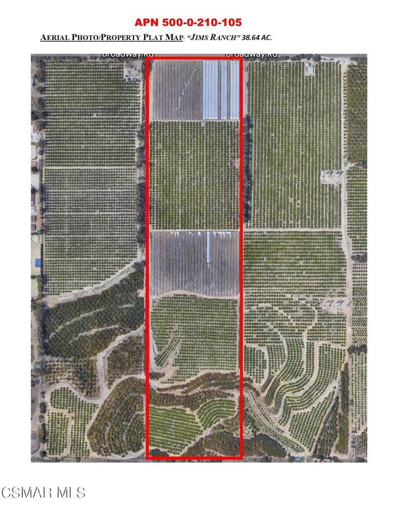 Nearly 40 acre agricultural gem, ripe with lemon and avocado trees is the perfect opportunity for investor, farmer or individual in search of a serene haven, nestled in the heart of Moorpark. Includes a second parcel, APN 500-0-130-030. Note: Agriculture land will likely not qualify for a conventional loan - consult with lender if needed.