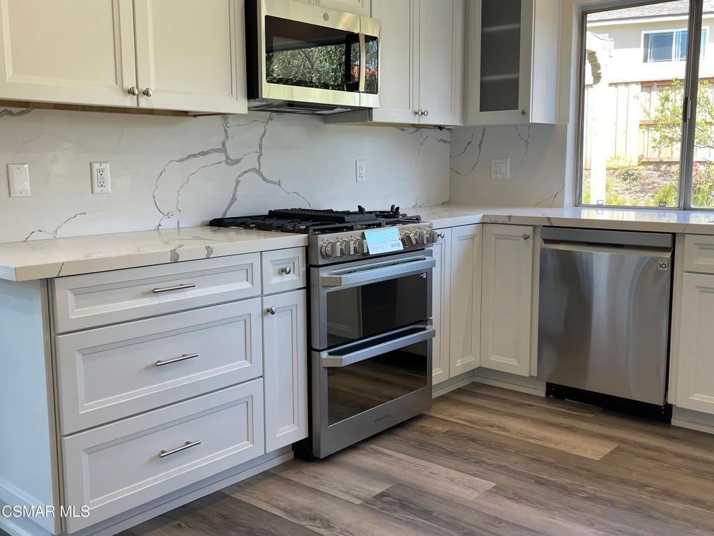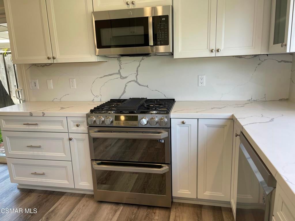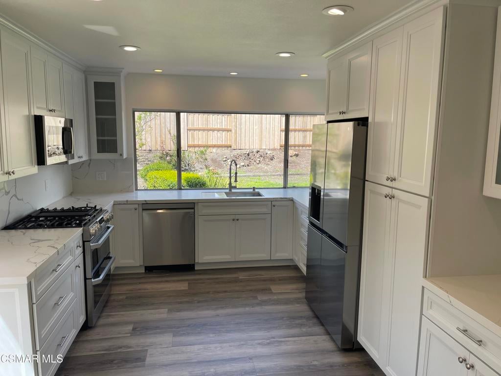 Welcome to this stunning two-story home in the highly desirable First Neighborhood of Westlake Village.This beautifully maintained residence features a fully remodeled kitchen with quartz countertops, soft-close pull-out cabinetry, and stainless steel appliances--perfect for those who love to cook and entertain.The home offers luxury vinyl flooring throughout, custom designer paint, and a flexible floor plan. All bedrooms are located upstairs, providing privacy and comfort. Owners are currently in the process of completely renovating both the Primary bath and the Secondary bath. Both baths will have dual sinks, new showers and new floors. Downstairs, you'll find a spacious family room complete with a cozy gas fireplace and a built-in wet bar--ideal for relaxing evenings or gathering with guests.Step outside to your own private backyard retreat, highlighted by a tranquil pond and cascading waterfall--a peaceful setting to unwind after a long day.As part of the First Neighborhood community, you'll also enjoy access to fantastic amenities including a sparkling community pool, lush greenbelts, and beautifully maintained common areas.Additional features include a three-car garage with a utility sink, gardener service included for added convenience.Available now--don't miss this opportunity to lease a beautiful home in one of Westlake Village's most sought-after neighborhoods!Some photos have been virtually staged.Property will be ready December 1, 2025!Please apply at the following link: https://apply.link/4pt8CAs