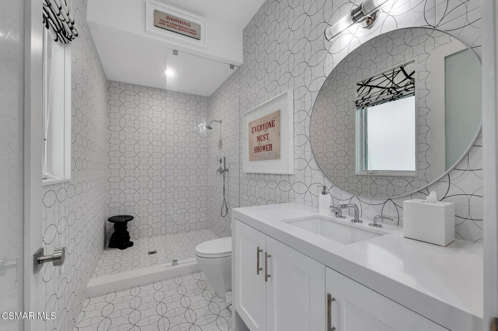 This is it!!!! One of the Most Stylish Homes in Sherwood - A True Masterpiece. Incredoble one acre lot with total privacy on the Best cul de sac in Lake Sherwood.... This extraordinary residence is one of Sherwood's most elegantly appointed homes and must be seen to be fully appreciated. Exquisite, high-end finishes are found throughout, including Calcutta Manhattan gray marble, Black Diamond quartzite, Titanium quartzite with a leathered finish, Fantasy Blue quartzite, and Zebra Striato Olimpico marble in the primary bath. The gourmet kitchen features Japanese Nano glass surfaces and is complemented by imported Murano glass chandeliers from Italy.Designer elements include wall coverings and drapery fabrics by Christian Lacroix and Kelly Wearstler, elevating every space with curated sophistication.The thoughtful floor plan includes five luxurious en-suite bedrooms, a stunning powder room, a private office, and a state-of-the-art home theater designed and installed by Wilshire Media. An impressive professional bar and entertainment room enhances the home's exceptional appeal.Situated on one of Sherwood's rare, usable one-acre lots (combining two parcels), the property is designed for both privacy and outdoor enjoyment. The resort-style backyard includes a beautifully renovated pool and spa with a full retractable cover, expansive patio overhangs, generous lawn areas, and multiple entertaining spaces. There are two separate large 2 car garages.Backing to 56 acres of open space known as Dickens Patch, this home offers unmatched privacy, breathtaking finishes, and a lifestyle of luxury in a truly stunning setting.