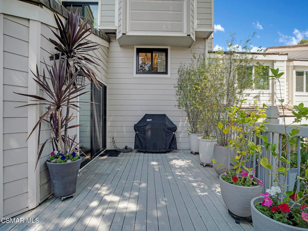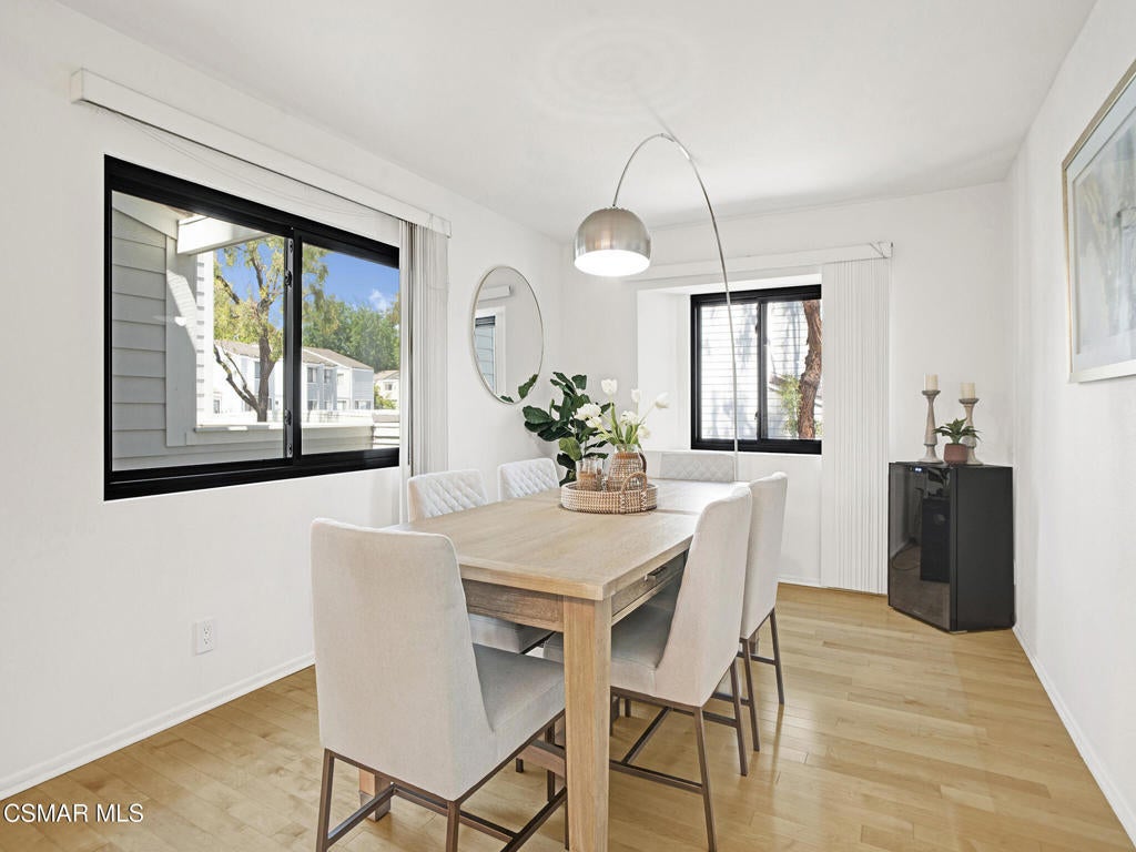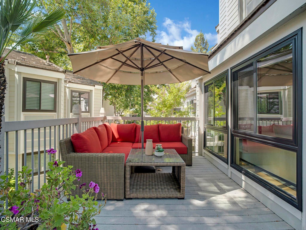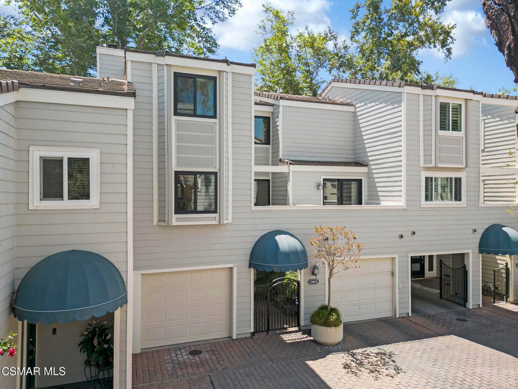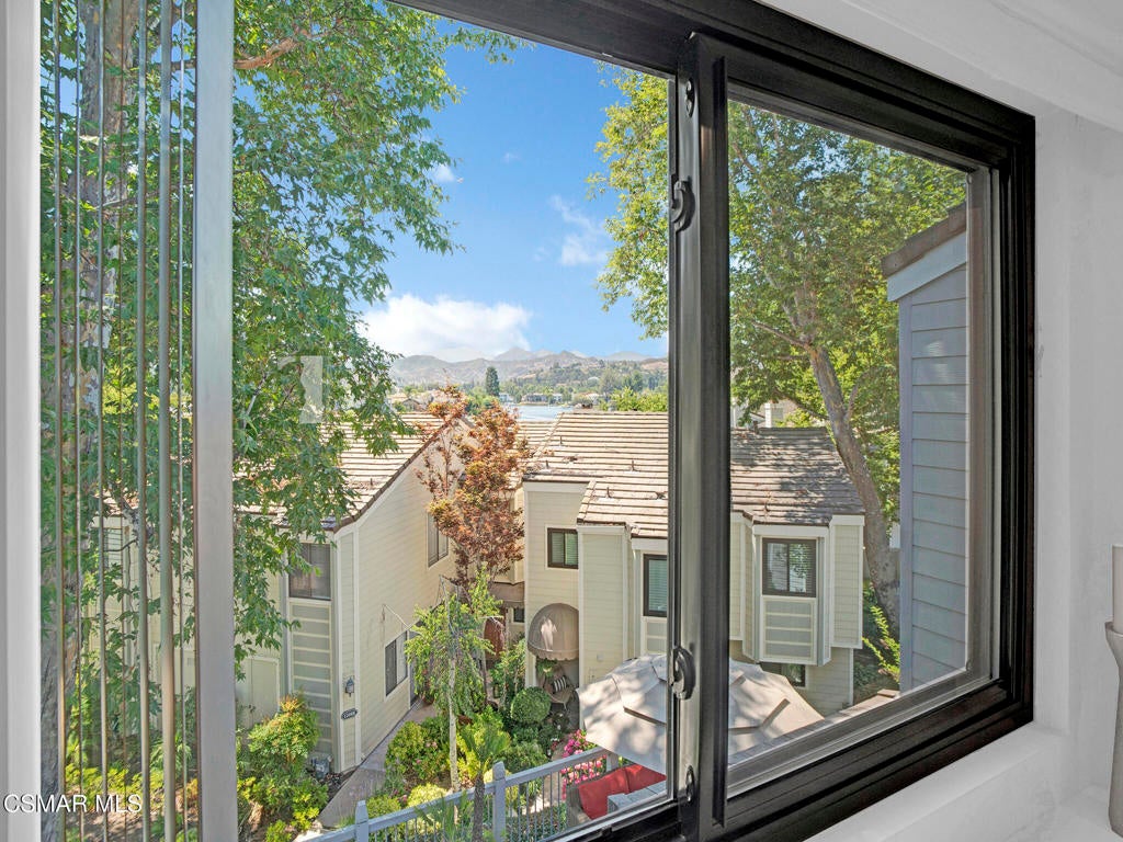 Welcome to this beautifully updated 2-bedroom, 2.5-bath townhome offering a perfect blend of modern design, natural beauty, and comfort. Ideally positioned to capture stunning mountain and lake views from the bedrooms, this home delivers a serene Westlake Village lifestyle. The interior features a modern kitchen with stylish laminate cabinetry and a sleek, contemporary design ,ideal for both daily living and entertaining. The spacious living area is highlighted by maple wood flooring and a striking Nero Marquita marble fireplace, creating an atmosphere of understated elegance.Abundant windows throughout the home fill the space with natural light, enhancing the open and airy feel. Step outside to the patio, perfect for relaxing or entertaining while enjoying the peaceful surroundings. Additional features include two enclosed single-door garage, providing convenient parking and extra storage. Located near walking paths, shops, restaurants, and everything Westlake Village has to offer, this townhome is an ideal blend of tranquility and convenience.