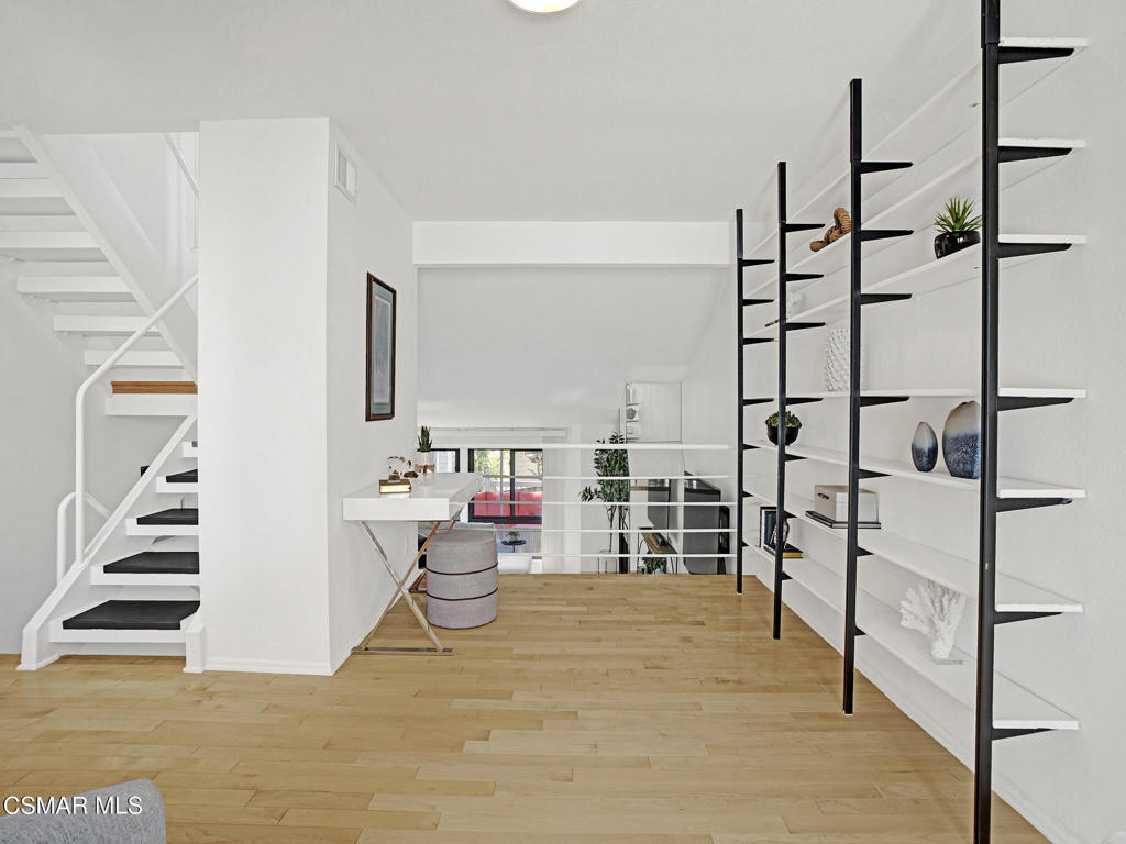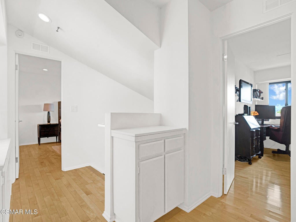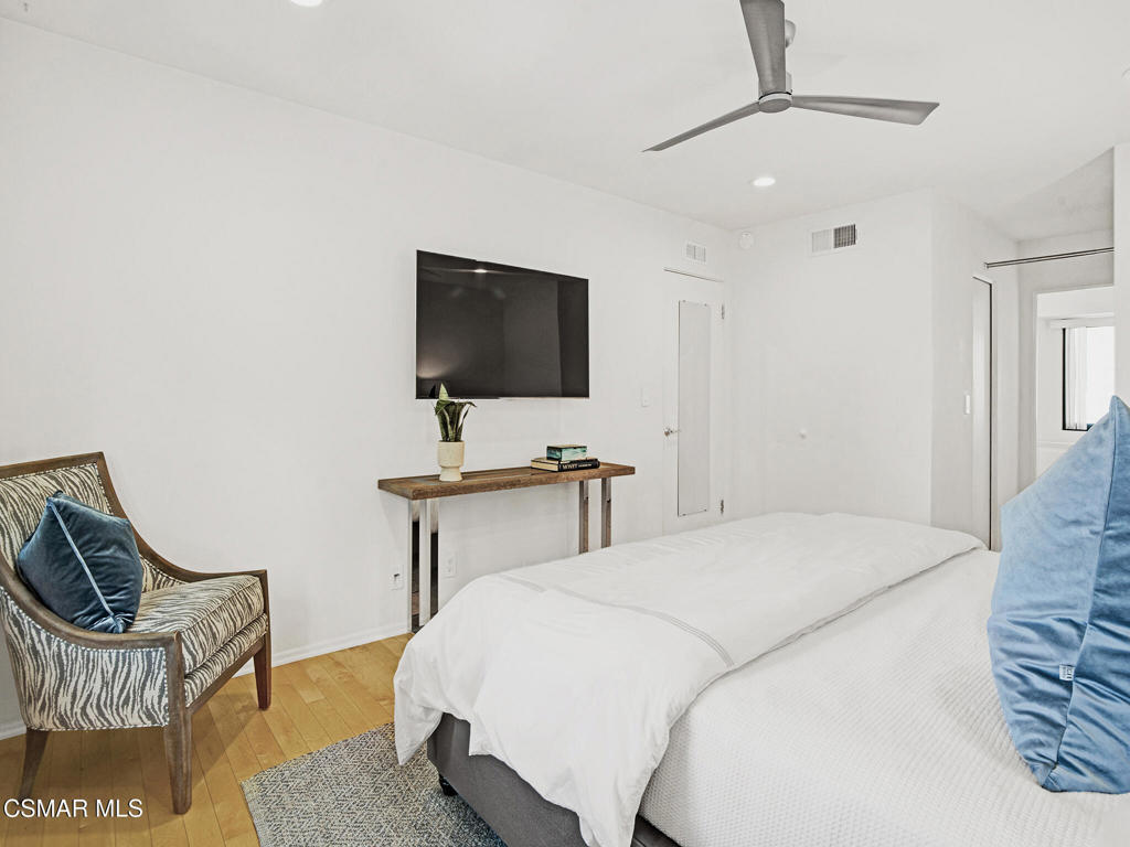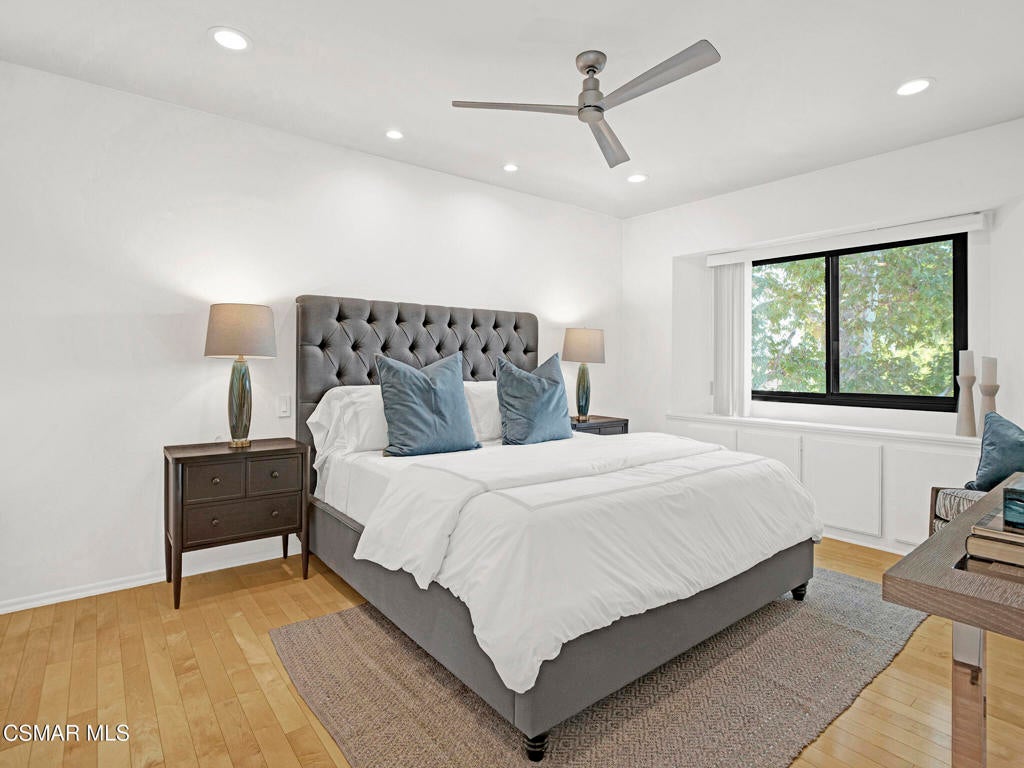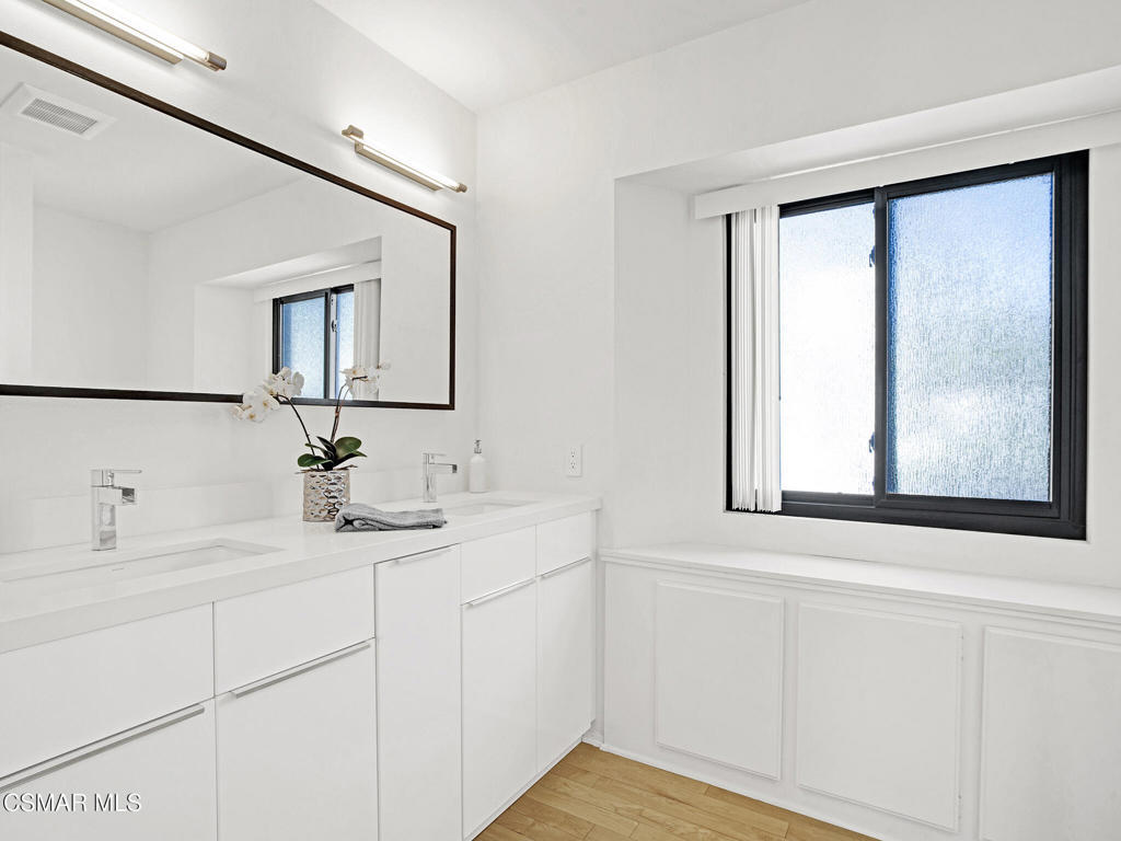 Welcome to this beautifully updated 2-bedroom, 2.5-bath townhome offering a perfect blend of modern design, natural beauty, and comfort. Ideally positioned to capture stunning mountain and lake views from the bedrooms, this home delivers a serene Westlake Village lifestyle. The interior features a modern kitchen with stylish laminate cabinetry and a sleek, contemporary design ,ideal for both daily living and entertaining. The spacious living area is highlighted by maple wood flooring and a striking Nero Marquita marble fireplace, creating an atmosphere of understated elegance.Abundant windows throughout the home fill the space with natural light, enhancing the open and airy feel. Step outside to the patio, perfect for relaxing or entertaining while enjoying the peaceful surroundings. Additional features include two enclosed single-door garage, providing convenient parking and extra storage. Located near walking paths, shops, restaurants, and everything Westlake Village has to offer, this townhome is an ideal blend of tranquility and convenience.