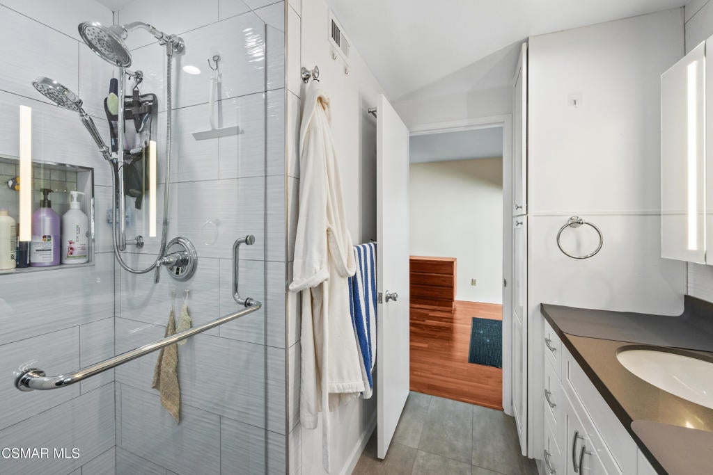 Welcome to this beautifully updated 4 bedroom, 2 bathroom single story home in Westlake Village! The open floor plan features views of the scenic outdoors and soaring ceilings in the family room and primary bedroom. Note the attractive engineered hardwood flooring. The updated kitchen has granite countertops, center island, and roomy pantry. Notice the added wall units in the entry, family room, central bathroom, and primary bedroom that are ideal for storage. Solar panels are found on the recently replaced roof. The sun-filled home includes spacious,newer windows and sliders to the scenic grounds near hiking trails and open space. The oversized patio is ideal for outdoor dining and relaxation. Home's cul de sac location is beside the Foxmoor greenbelt with its scenic walkway to the community pool, clubhouse and an elementary school. Enjoy living here!