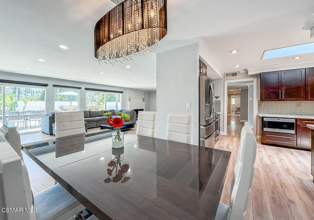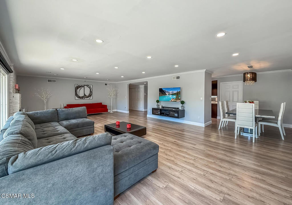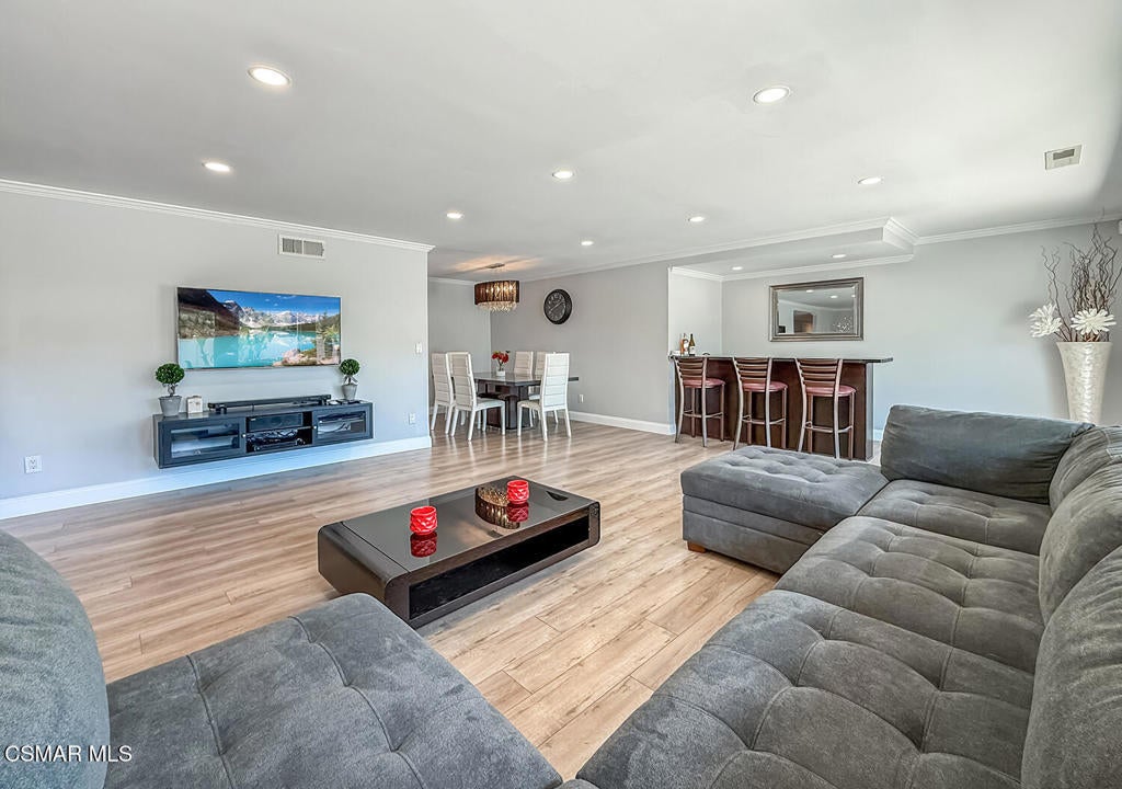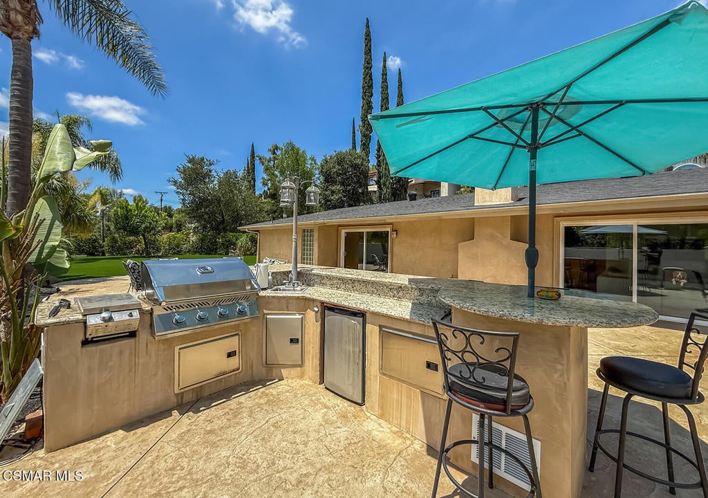 Fully furnished and move-in ready, this beautifully updated single-story home is ideally located in prime Woodland Hills. Offering 3 spacious bedrooms and 2 updated bathrooms, the home features a chef's kitchen, custom fireplace, expansive great room with wet bar, and stylish laminate flooring throughout.Enjoy resort-style outdoor living with a built-in barbecue island, oversized gas fire pit, low-maintenance turf lawn, and breathtaking sunset views--perfect for entertaining or relaxing at home. Additional highlights include a 5-car circular driveway, custom entry doors, alarm system, new HVAC, and a finished garage currently set up as a game/flex space.Situated in the highly sought-after Calabasas/El Camino school district and just minutes to shopping, dining, beaches, and major freeways. Available fully furnished with flexible short-term or one-year lease options.