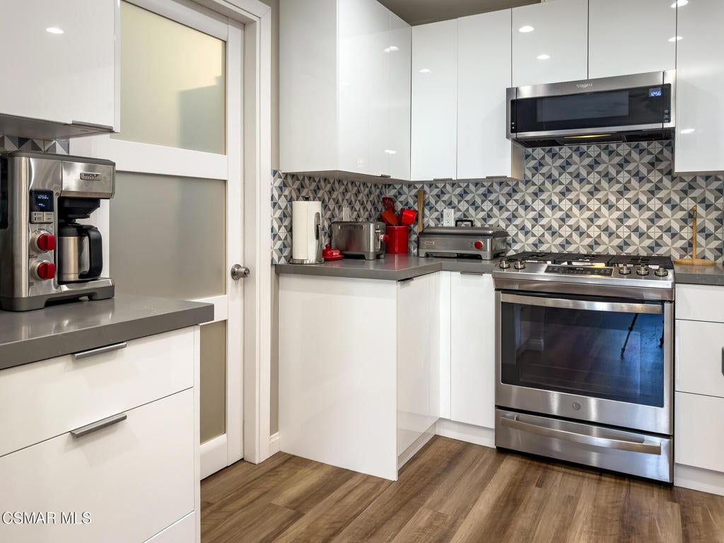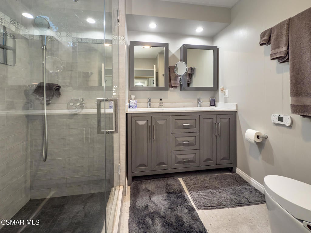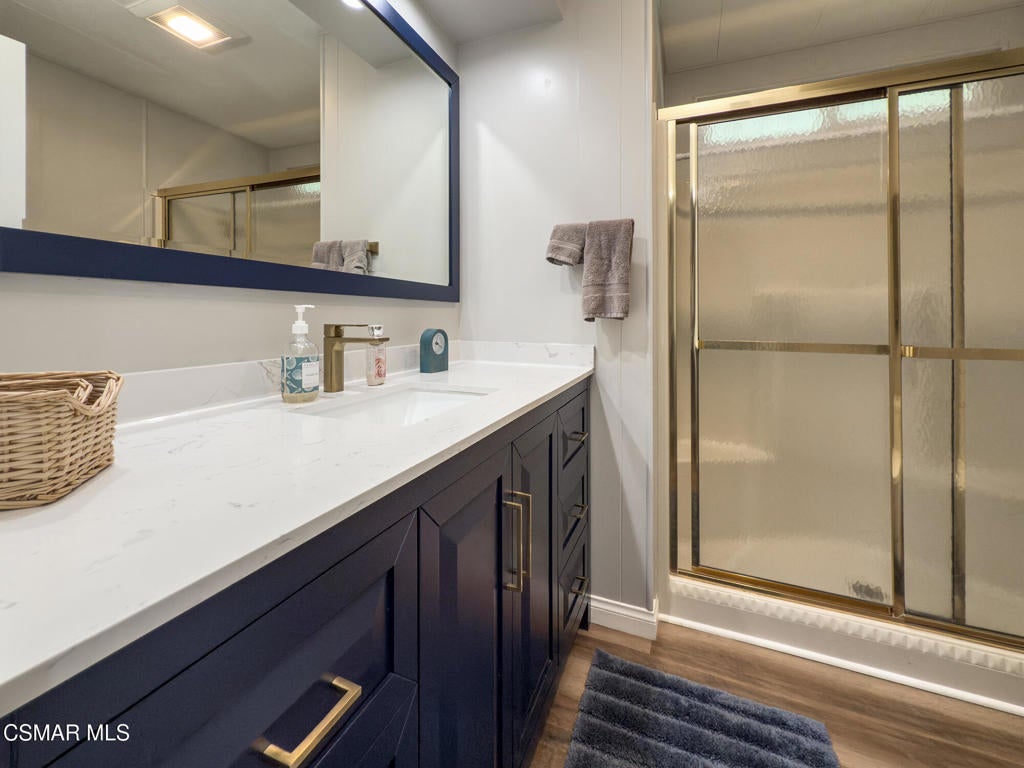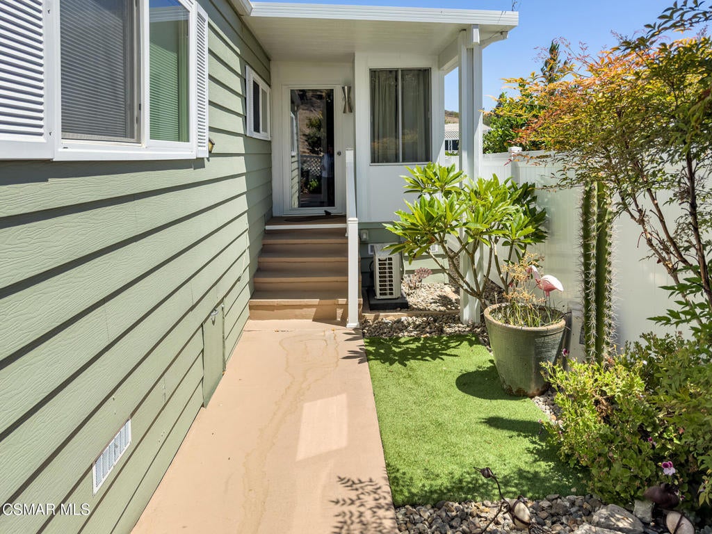 Welcome to this totally remodeled 2-bedroom, 2-bath, 1344 sq. ft. home Located in the coveted Vallecito 55+ Gated Community surrounded by open space and Incredible views. The home features beautiful newer laminate flooring throughout, upgraded baseboards, designer paint colors and dual pane windows. The open concept floorplan flows from the living room with a stylish, modern, energy efficient electric fireplace and large picture windows to the dining area with a built-in lighted hutch and modern hanging light fixture. The sleek modern kitchen has quartz counters, Euro cabinetry, recessed lighting w/dimmers, stainless appliances and center island with sink and overhead pendant lights. The private primary suite has mountain views, a large mirrored wall to wall closet, vanity area with custom lighting, built-in cabinetry and slider out to private back patio. Spacious en-suite bath has an oversized custom walk-in shower w/two shower heads, new heated bidet toilet and a double vanity that offers plenty of storage. The guest bedroom is nicely sized w/ large closet. The remodeled guest bathroom has a walk-in shower, new vanity w/ storage and new toilet. The enclosed sun room off of kitchen currently used as an office adds add'l 100 sq. ft. of usable space and features an energy efficient mini split ideal for heating and cooling. The laundry room is conveniently located off hallway offers a space saving stacked washer & dryer and storage cabinet. Other features include newer HVAC central air and heating system, enlarged driveway, vinyl fencing, a 220 volt EV charging plug in the attached 2-car tandem, covered carport which also features a 6'x12' 2024 shed w/ windows. Enjoy the outdoors on the private front patio or the private back patio, both are ideal for lounging & taking in the breathtaking views of nature. The convenient two-car tandem attached covered carport is . Great location with plenty of guest parking and & beautiful low maintenance landscaping. No Property Taxes! Only $75 per year HCD registration! Enjoy the park's many amenities - including a newly renovated clubhouse, pool (heated year-round), spa, 18-hole putting greens, library, gym, billiard and ping pong tables, meeting area, kitchen, and dog run, all in a walkable, friendly neighborhood - convenient location to shopping, restaurants, parks, hiking trails, and the 101 Freeway.