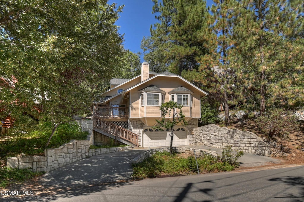 Fabulous Opportunity! Incredible price!! Great Location with plenty of charm, very close to the Lake!!! Enjoy a short walk to the water from the easy access trail just across the street. 2nd owner of 37 years wants it simple. Exterior features include river rock throughout, semi level entry with circular driveway, large 2 car auto rollup garage with direct access, nice Trex front deck, large rear patio with private hillside, dual pane windows and slider, plus total roof tune-up completed with 5+ years of life expectancy and warranty. Interior features include entry with 1/2 bath, kitchen with breakfast room, dining room and family room. Separate living room with nice river rock fireplace. Middle level features 2 bedrooms, full bath, and laundry room. Upper level features a large private primary bedroom with river rock fireplace, secondary closet storage, on-suite bath with separate shower, large tub, dual vanities and walk in closet. Beautiful original wood trim, cabinets and high ceilings throughout. Take a short drive to Lake Arrowhead village and enjoy all the sights and sounds of this wonderful mountain town including full lake rights, ALA membership opportunities, Beach Club access, hiking trails and more! Don't miss your opportunity to own a piece of paradise in a beautiful and safe community!!