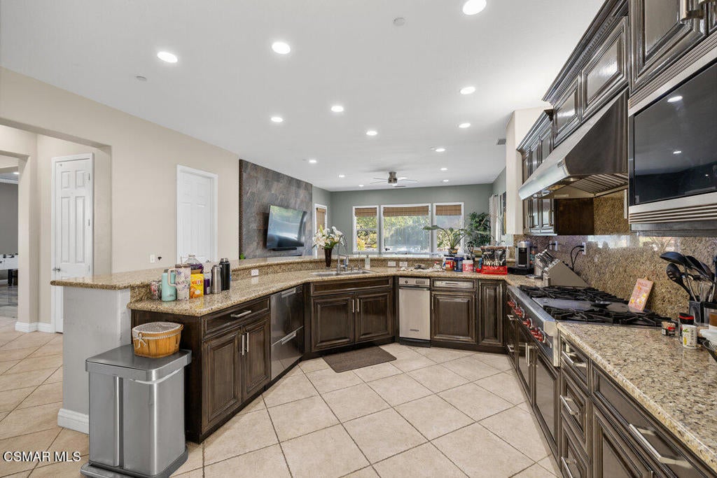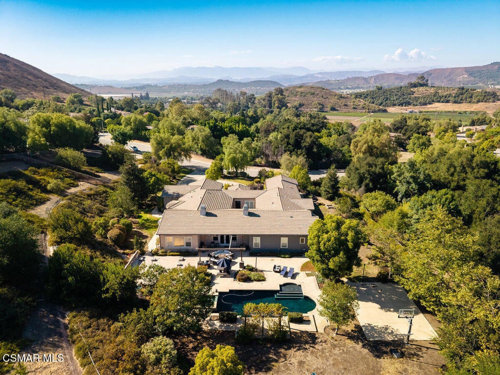 Welcome to this stunning Italian villa estate nestled on over 3 acres with panoramic views. This sophisticated one-story home spans more than 5,000 square feet of elegantly appointed living space. Featuring 4 spacious bedrooms (plus an office that can serve as a fifth), 3.5 baths, a formal living room, dining room, and a chef's kitchen with Sub Zero and Wolf appliances that flows into a large family room with built-ins, it's ideal for entertaining and comfortable living.The home also offers a generous game room, sizable laundry with sink, and a 4-car garage--including maids' quarters and two extra rooms that could serve as media or guest space. The resort-style backyard is equally impressive with exquisite landscaping, artistic water features, a black-bottom saltwater pool with spa and waterfall, sports court with built in adjustable basketball court,This rare single-level villa, defined by Old World charm and a gated atrium, provides a serene, luxurious escape that must be experienced in person.Thank you