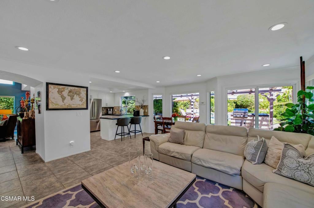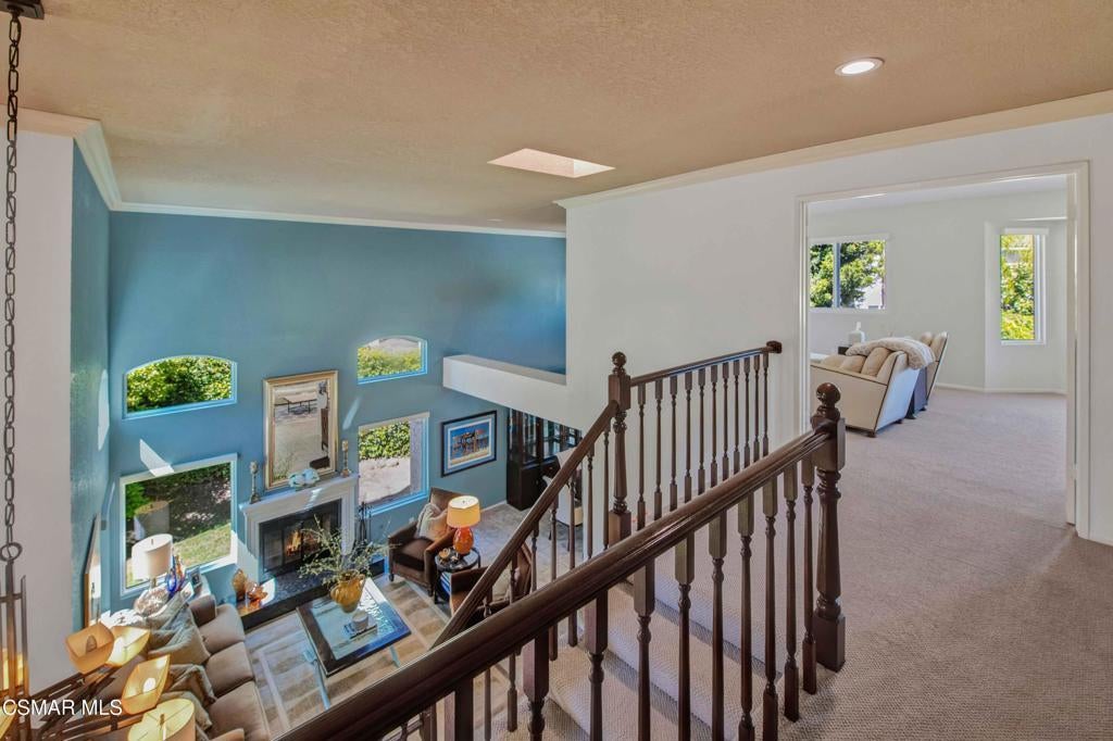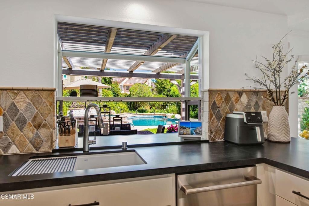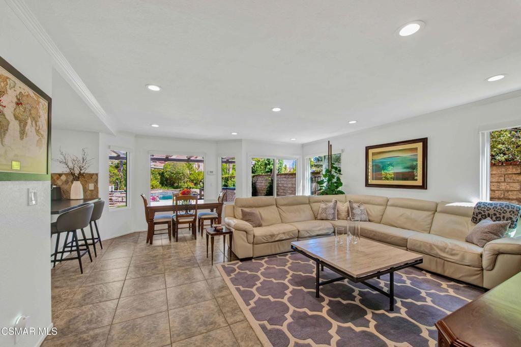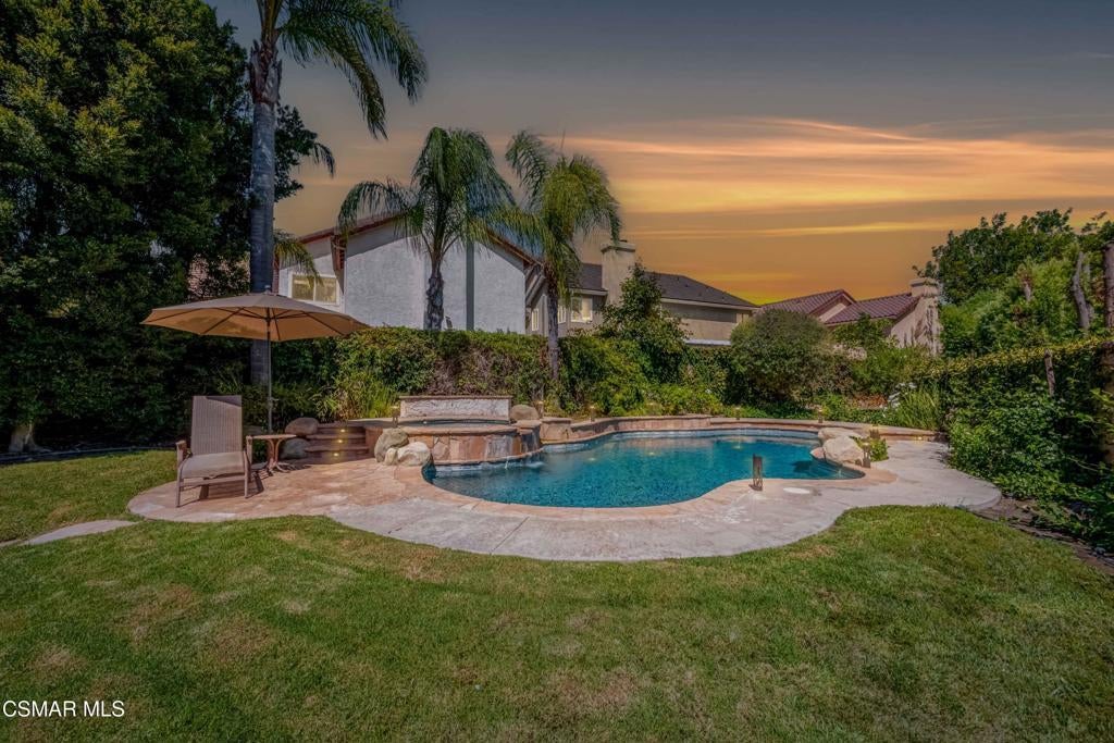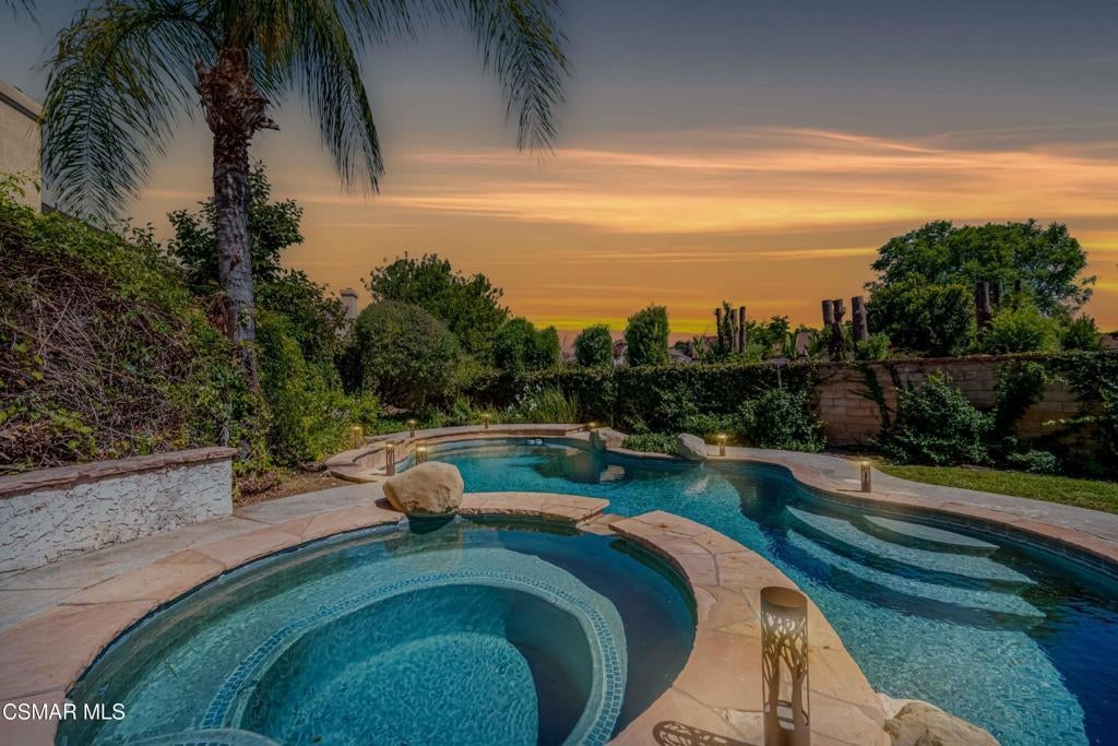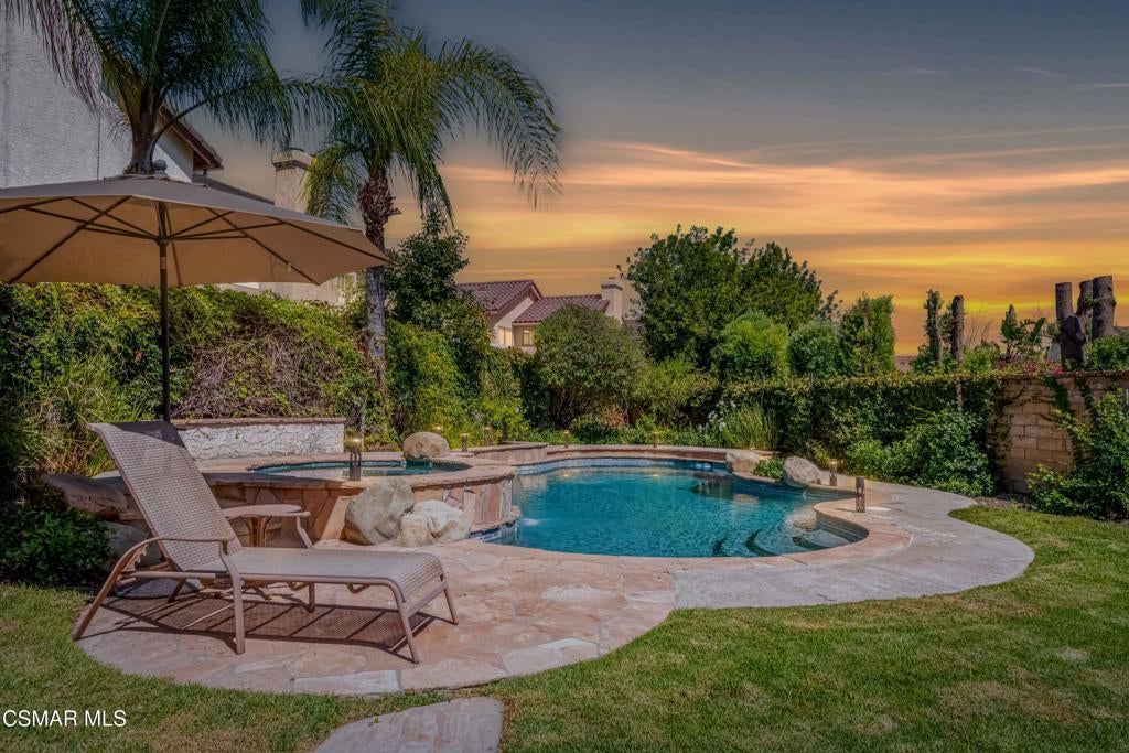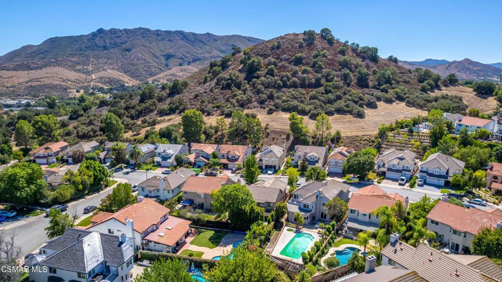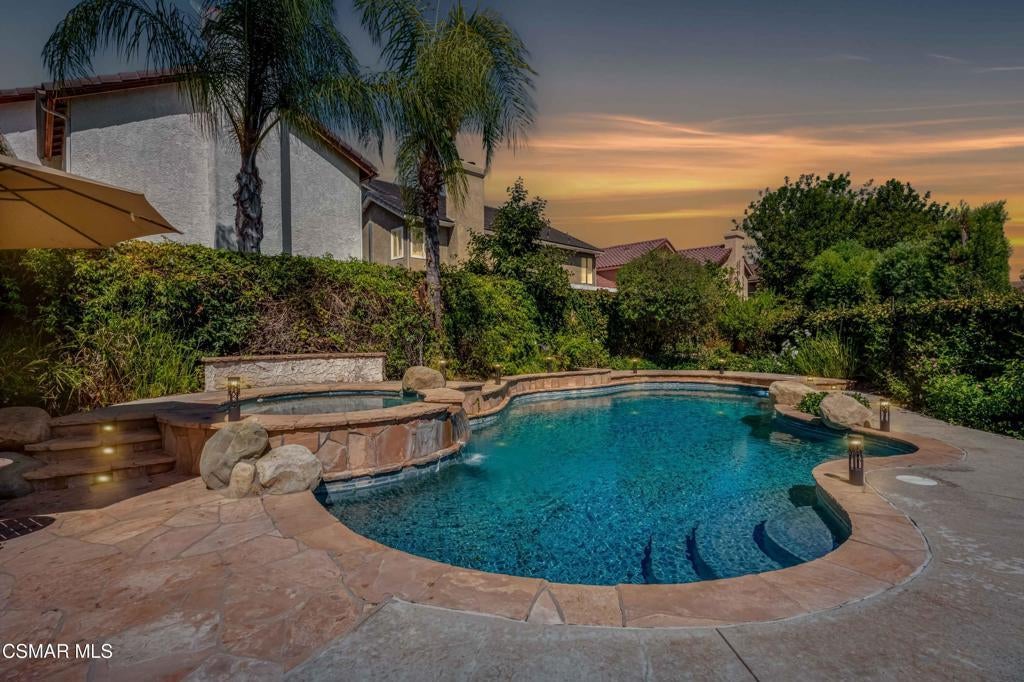 Welcome to 5676 Walnut Ridge Dr in the heart of Agoura Hills - a rare opportunity to own a luxurious and spacious entertainer's home with nearly 2,900 sq. ft. of living space, 5 bedrooms and 4 bathrooms, designed for comfort, style, and resort style living! Fabulous interior location in highly desirable Chateau Springs surrounded by gorgeous mountain views. Striking entryway with soaring cathedral-ceiling foyer that opens to a bright, airy, and spacious open floor plan. The main residence features a stunning remodeled kitchen complete with newer appliances, quartz countertops, cooking range with stone accent, breakfast bar and bay window that overlooks the sparkling pool and spa. Formal dining, family and living room, wine fridge, downstairs bedroom, full bath and laundry. Upstairs, the double-door entry primary suite offers the ultimate in luxury and comfort, with a sitting/entertaining area with custom bookshelves, en-suite bath, spacious closet. and pool and mountain views! Two additional upstairs bedrooms and hall bath provide flexible space for family or office needs. The fifth bedroom is a charming, detached in-law suite casita, complete with its own full bedroom and bath - perfect for guests, extended family, or possible rental income. A rare find indeed! The backyard is a resort-like tropical oasis, with a sparkling pool, spa, lush queen palms, patio and bbq for entertaining, landscaped privacy wall, and vibrant greenery. The charming courtyard and side yard at entry features mature mandarin and lemon trees, brick and stone accents, and a breezeway that creates a cozy, secluded vibe. Picture windows throughout the home invite the outdoors in, framing peek-a-boo mountain views. Newer roof, plenty of parking. Close to beaches, excellent schools, shopping, parks, entertainment and hiking trails. This highly unique property is rarely on the market ! Don't miss this chance to call Walnut Ridge your home!