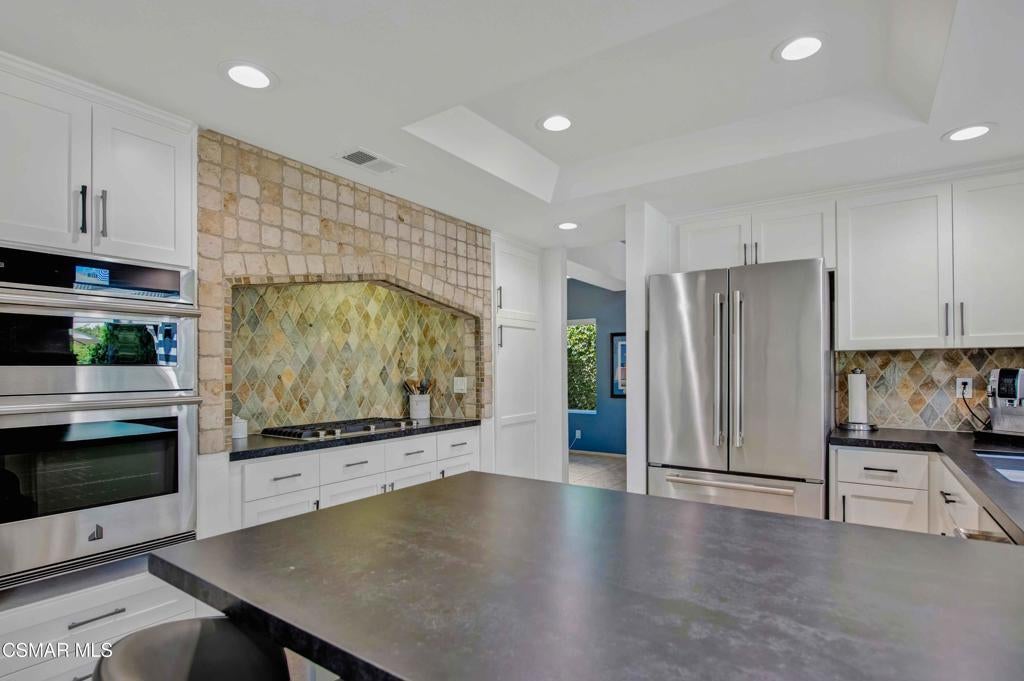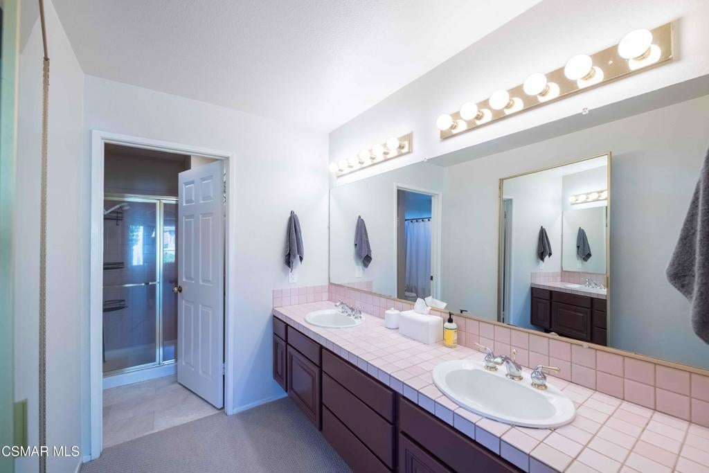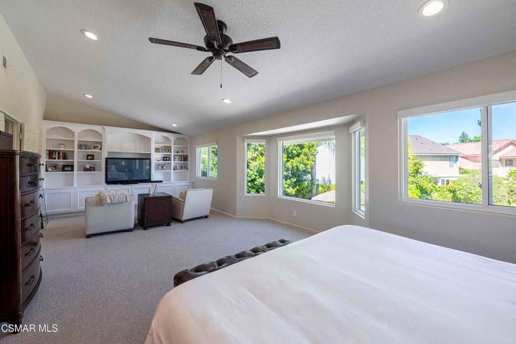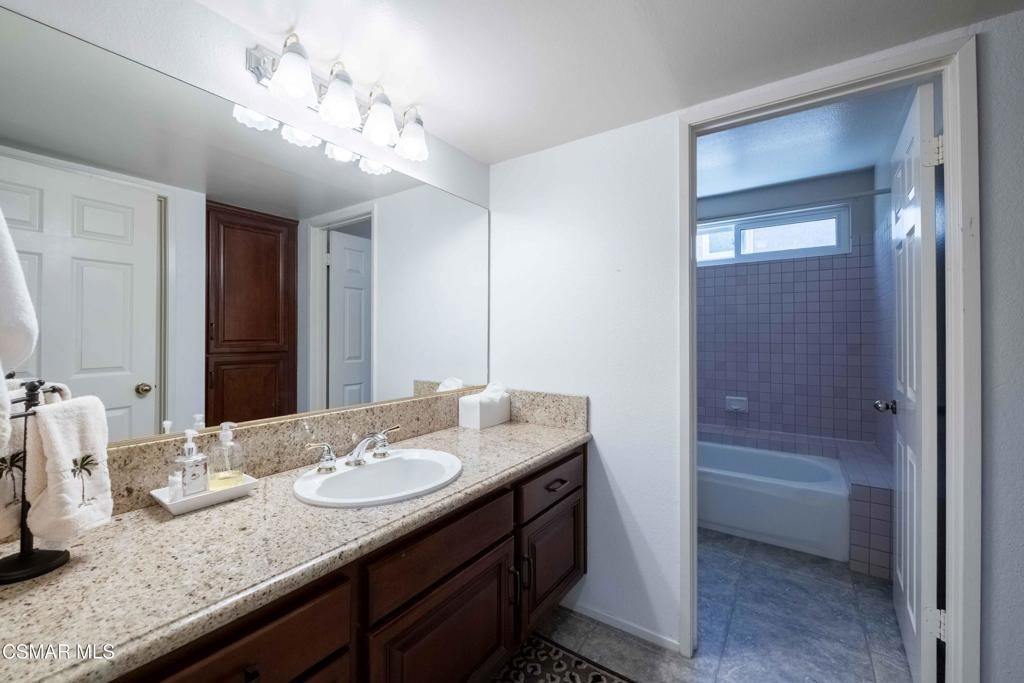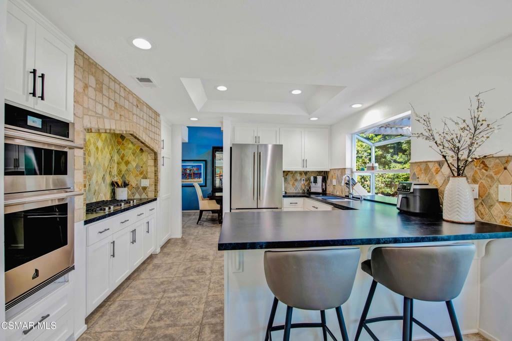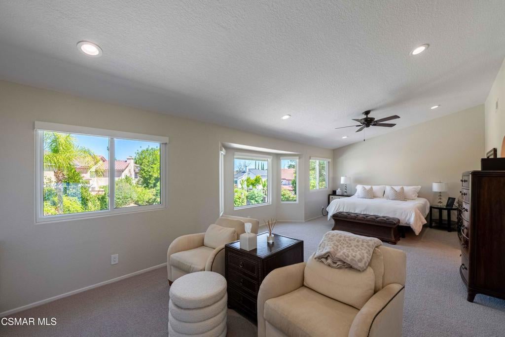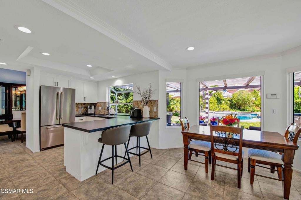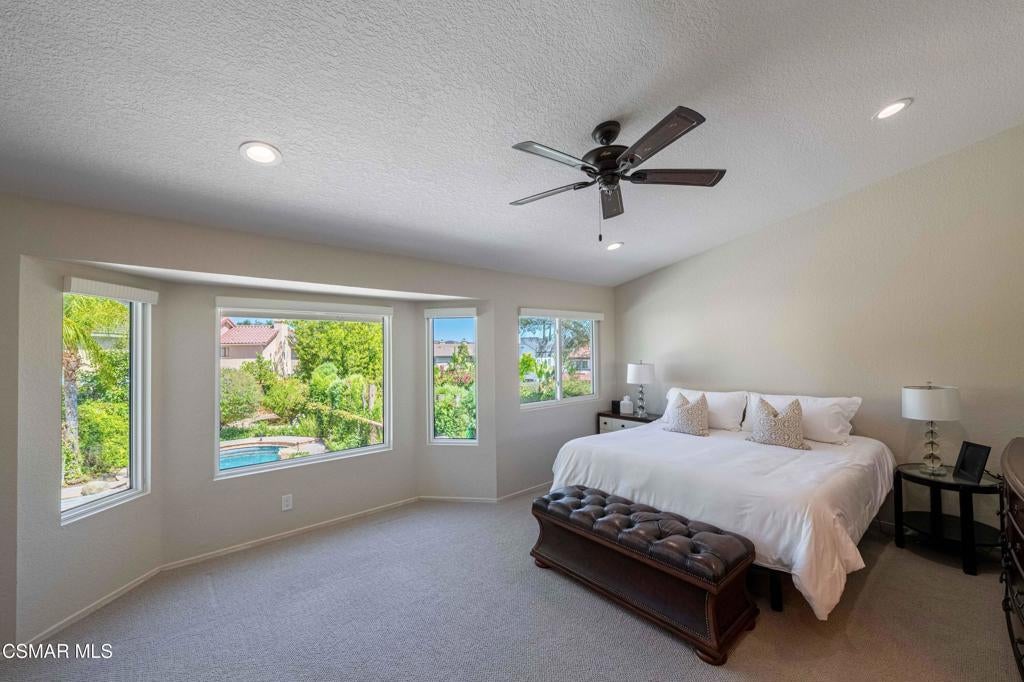 Welcome to 5676 Walnut Ridge Dr in the heart of Agoura Hills - a rare opportunity to own a luxurious and spacious entertainer's home with nearly 2,900 sq. ft. of living space, 5 bedrooms and 4 bathrooms, designed for comfort, style, and resort style living! Fabulous interior location in highly desirable Chateau Springs surrounded by gorgeous mountain views. Striking entryway with soaring cathedral-ceiling foyer that opens to a bright, airy, and spacious open floor plan. The main residence features a stunning remodeled kitchen complete with newer appliances, quartz countertops, cooking range with stone accent, breakfast bar and bay window that overlooks the sparkling pool and spa. Formal dining, family and living room, wine fridge, downstairs bedroom, full bath and laundry. Upstairs, the double-door entry primary suite offers the ultimate in luxury and comfort, with a sitting/entertaining area with custom bookshelves, en-suite bath, spacious closet. and pool and mountain views! Two additional upstairs bedrooms and hall bath provide flexible space for family or office needs. The fifth bedroom is a charming, detached in-law suite casita, complete with its own full bedroom and bath - perfect for guests, extended family, or possible rental income. A rare find indeed! The backyard is a resort-like tropical oasis, with a sparkling pool, spa, lush queen palms, patio and bbq for entertaining, landscaped privacy wall, and vibrant greenery. The charming courtyard and side yard at entry features mature mandarin and lemon trees, brick and stone accents, and a breezeway that creates a cozy, secluded vibe. Picture windows throughout the home invite the outdoors in, framing peek-a-boo mountain views. Newer roof, plenty of parking. Close to beaches, excellent schools, shopping, parks, entertainment and hiking trails. This highly unique property is rarely on the market ! Don't miss this chance to call Walnut Ridge your home!