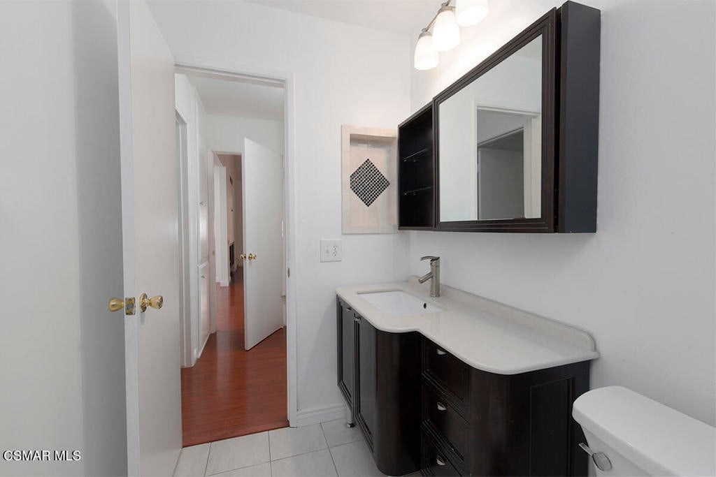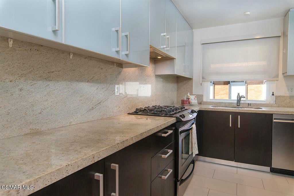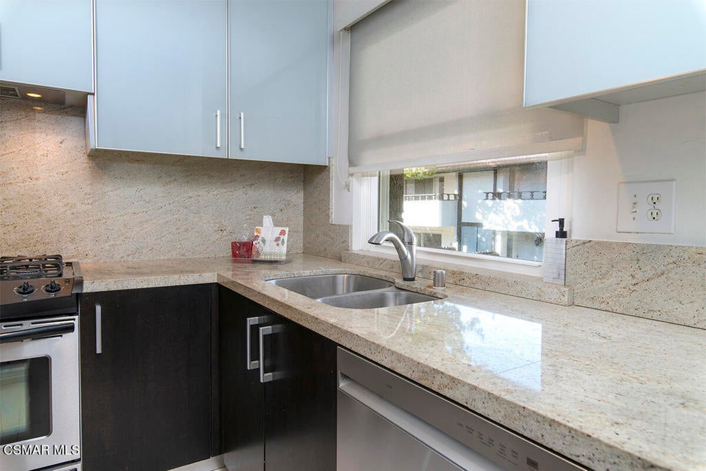 A top level tastefully newly remodeled contemporary condo in the heart of desirable Westlake Village! Open spacious floor plan offers: a welcoming elegant living room with high smooth vaulted ceiling, recessed lighting and sparkling crystal chandelier; easy maintenance rich wood-like laminate flooring throughout; double pane windows and huge sliding doors leading to a big balcony. Large dining area is conveniently located just off the remodeled kitchen featuring modern custom Italian cabinets, beautiful granite counters and backsplash; stainless steel appliances. Spacious master suite offers: well organized walk-in closet; remodeled bathroom with stately vanity and step-in shower accented with neutral tile walls with niches and matching tile floors; secondary bathroom has a deep jetted tub, beautifully detailed tile work and modern vanity. Secondary bedroom is also generously sized. Close to everything: freeways, award winning schools; Westlake lake; restaurants, golf course; shopping, short scenic drive through the canyons to Malibu beaches...