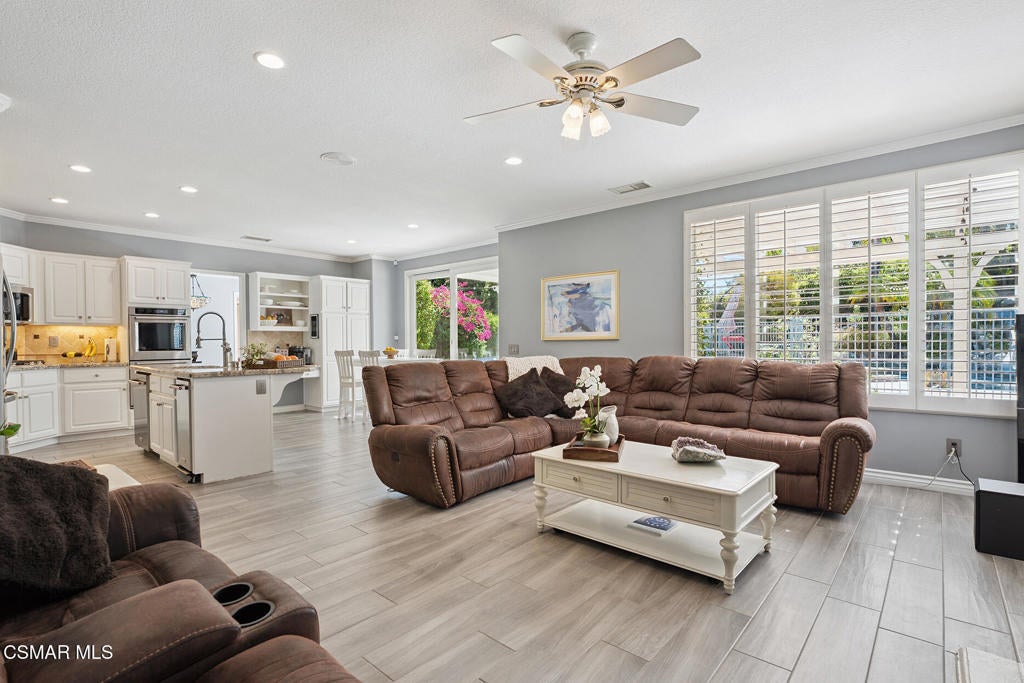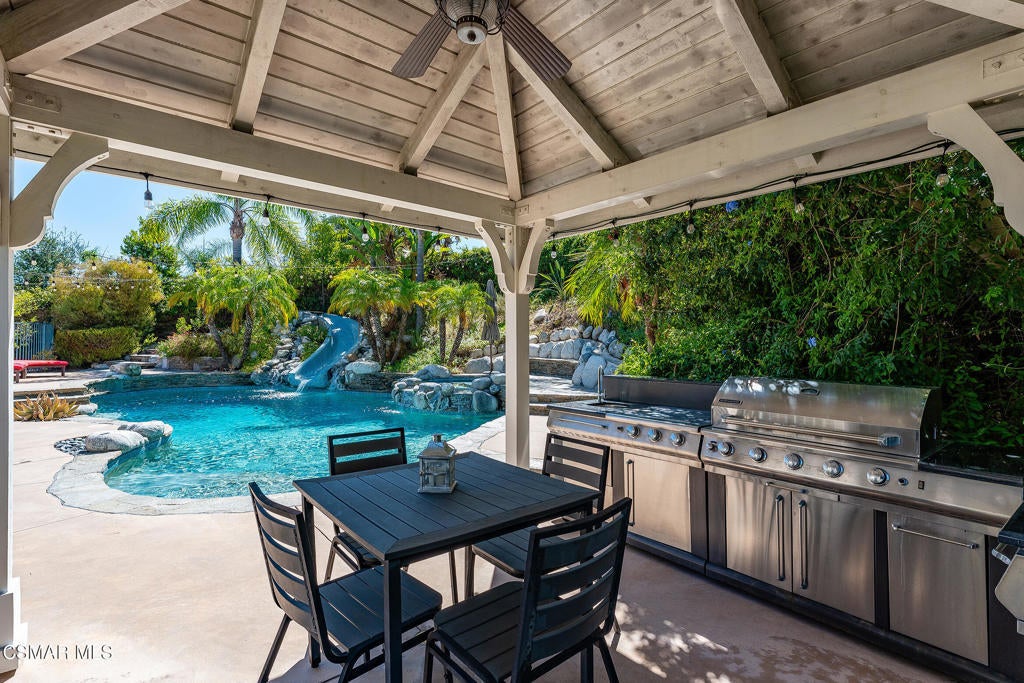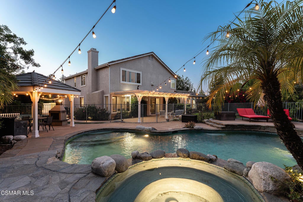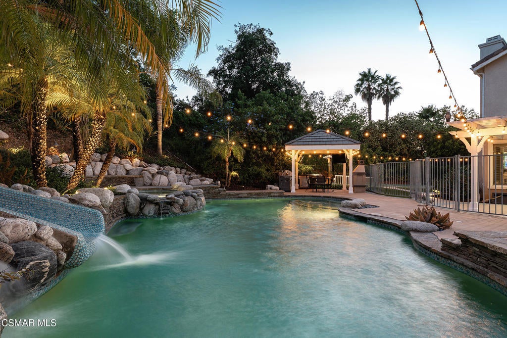 Price improvement and back on the market! A fantastic opportunity for new buyers after the first escrow fell through due to buyer nonperformance. Tucked away at the end of a serene cul-de-sac in Wood Ranch's coveted Valley View Estates, welcome to 206 Shady Hills Court, a nearly 4,000 square foot residence that embodies both luxury and livability. Set on a flat ⅓-acre lot, this rare model property blends thoughtful design with resort style amenities, offering a true indoor outdoor lifestyle.Inside, the home features 5 spacious bedrooms and 4 bathrooms, with a layout designed for comfort and flexibility. The main floor includes a beautifully remodeled kitchen with modern finishes, a generous bedroom suite with an attached full bathroom, and a sprawling 800+ sq. ft. game/guest suite complete with its own kitchenette, full bath, steam shower, and private access to the backyard. Upstairs, the primary retreat and three additional bedrooms provide a perfect balance of space and privacy. A three zone HVAC system ensures climate control efficiency throughout the home, while the three car garage with two Tesla chargers adds practical convenience. The home is also equipped with solar system for both the home and the pool. The backyard features a resort style pool with slide and solar heating, a large BBQ area with a full size outdoor fire place, and a full size electric sauna. Active living comes alive with a private sport court, ideal for basketball or tennis, and the large grassy area framed by multiple mature fruit trees offers both shade and charm. The property is maintained with ease thanks to a Wi-Fi enabled smart sprinkler system, ensuring lush grounds year round.Beyond the home itself, Valley View Estates enriches the experience with access to a private lake that allows fishing, beautifully maintained greenbelts, and common areas. This prime Simi Valley location is also close to Wood Ranch Golf Club, award-winning schools, Rancho Madera Community Park, hiking trails, shopping, and dining.206 Shady Hills Court isn't just a home - it's a lifestyle and a place where every detail has been carefully crafted for comfort, connection, and endless enjoyment.https://www.206shadyhillscourt.com