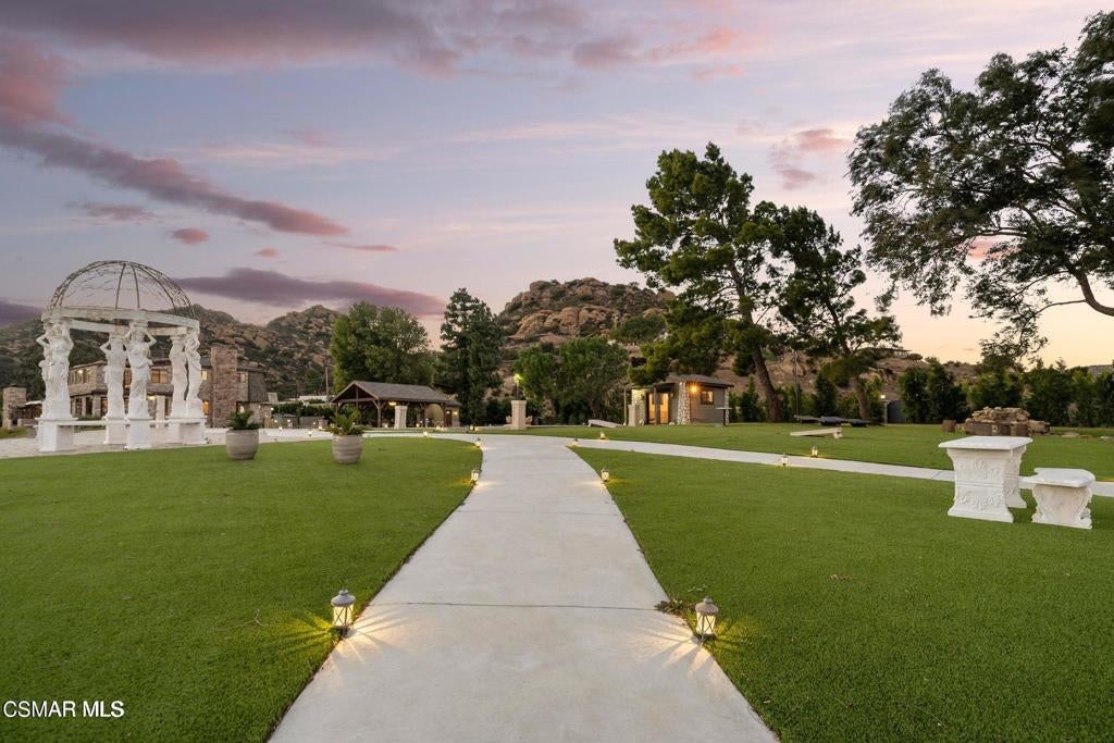 Imagine a place where every step feels like a discovery-- a 42 acre estate that unfolds as a storybook of secluded hidden trails, cascading creeks, sandstone caves, and ancient oak groves. Welcome to your private Chatsworth dreamland, a 4,067 square foot mountaintop chateau designed not just to be seen, but to be experienced. A welcoming entryway reveals a wealth of impressive format and casual spaces, including family and dining areas, as well as entertaining rooms with awe-inspiring vistas that set the stage for incredible living. The gourmet kitchen is perfect for the culinary enthusiast, featuring an oversized waterfall island and top-of-the line amenities, including premium appliances and rich cabinetry with rope trim. Here, gatherings transform into celebrations, retreats become rejuvenation, and events find their ideal canvas. The grounds are alive with possibility: a zen koi pond for reflection, an open-air amphitheater for performance, equestrian paths for adventure, and tucked-away picnic woodlands for intimacy. The chateau itself rises with light and elegance, offering four bedrooms, four baths, and a primary suite with its own indoor spa, sauna, and fireplaces. Floor-to-ceiling glass frames landscapes that sweep across Los Angeles like a living mural. And beyond its wonderful allure lies a developer's dream. Adjoining this truly magical place, APN# 2724006004 offers a total of 42 acres, presenting a once-in-a lifetime opportunity to acquire one of the most expansive statement properties in the region. The acreage offers exceptional potential to be subdivided into multiple estate lots, each commanding its own breathtaking vantage point over the valley and sparkling lights below. In an enviable location within easy reach of Sherman oaks and Studio City, this income-producing property, offering short-term rental options, is alluring as both a production-friendly facility and a unique event venue. This is more than a home- it's a paradise of peace and inspiration. A rare manor where magic lingers, and where visionaries - whether dreamers, creators, or developers can shape the extraordinary.